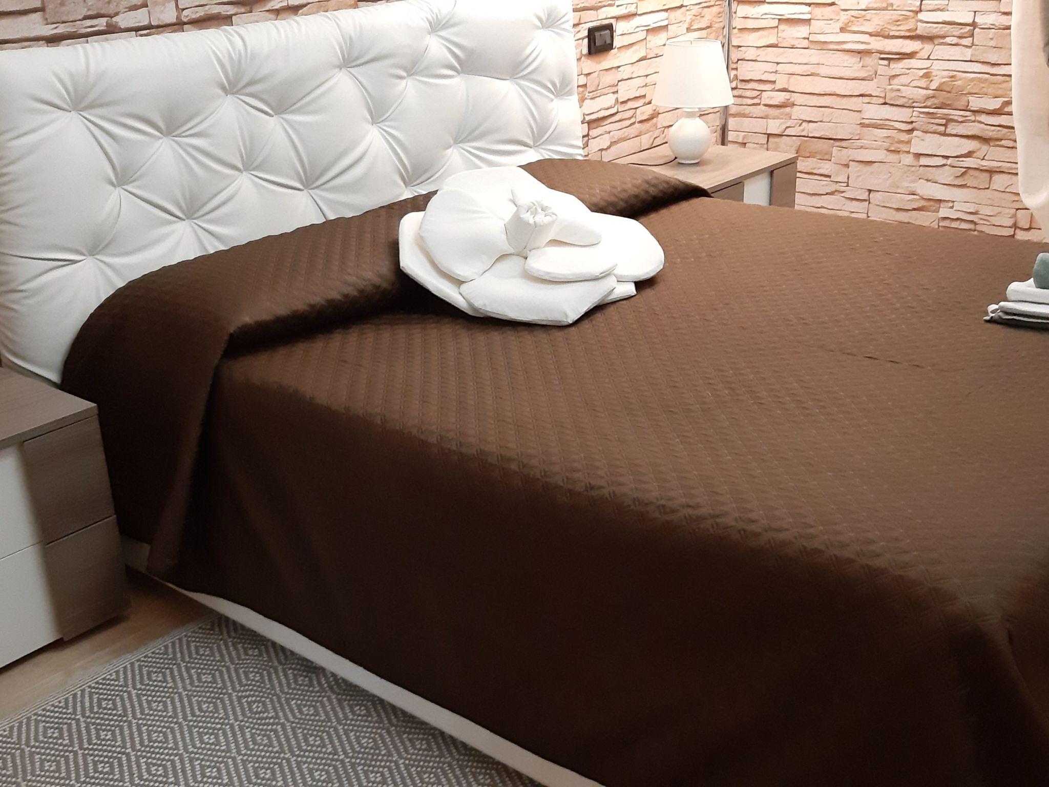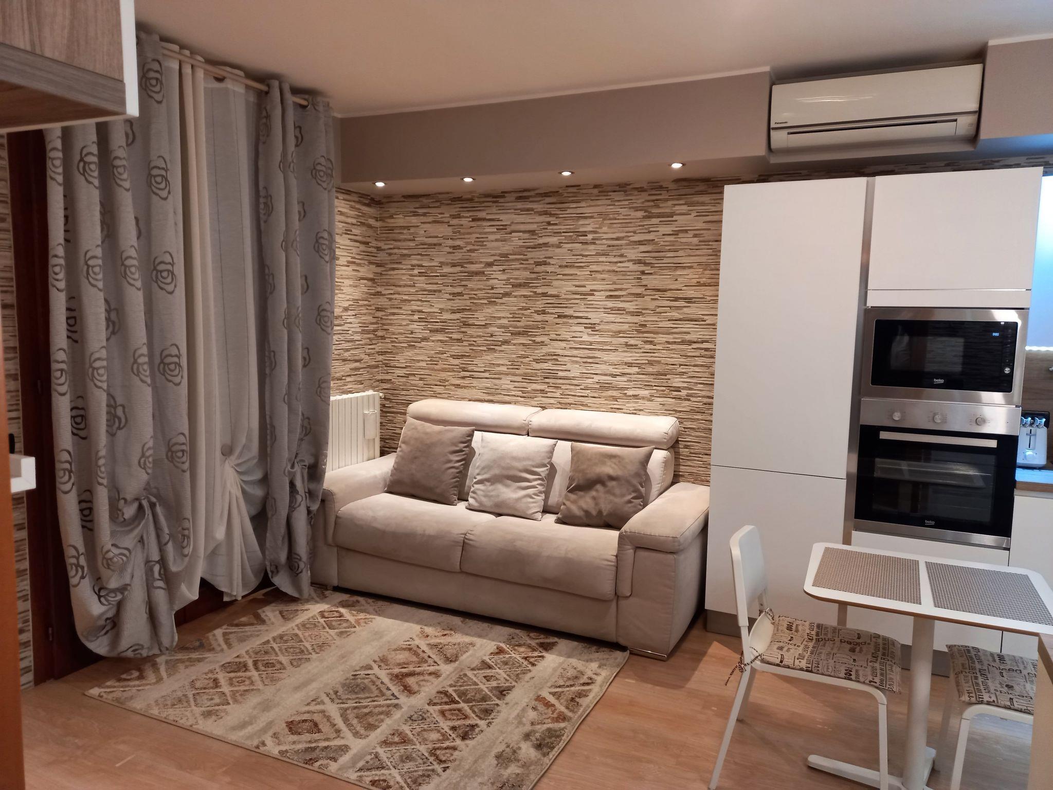 Inside, the flat features a spacious kitchen/living room with an extremely comfortable sofa bed, ideal for accommodating additional guests. The kitchen is fully equipped to cater for all your culinary needs: modern built-in appliances, including a double-door refrigerator, multifunctional oven, microwave, dishwasher, washing machine, 5-burner hob and extractor hood, as well as a coffee machine, toaster, pots, pans, crockery and everything you need to prepare and enjoy your meals. The master bedroom promises peaceful rest thanks to the comfortable bed with latex mattress, accompanied by a spacious wardrobe, chest of drawers, bedside tables and a shoe rack. The windowed bathroom guarantees functionality and comfort with a shower, toilet, bidet and ample furniture. In addition, the flat is equipped with all modern conveniences: Full HD LED TV, DVD player, air conditioning, independent heating, as well as an iron, drying rack, hairdryer, fresh bed linen, towels and personal hygiene and cleaning products.