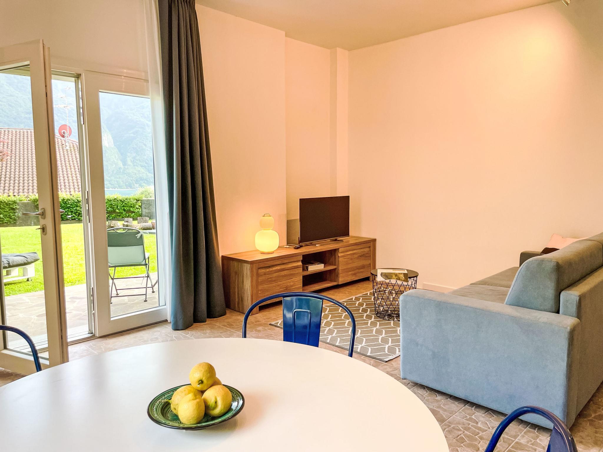 "DaNina", 2-room apartment 50 m2, on the ground floor. Comfortable furnishings: open living/sleeping room with 1 double sofabed, dining table and TV. Exit to the garden. 1 double bedroom. Open kitchen (oven, dishwasher, 4 induction hot plates, toaster, electric coffee machine). Shower/bidet/WC. Air-conditioning, underfloor heating. Heating available only from 15.10. to 15.04. Large patio. Terrace furniture, deck chairs (2). Partial view of the lake, the mountains and the resort. Facilities: washing machine, children's high chair, baby cot for up to 2 year olds, hair dryer. Internet (WiFi, free). Parking (1 car). Please note: non-smokers only. Private entrance, smoke alarm, fire extinguisher. IT097001C2ZZMOTUP5