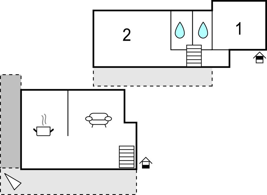 Soveværelse (nr. 1) - 1 Soveplads. (Enkeltseng(e)). 2 Sovepladser. (Dobbeltseng(e)).