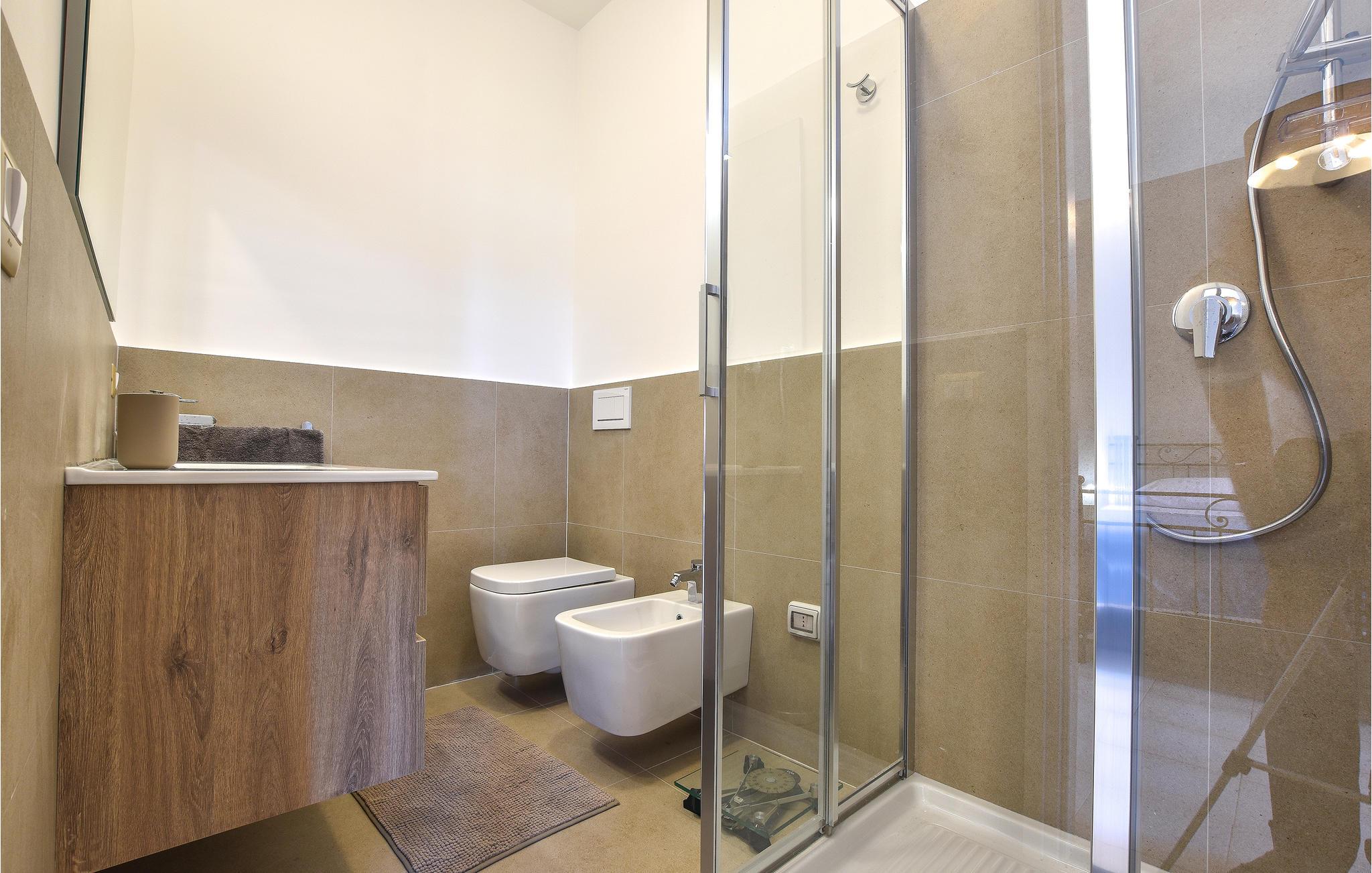 Badeværelse (nr. 1) - WC. Varmt og koldt vand. Bruser