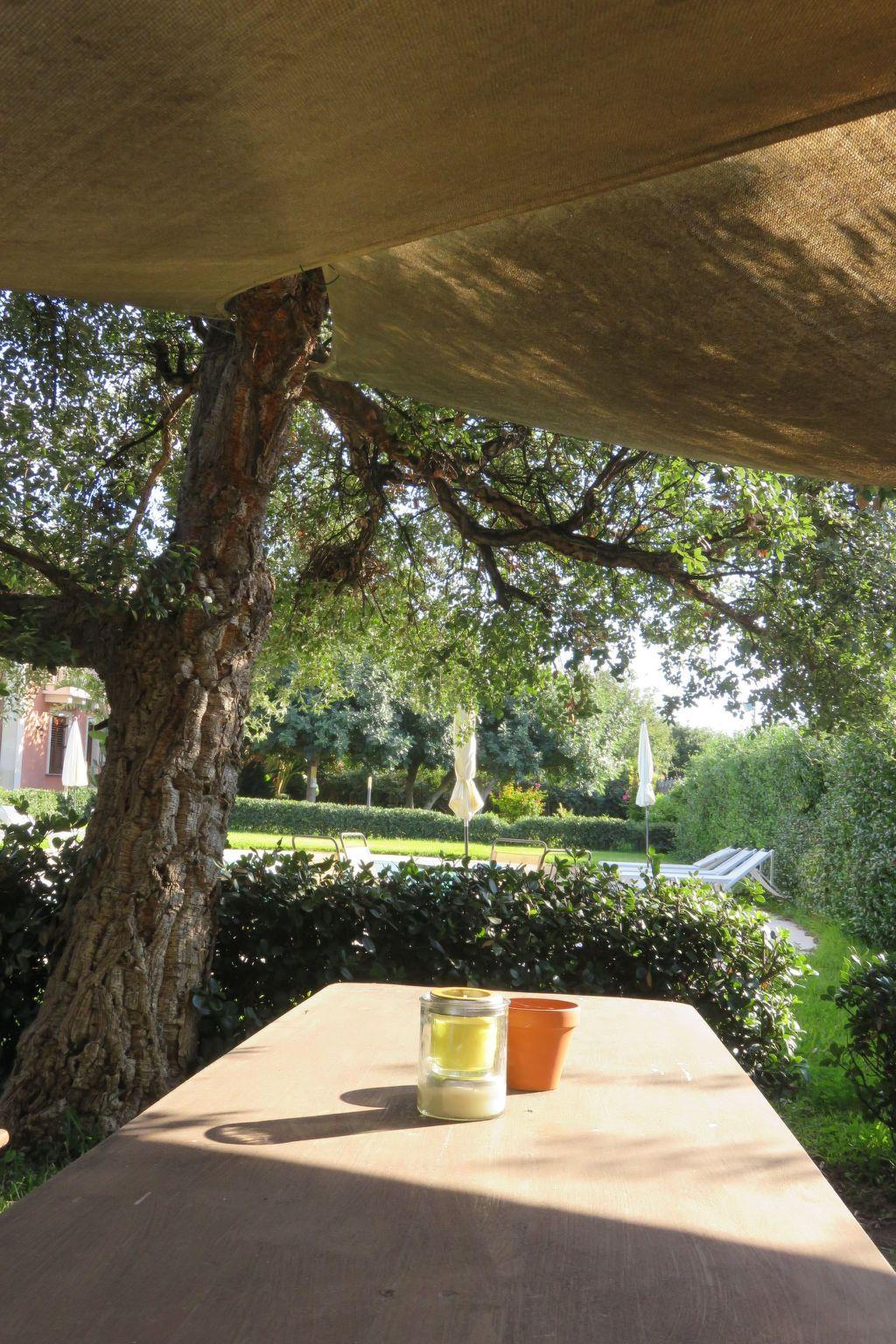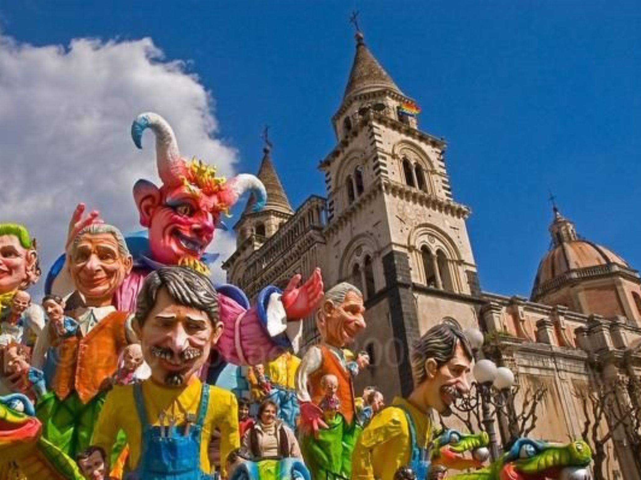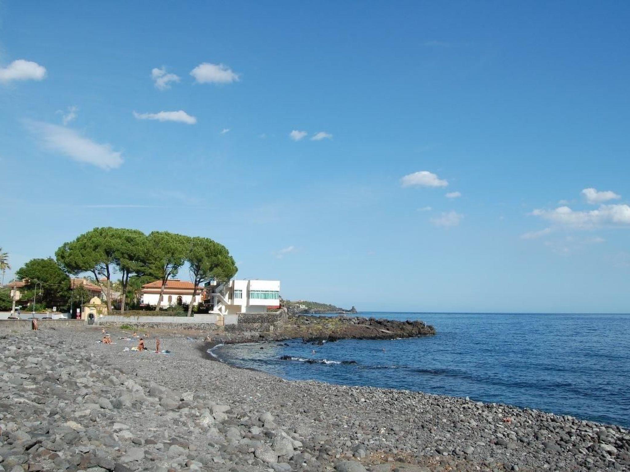 The terrace is furnished with a table and chairs. The apartment is on the second floor a and offers guests a view of Etna and the sea.