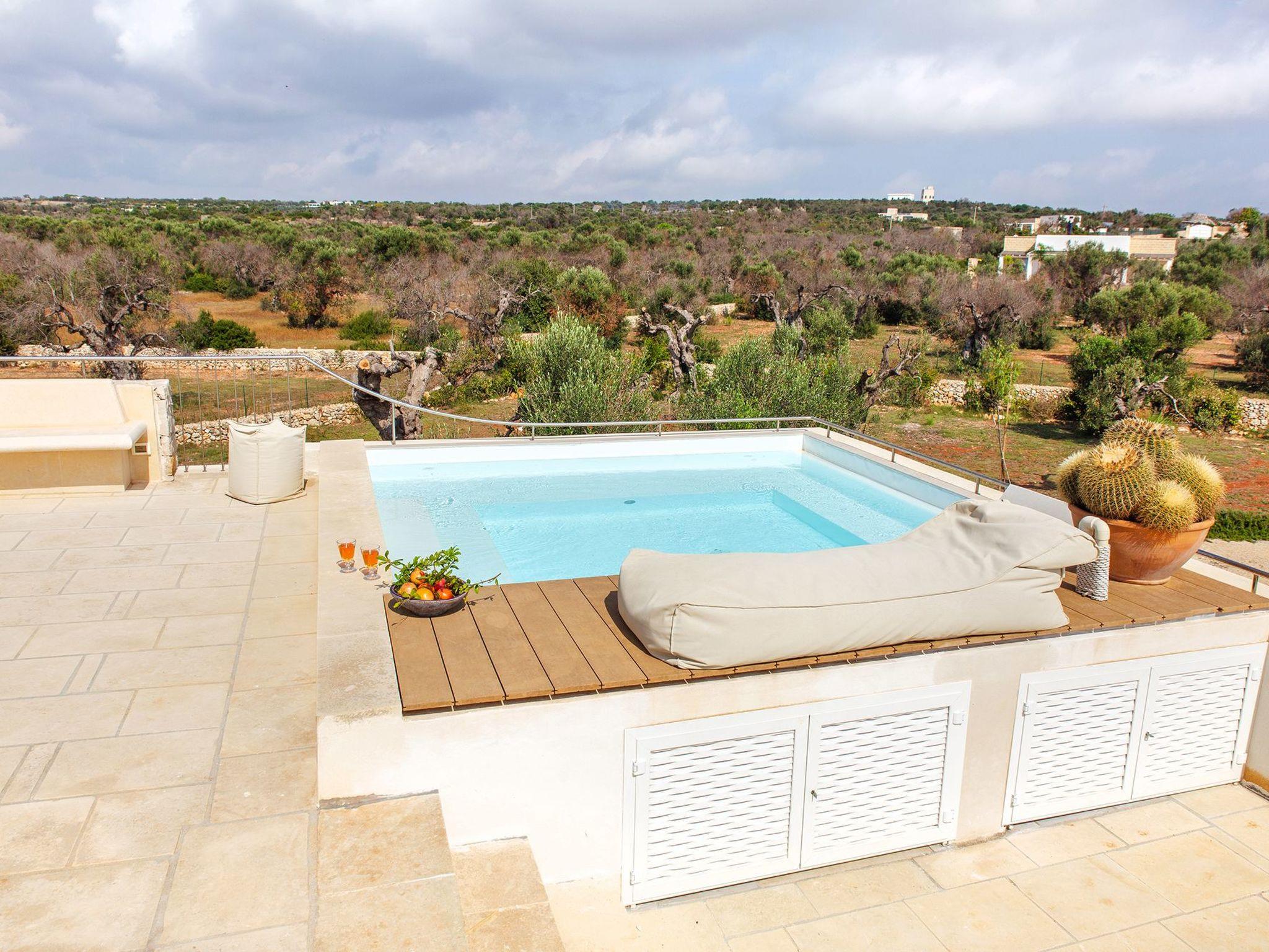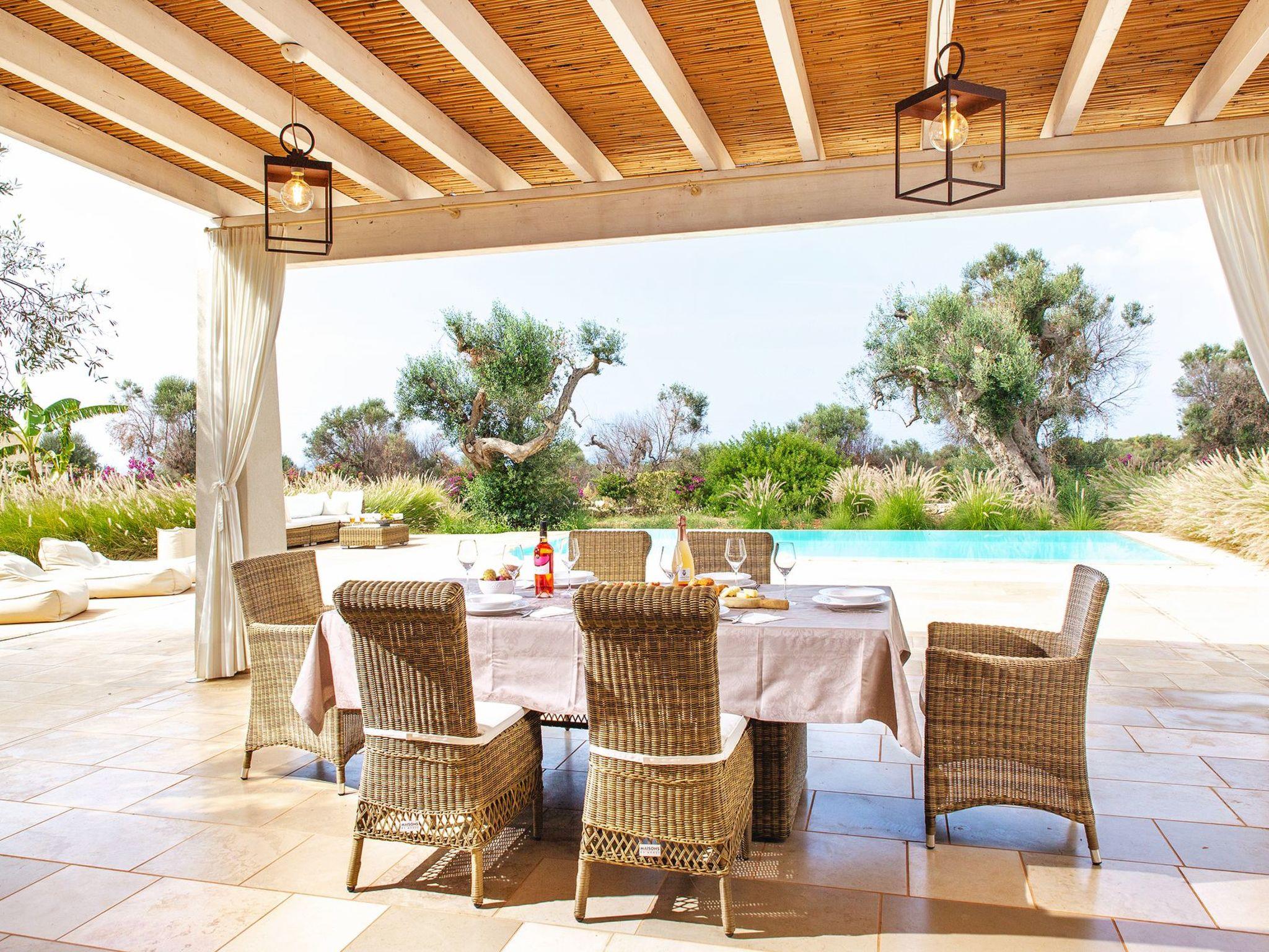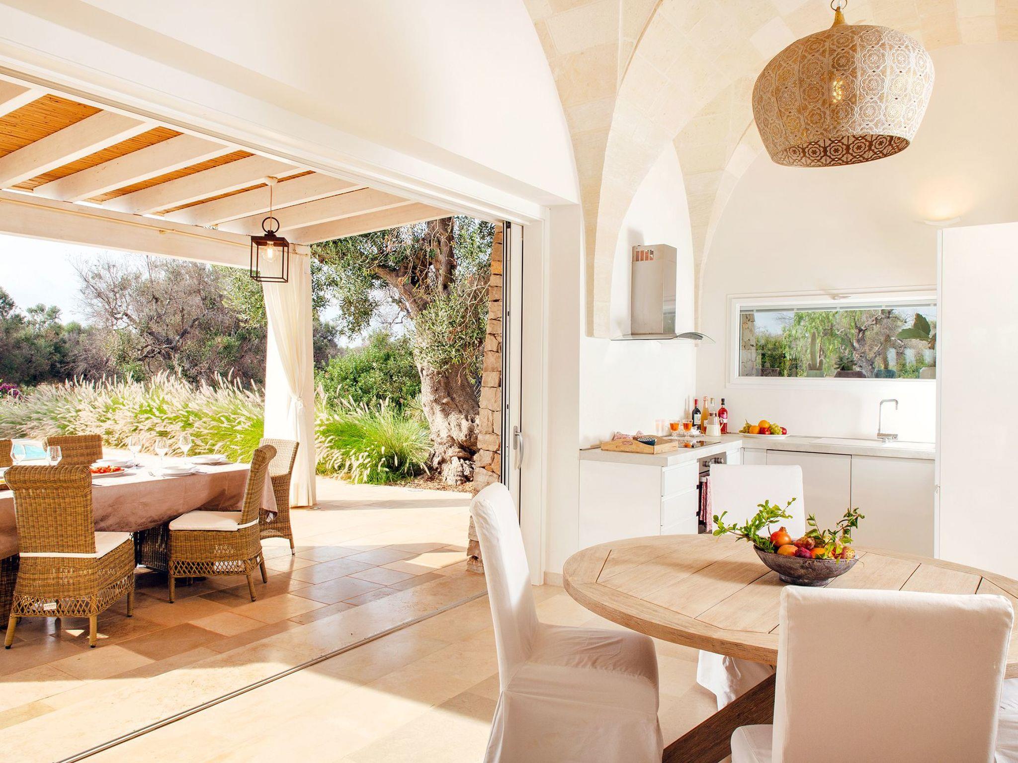 Immersed in land dotted with centuries-old olive trees, Villa Ligola offers a broad view of the surrounding areas and of the sea, thanks also to its habitable terrace on the flat roof of the house.