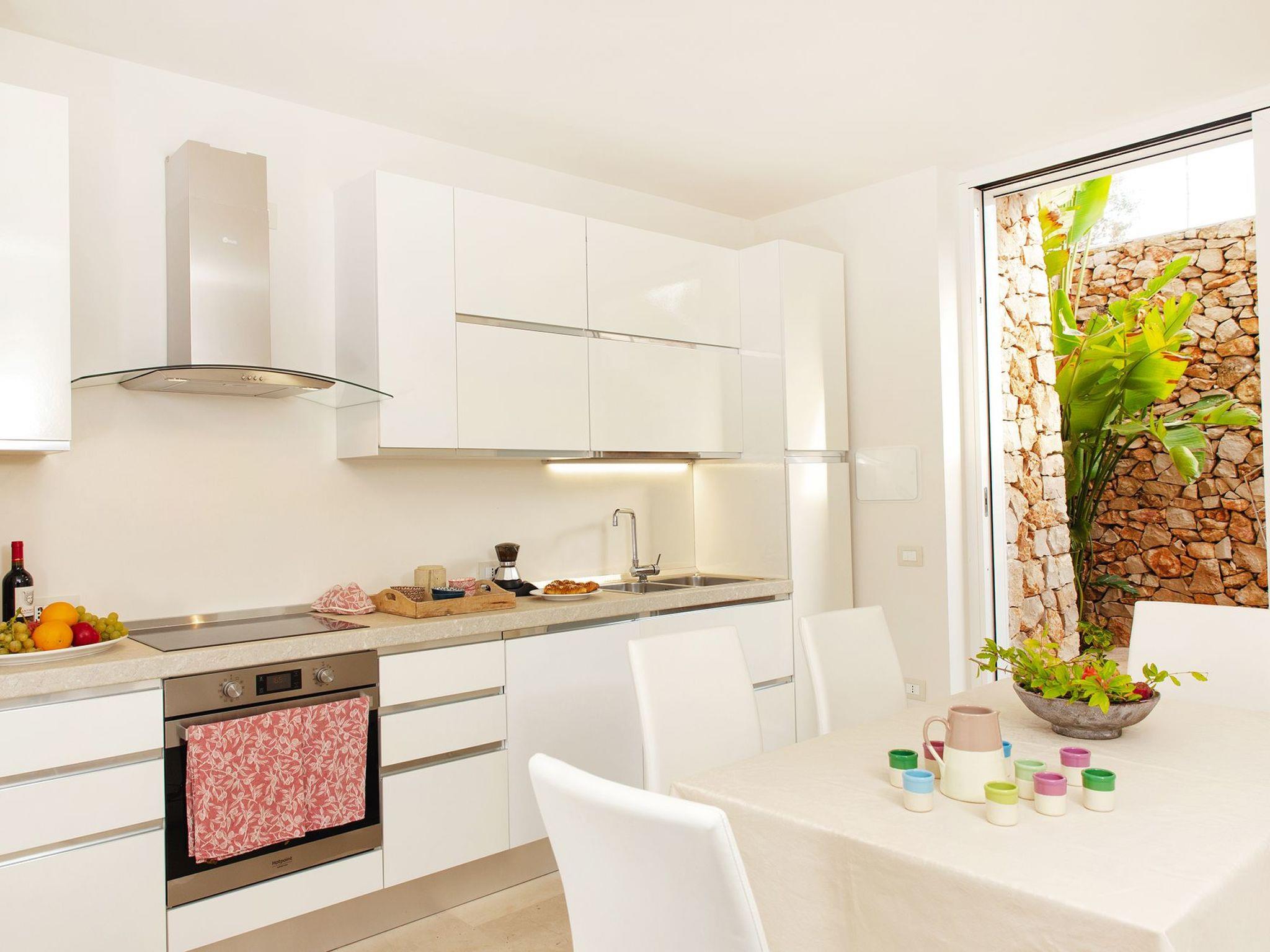 This property, recently built and with a romantic sea view, is only 1 km from the coastal stretch west of Santa Maria di Leuca, mainly characterized by numerous and fascinating karst caves, which can be visited by land or by boat.