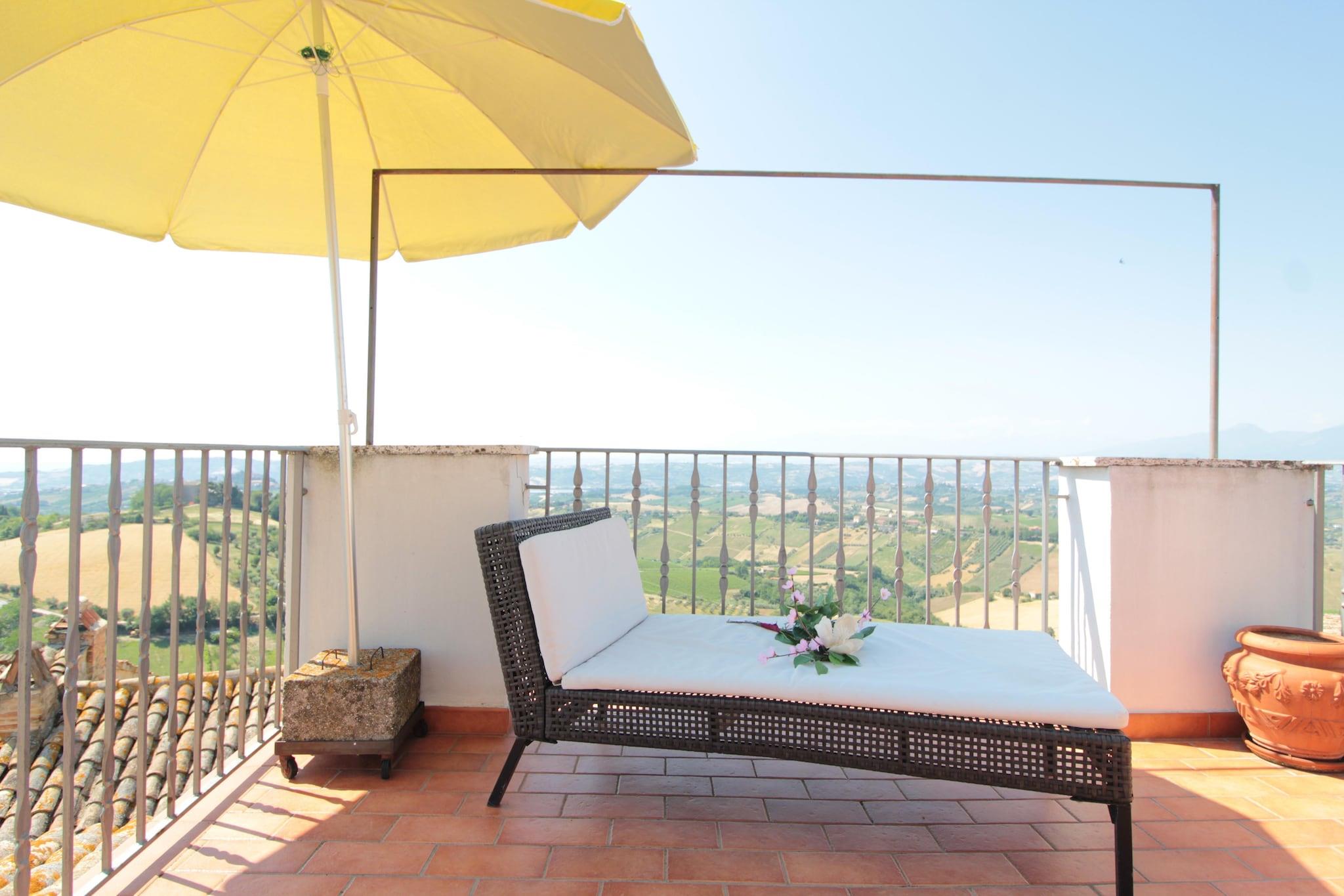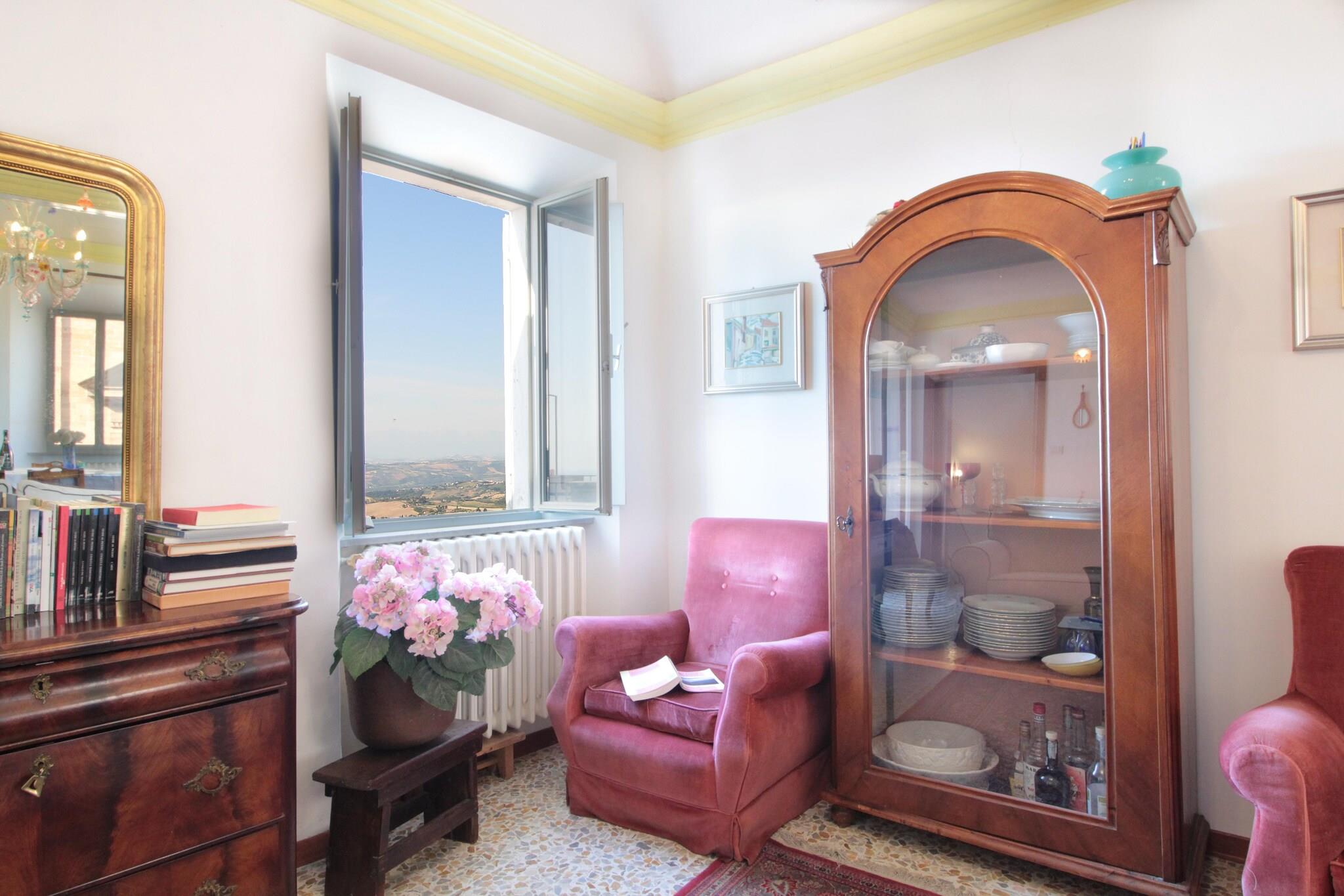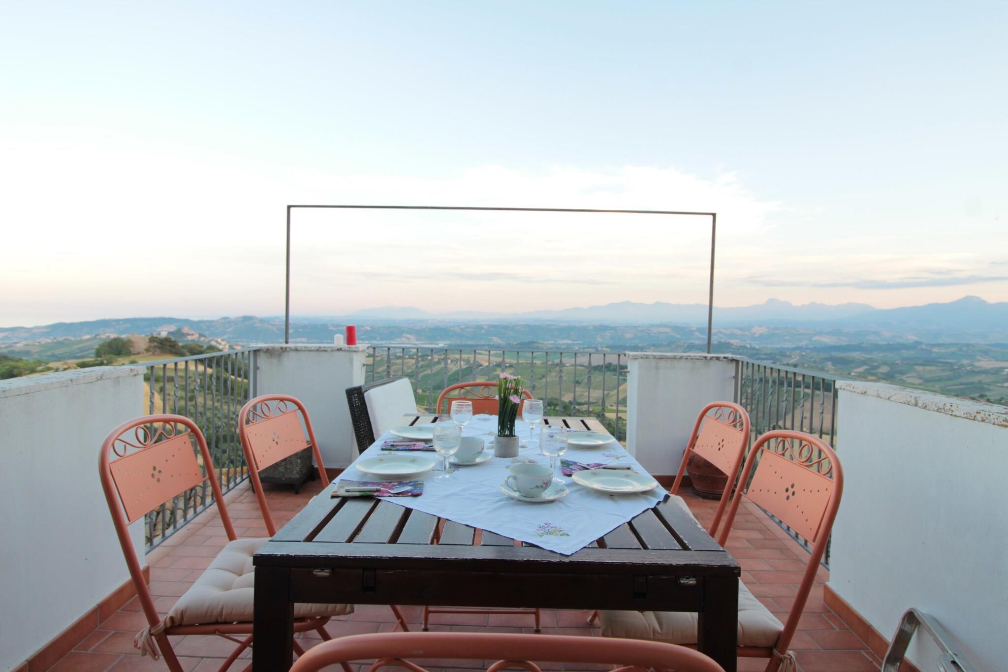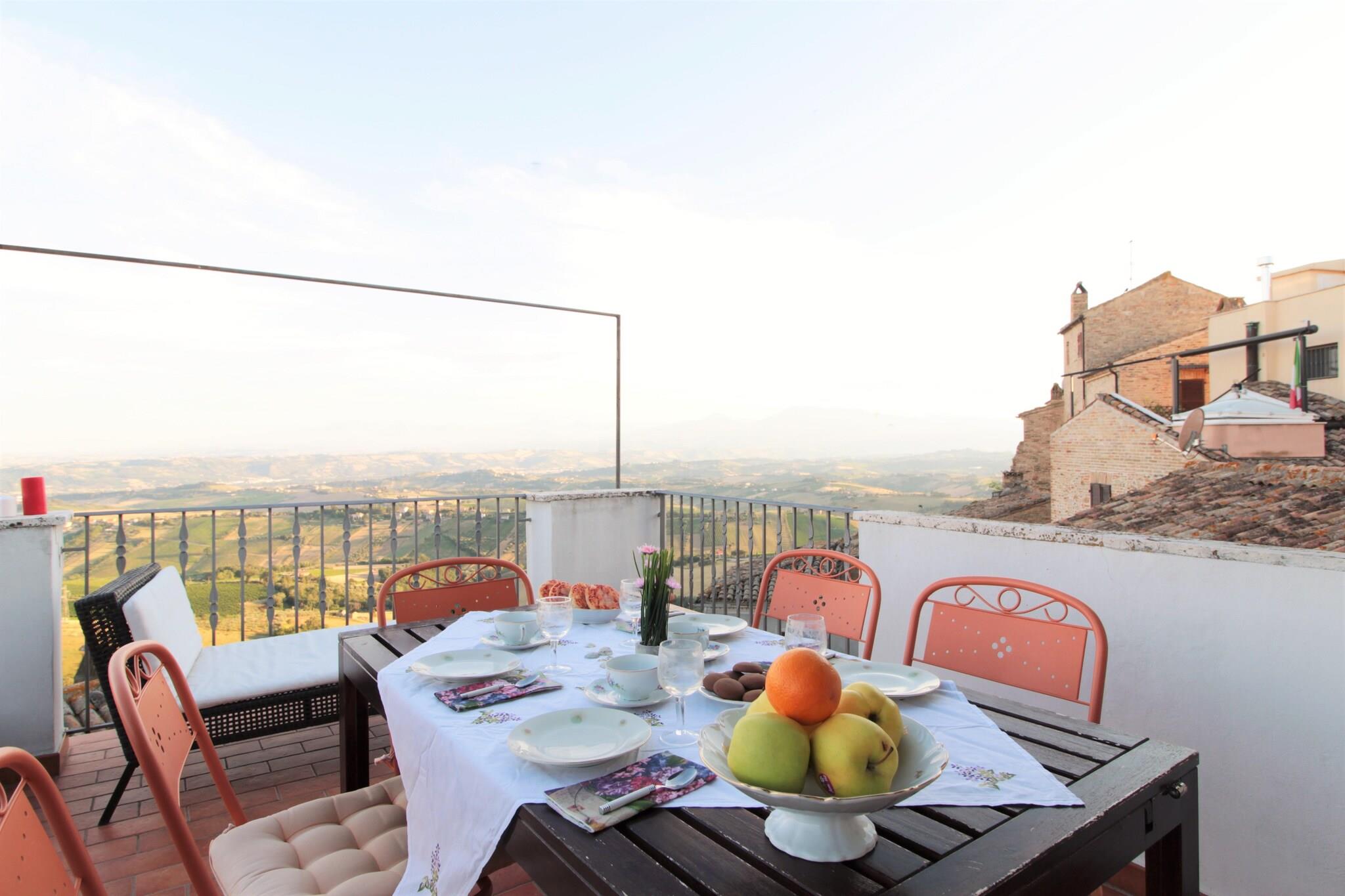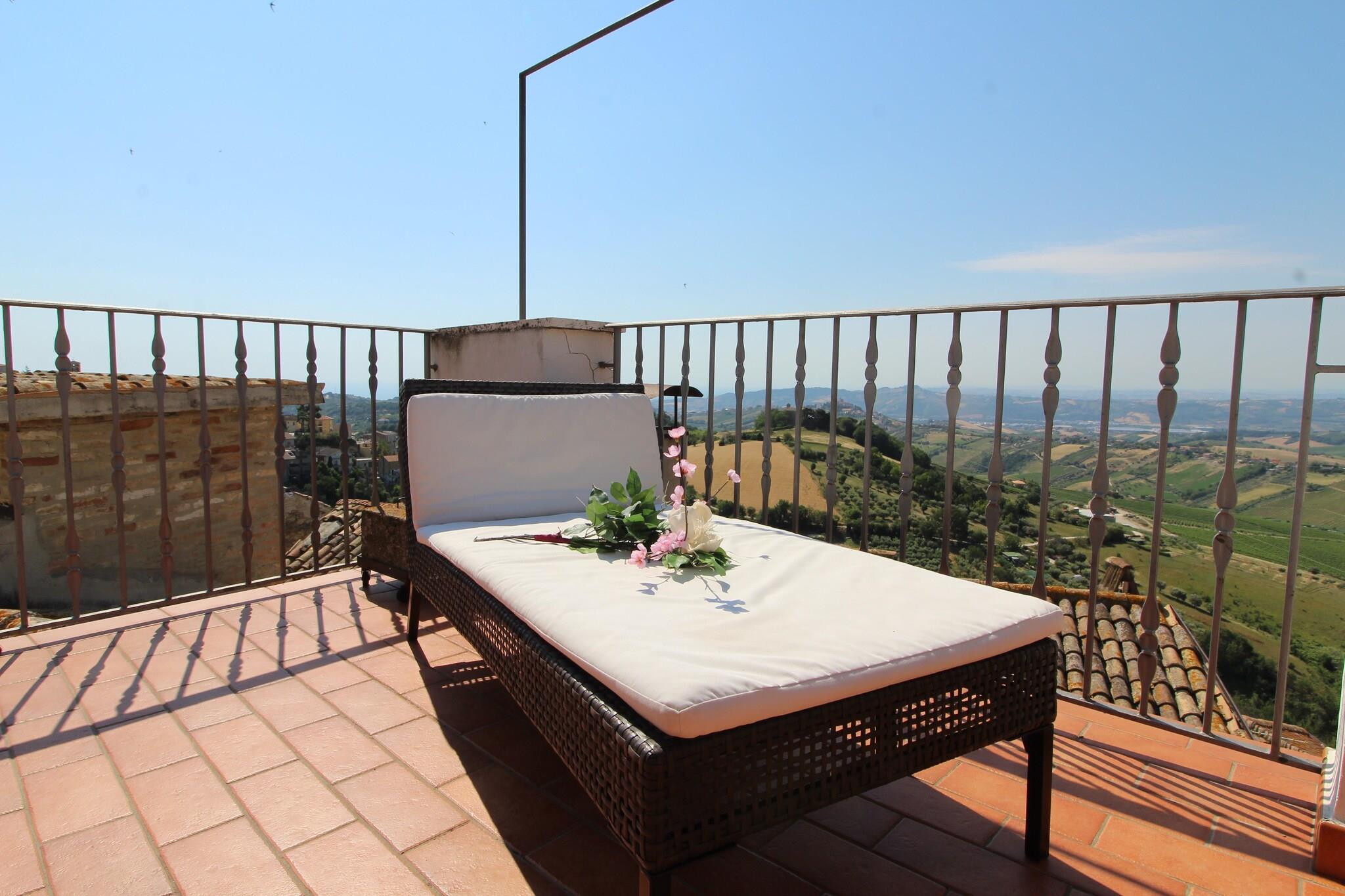 Fra terrassen i denne gamle bygning, beliggende i den charmerende landsby Acquaviva Apicena, 350 meter over havets overflade, kan du beundre et pragtfuldt panorama: på den ene side havet og på den anden side bakkerne, der bliver til Abruzzo-bjergene. Det er et sted dedikeret til dem, der ønsker at nyde havet væk fra forvirringen (stranden i San Benedetto er kun 8 km væk), og på samme tid elsker at besøge pragtfulde middelalderlandsbyer (Cupra, Grottamare Alta .. ), men også vidunderlige byer som Ascoli Piceno, Macerata, Pescara, Rom (kun 2 timer) eller vandre i bakkerne, stoppe i kældrene for at smage de fremragende lokalt producerede vine ledsaget af lokale specialiteter. For naturelskere tilbyder de to nationalparker, Gran Sasso og Monti Sibillini, ruter, der skal gennemføres både til fods og på cykel. Bygningen ligger i det historiske centrum, så du kan gå ind på pladsen, der støder op til middelaldertårnet, for at læsse din bagage af, men så skal du parkere uden for murene (gratis parkering få minutters gang fra huset). Huset er fordelt på 3 etager, som selv er placeret på forskellige niveauer, derfor ideel til en stor familie eller en gruppe venner. Og det ender i den store terrasse, der støder op til stue og køkken, hvor du vil tilbringe uforglemmelige aftener.