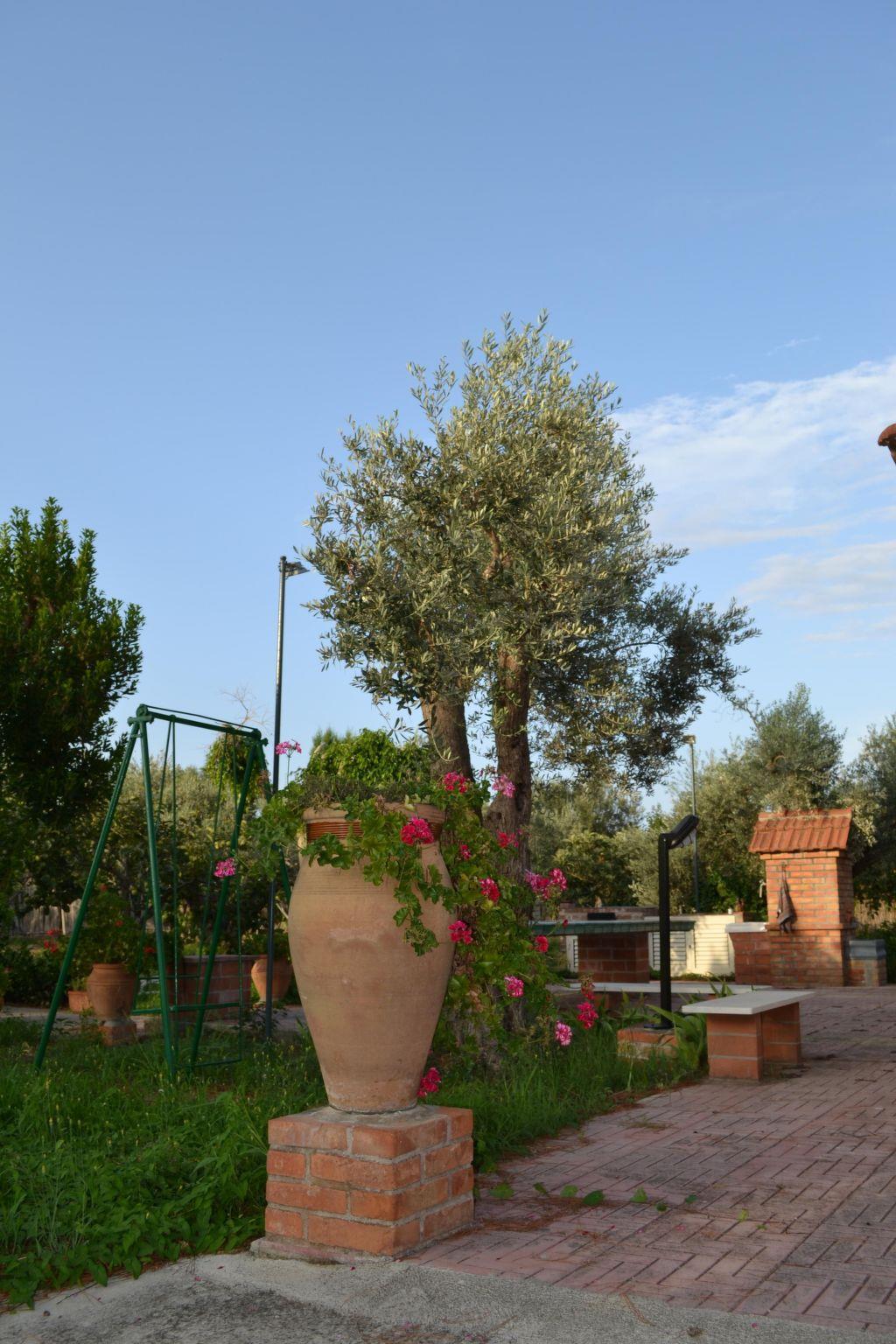 Outside, a large brick-paved area awaits you on two sides of the house, ideal for relaxing moments. On one side is a large brick table with ceramic tiles, perfect for dinners with friends or family. Next to the large table is a fountain with running water coming directly from the village well and a barbecue for preparing meals outdoors. In the garden there are various fruit trees and on the path leading to the sea there is an outdoor shower. The property also has a concrete courtyard and private parking spaces. The property is only partially fenced.