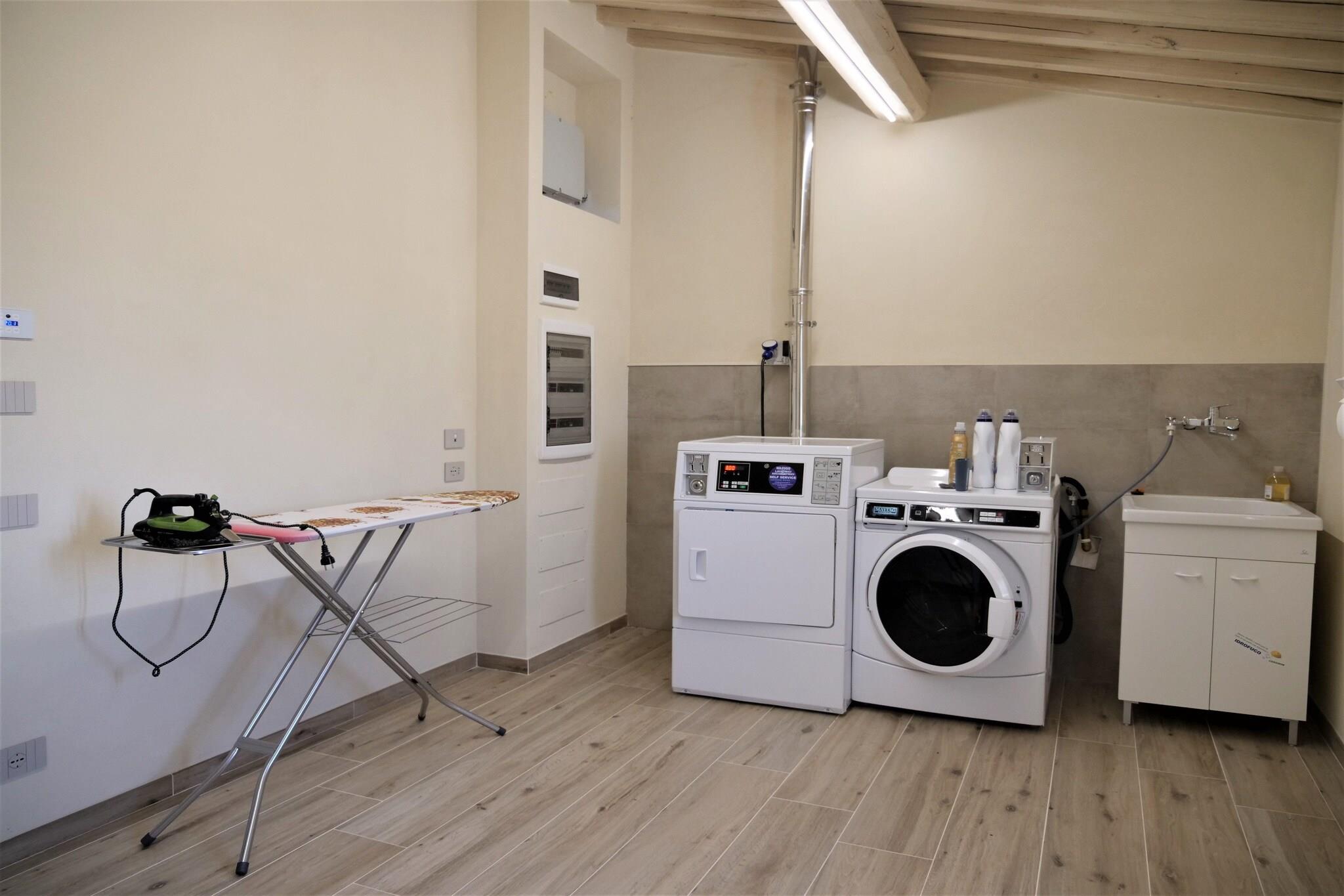 Flygt til hjertet af Toscana og oplev slow living, når det er bedst, på denne moderne agriturismo i Agliana. Omgivet af gyldne marker og bølgende bakker blander denne indbydende lejlighed rustik charme med moderne komfort - det perfekte tilflugtssted for familier eller par, der søger fred, skønhed og autenticitet. Vågn op til den blide summen af landet, nyd morgenmaden i den fælles have på 2500 m², og mærk varmen fra den toscanske sol, mens du slapper af under oliventræerne. Lejligheden med aircondition tilbyder alt, hvad du behøver - en hyggelig stue med sovesofa, et veludstyret køkken til hjemmelavede fester, satellit-tv og gratis Wi-Fi, så du kan holde forbindelsen, mens du kobler fra hverdagens travlhed. Agriturismoen ligger i den naturskønne provins Pistoia og placerer dig i nærheden af Toscanas tidløse skatte. Gå en tur gennem Pistoias charmerende historiske gader, der kun ligger 10 km væk, eller planlæg dagsture til Firenze (47 km), Lucca (50 km), Siena (98 km), Pisa (73 km) og middelalderperlerne Volterra og San Gimignano. Efter at have udforsket området kan du vende tilbage til roen i dit hjem på landet – hvor en indhegnet fælleshave, rigelig parkering og vaskerifaciliteter sikrer et problemfrit ophold. Uanset om du ser solnedgangen over bakkerne eller deler et glas Chianti under stjernerne, lover denne toscanske flugt den enkle glæde ved et smukt levet liv.