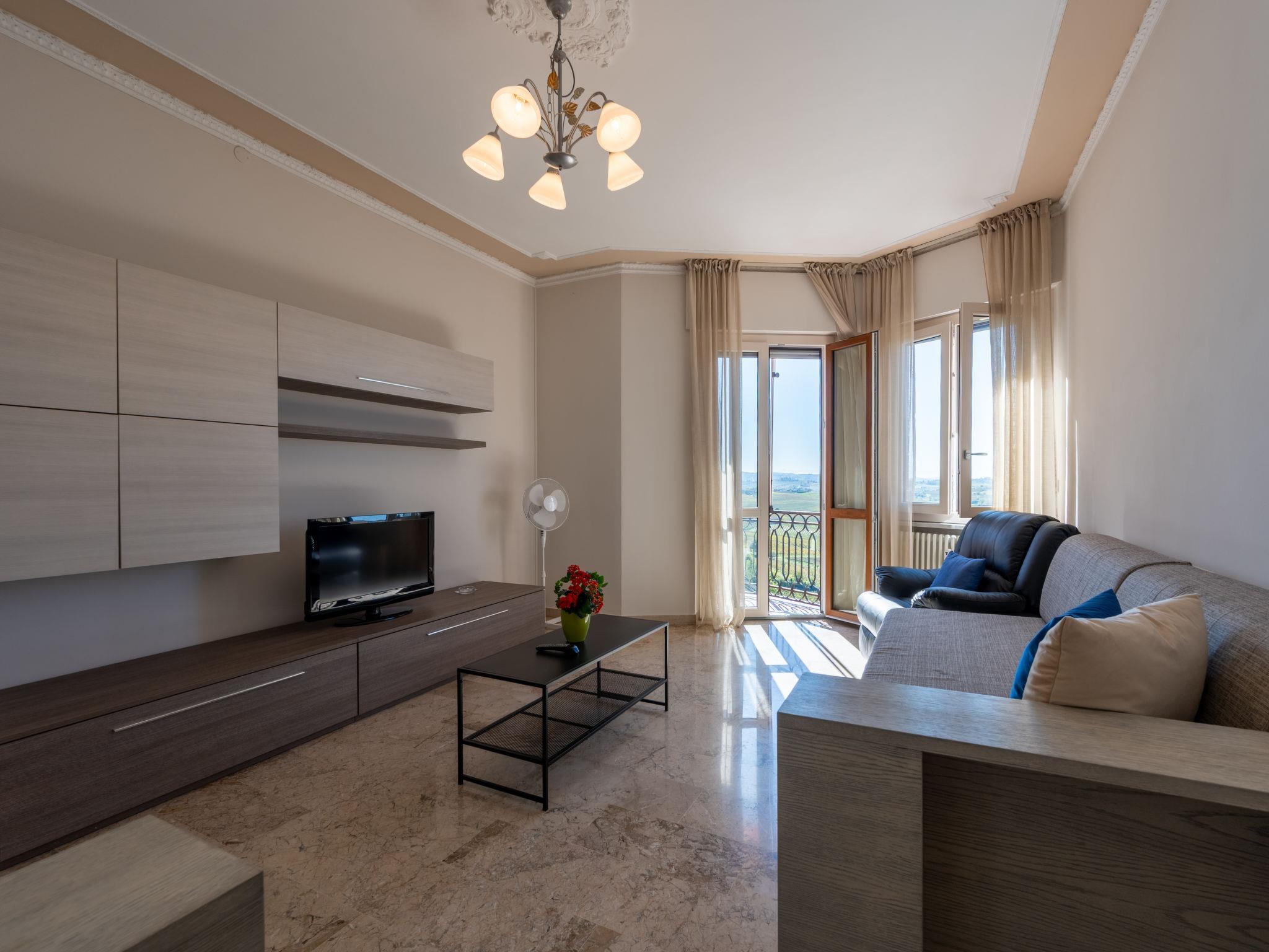 "Casa Riggi", 3-room apartment 90 m2 on 3rd floor. Beautiful and tasteful furnishings: living/sleeping room with 2 sofabeds. Exit to the balcony. 1 double bedroom. Exit to the balcony. Kitchen-/living room (oven, dishwasher, 4 induction hot plates, toaster, kettle, microwave, freezer, electric coffee machine). Exit to the balcony. Shower/bidet/WC. Heating, air-conditioning. Heating available only from 01.10. to 15.04. Natural stone floors. 2 small balconies, west facing position and, east facing position. Balcony furniture. Beautiful view of the countryside. Facilities: washing machine, dryer, safe, iron, hair dryer. Internet (WiFi). Please note: smoke alarm, fire extinguisher. IT005001C22WA6ZQ9S