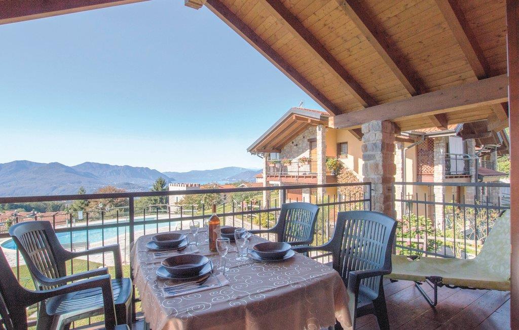 Ferielejlighed i et boligkompleks i Agra, en lille landsby på en bakke med udsigt over Maggiore-søen. Udsigten er især vidunderlig fra poolen. Om aftenen vil I nyde den idylliske ro i Agra, hvor I kan se panoramaet af solnedgangen, mens I sidder i haven. Den store indhegnede græsplæne gør boligen særligt egnet for familier med børn. Stedet er også ideelt som udgangspunkt for udflugter rundt om søen. I Luino, kun få kilometer væk, går der færger til de andre landsbyer i søen og til de Borromeanske Øer. I kan smage de lokale delikatesser på de hyggelige restauranter eller tage på vandretur langs søen - i nærheden er der talrige markerede vandrestier. På forespørgsel og mod gebyr: WiFi, høj stol og barneseng. Se IVM162, IVM163 og IVM164.