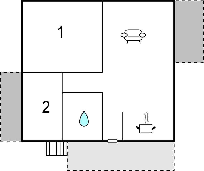 Opholdsstue/køkken - 2 Sovepladser. (Sofa, madras eller lignende).