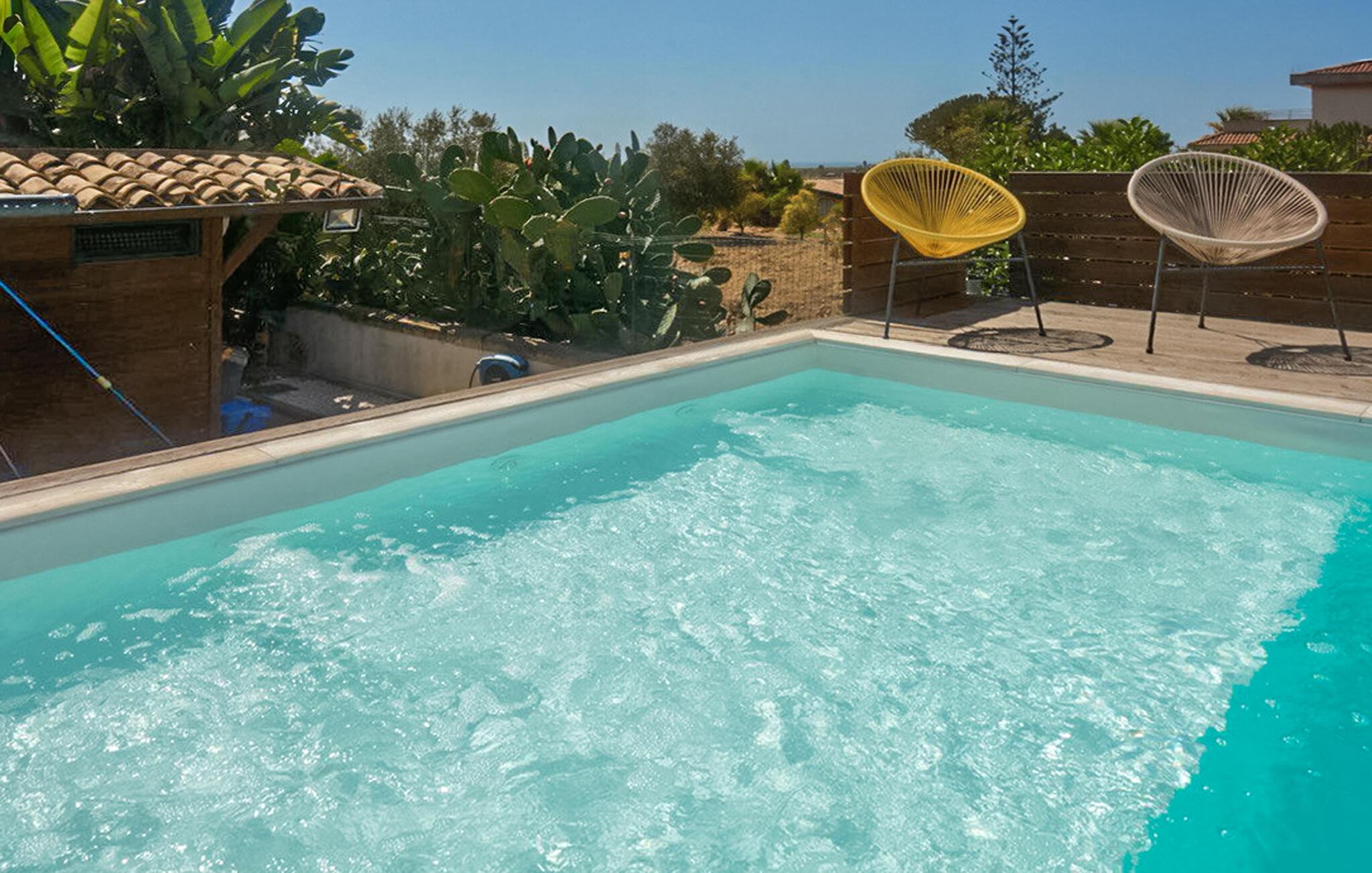 Oplev en afslappende ferie i dette hyggelige feriehus nær stranden med pool. Udefra byder huset jer velkommen med middelhavsstemning, lyse facader og en iøjnefaldende stor kaktus i haven. Indenfor finder I praktisk møblering med lyse træmøbler, et spisebord til hyggelige sammenkomster og et veludstyret køkken. Her kan I lave mad sammen, tilbringe lange aftener med mad og vin og nyde husets afslappede atmosfære. Den smukke, velholdte have med sin forfriskende pool og komfortable siddepladser inviterer jer til at slappe af i solen. Liggestole, en stor parasol og middelhavsplanter skaber en charmerende atmosfære. Her kan I starte dagen med en svømmetur, fordybe jer i en god bog i skyggen eller nyde lune aftener udenfor. Stranden er ikke langt væk, hvor blødt sand og det dybblå hav glitrer i solen venter jer. I Agrigento kan I beundre de verdensberømte templer i Valle dei Templi og opleve Siciliens imponerende historie på første hånd. De hvide kalkstensklipper ved Scala dei Turchi tilbyder et uforligneligt naturskue ved havet. Beliggende mellem olivenlunde og mandeltræer vil I opdage et landskab, der kombinerer ro og skønhed.
