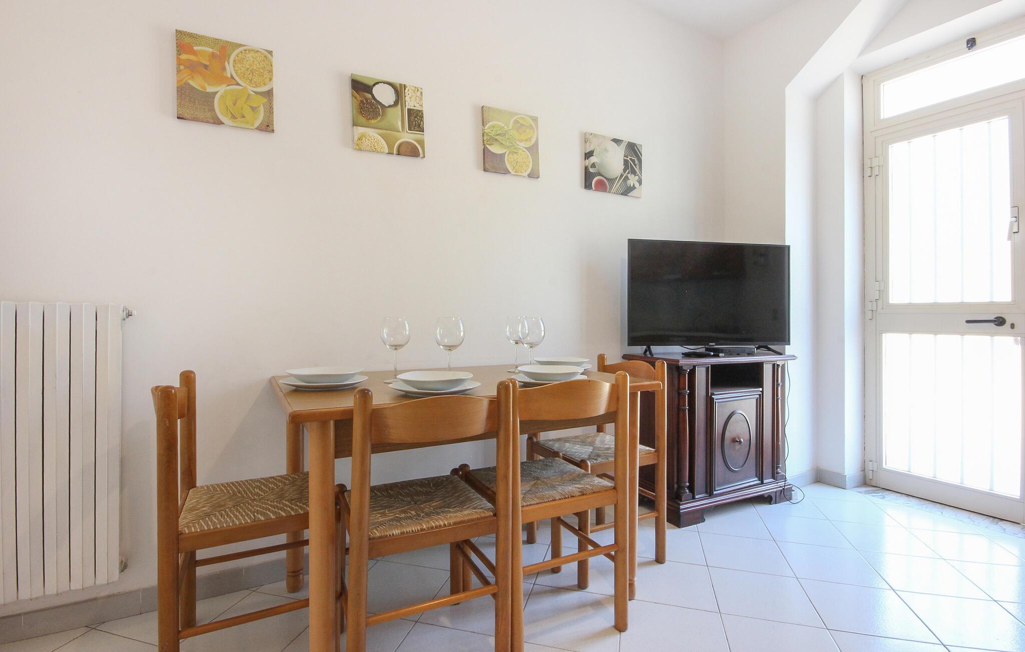 Denne smukke lejlighed i stueetagen er ideelt placeret til en spontan og alsidig ferie. Tilbered lækre retter og planlæg jeres aktiviteter ved spisebordet. Efter en lang dag kan I læne jer tilbage i sofaen, streame en film eller slappe af med et brætspil.