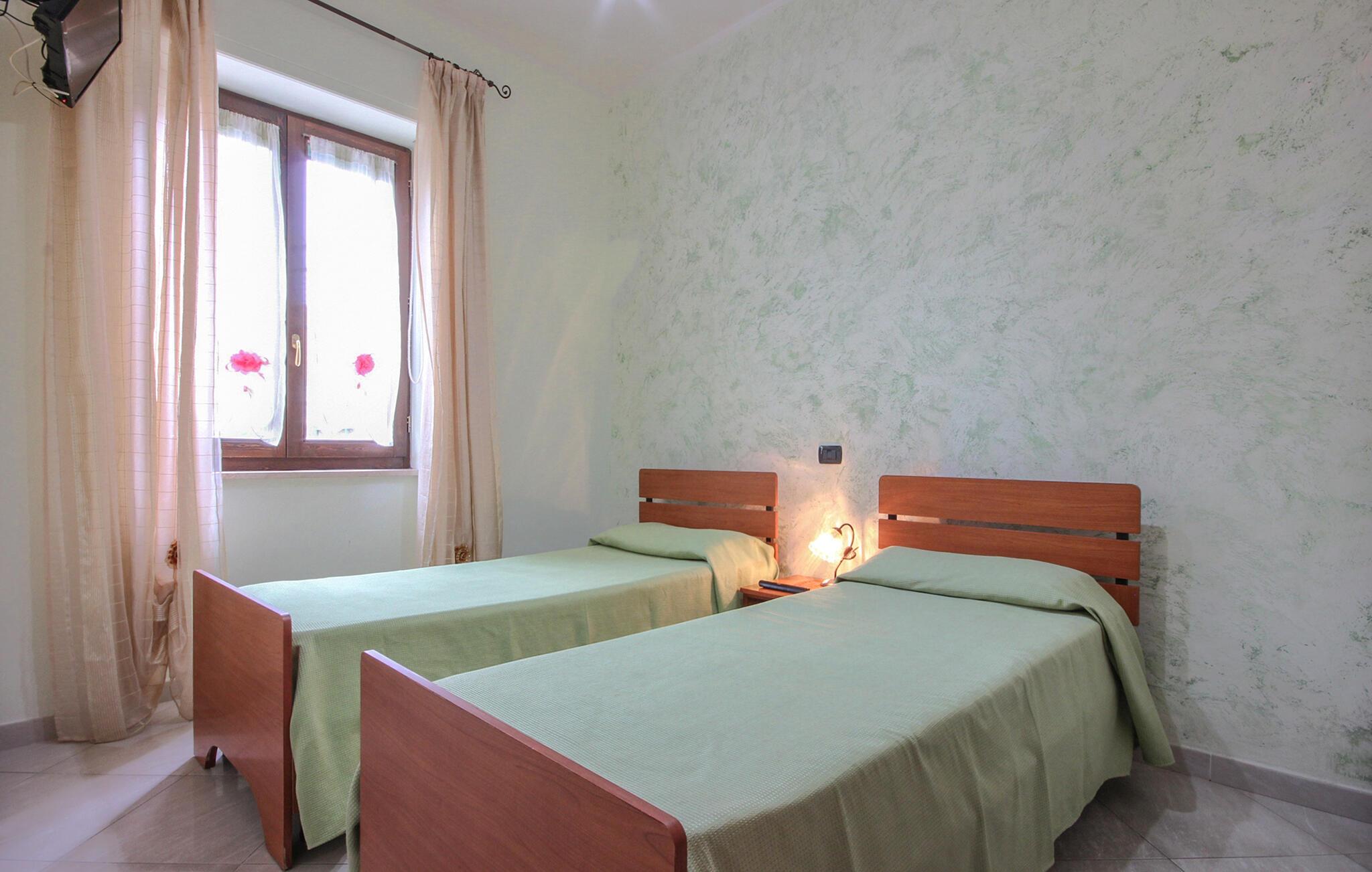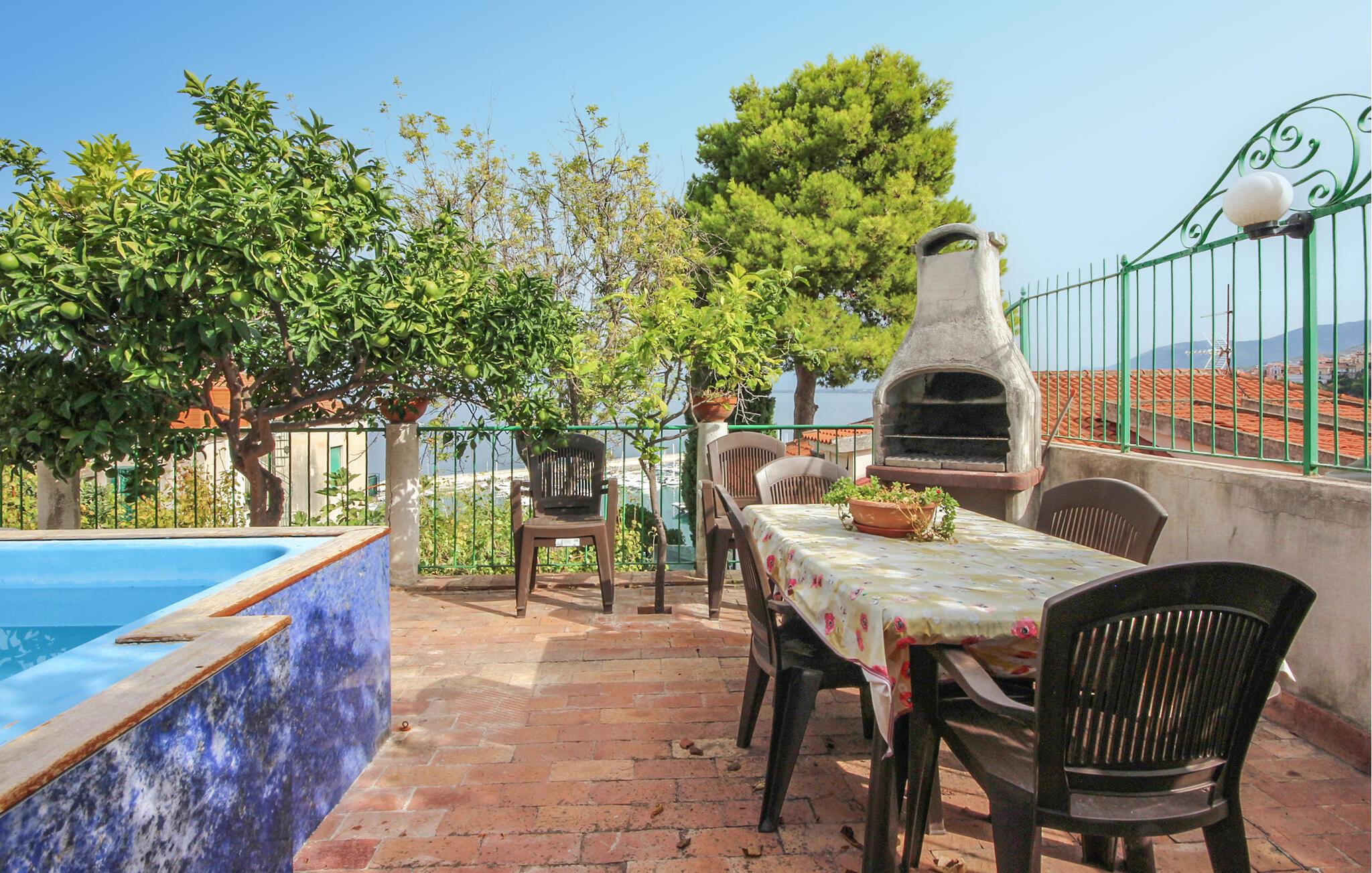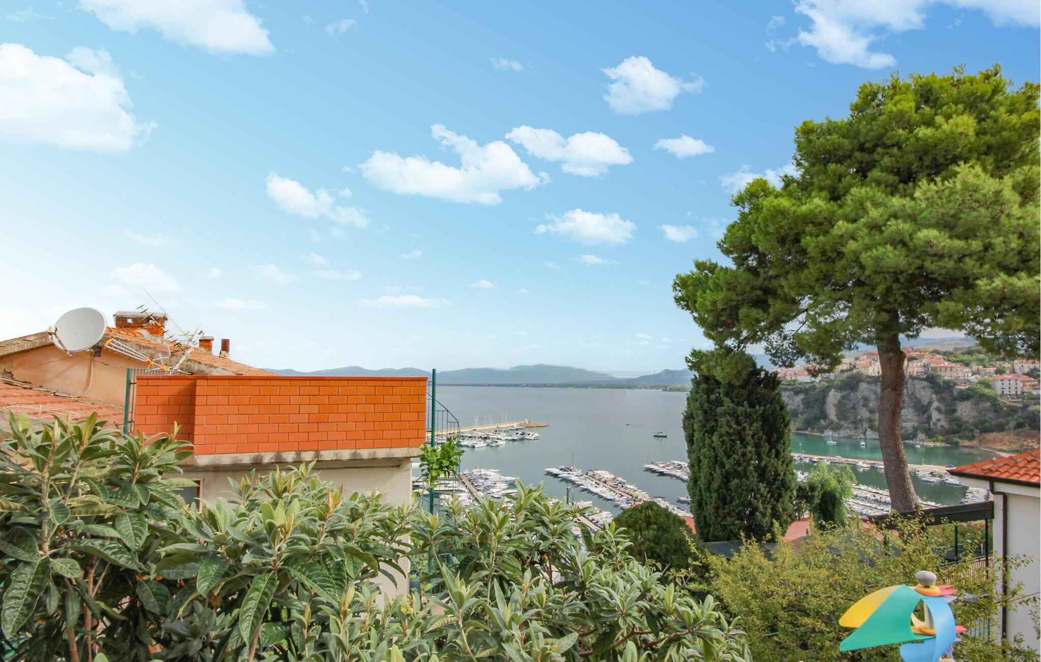 Denne ferielejlighed tilbyder enkel, men behagelig indkvartering med middelhavsinspireret præg og smuk havudsigt. Indenfor finder I en lys opholdsstue med spiseplads og et integreret køkken udstyret til selvforplejning.