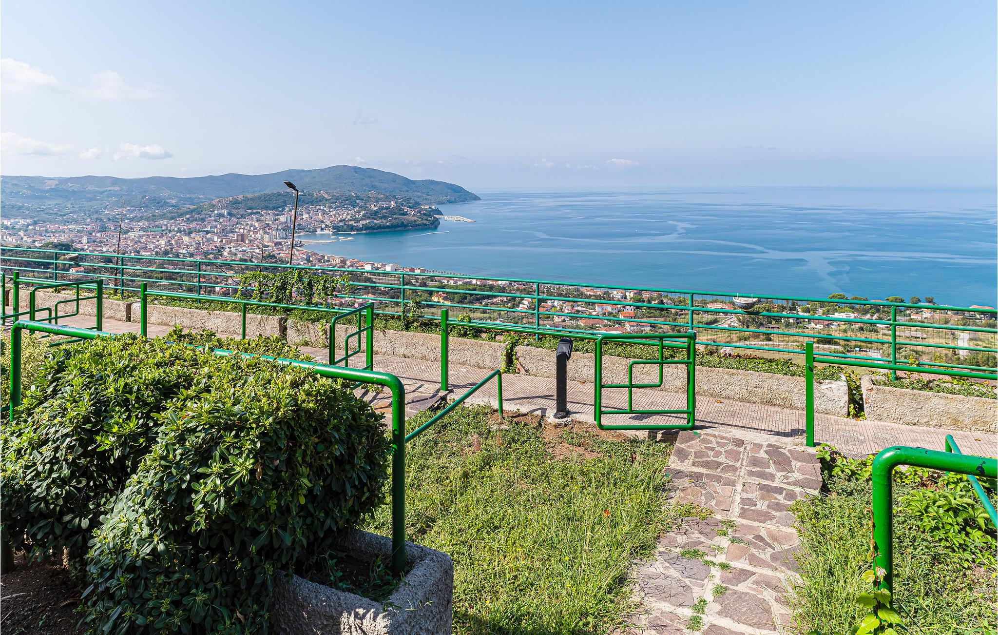 En betagende udsigt over Agropoli-bugten, med sit gamle Akropolis og havn, er kendetegnende for dette feriedomicil.
