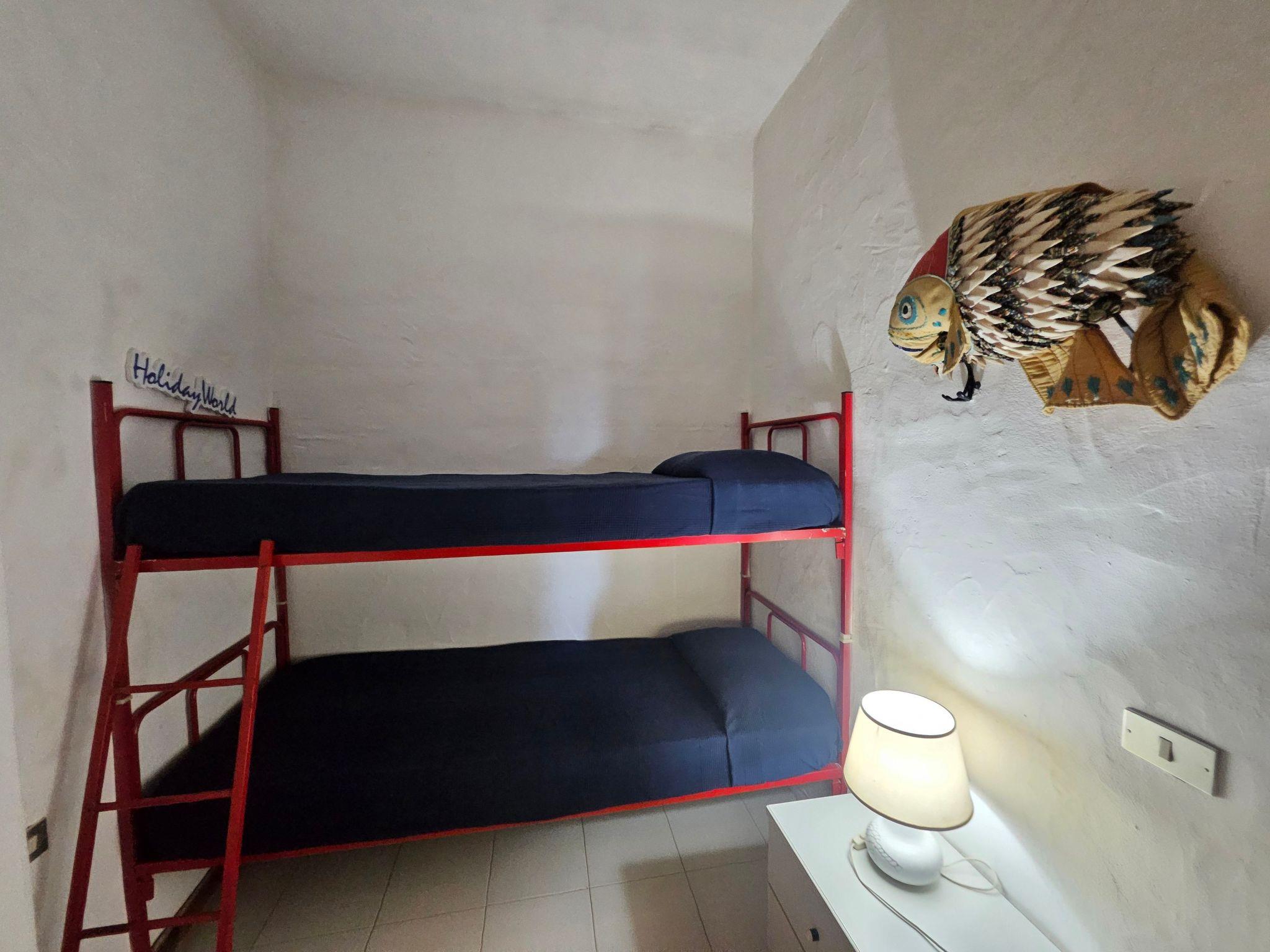 The living area is bright and welcoming, with an equipped kitchenette and furnishings with Mediterranean charm. The sleeping area consists of a spacious and comfortable double bedroom, a second bedroom with two bunk beds and another bedroom with three single beds. Ideal for families or groups of friends. The bathroom is complete with shower and bidet. The large panoramic terrace is perfect for outdoor dining or relaxing moments admiring the sea. Equipped with every comfort such as air conditioning, Wi-Fi and a shared swimming pool, Casa Aloe is the ideal starting point for visiting Sa Teodoro and its surroundings. The flat is located in a privileged position, a stone's throw from the most enchanting beaches in Sardinia, such as Cala Brandinchi, Lu Impostu and the beach of Capo Coda Cavallo. Ideal for those who love the sea, water sports and the unspoilt nature of the Tavolara marine reserve.
