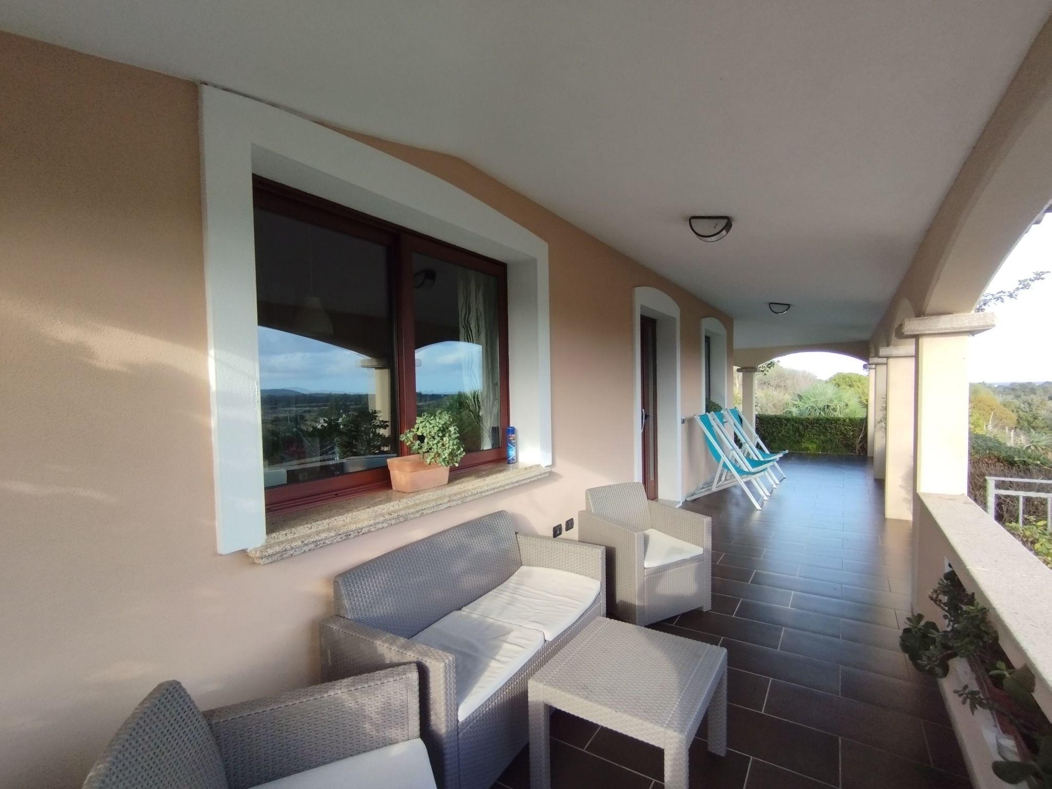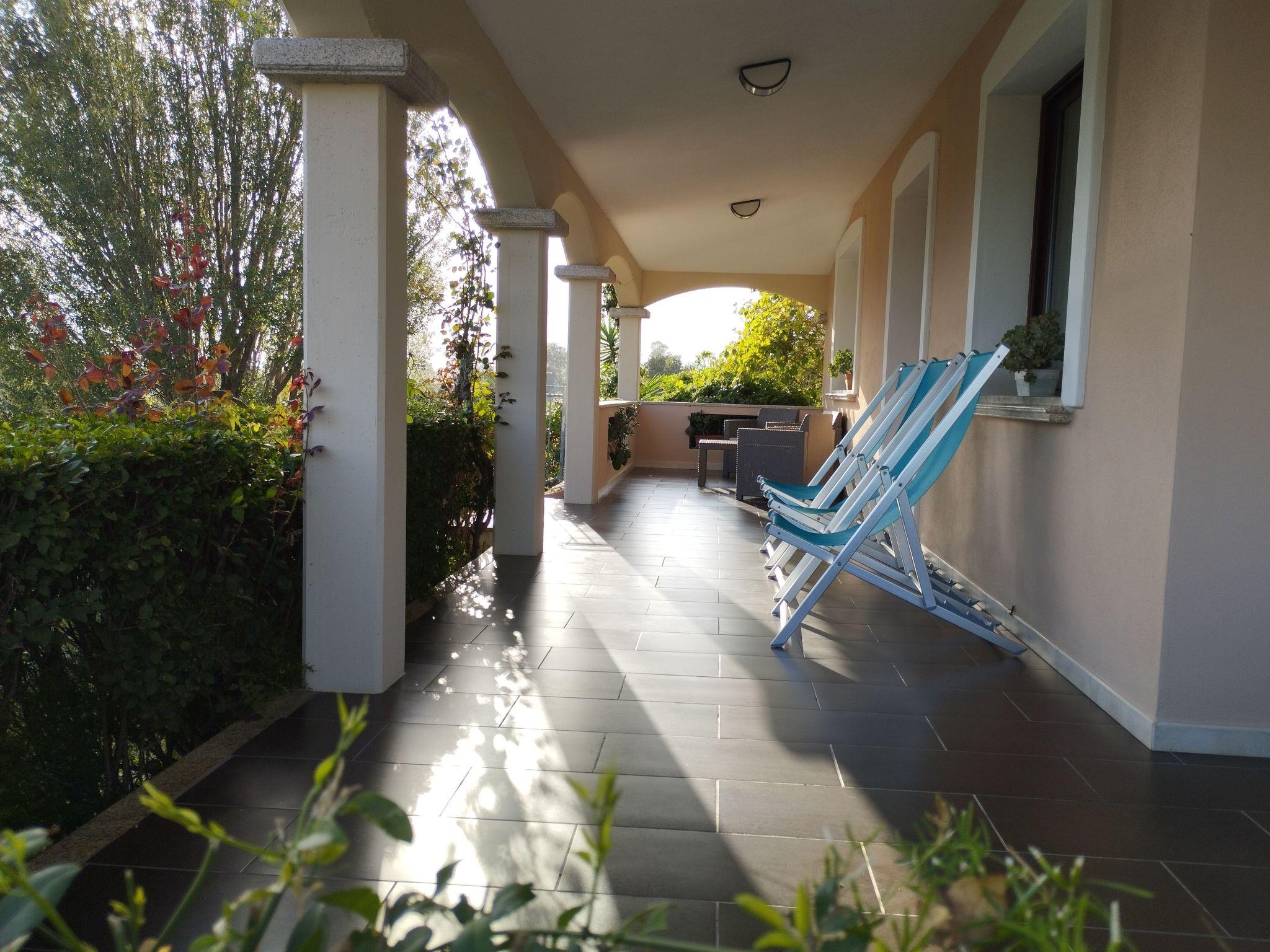 At'esterno, la casa è circondata da una veranda di 60 mq dove gli ospiti possono godersi pasti all'there is an open space with sea view and a large garden with barbecue, table and chairs for unforgettable barbecues under the starry sky. The outdoor space also offers large verandas, sun loungers for sunbathing, and extensive lawns where children can play freely.