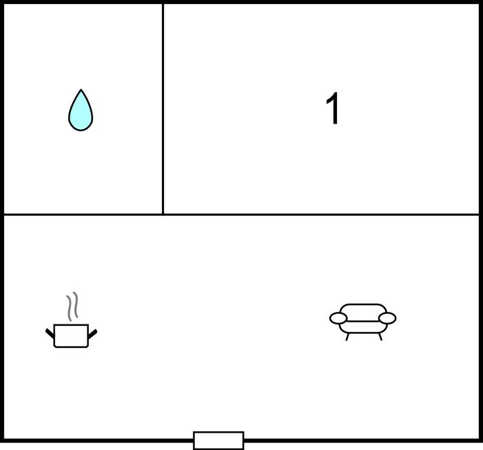 Opholdsstue/køkken 15m2 - 2 Sovepladser. (Sofa, madras eller lignende).