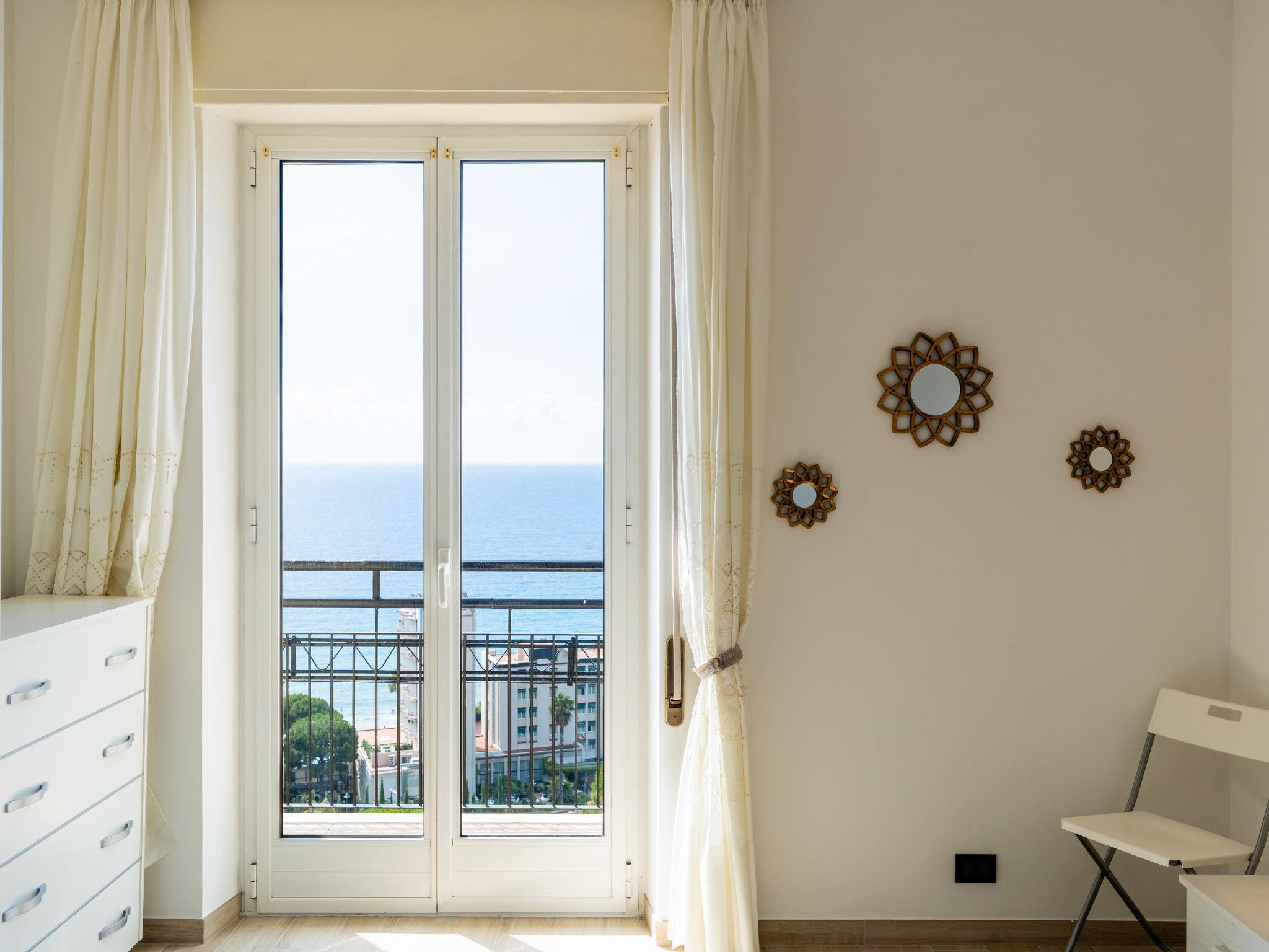 "Seaview", 3-room apartment 120 m2 on 3rd floor. Comfortable and tasteful furnishings: living/dining room with 1 folding bed (80 cm, length 190 cm), TV. Exit to the balcony. 1 double bedroom with air conditioning. Exit to the balcony. 1 room with 2 beds (90 cm, length 200 cm), air conditioning. Exit to the balcony. Kitchen-/living room (oven, 5 gas rings, toaster, kettle, microwave) with TV. Exit to the balcony. Gas heating, air-conditioning, forced-air heating. Heating available only from 01.11. to 15.04. Balcony 20 m2. Balcony furniture. Very beautiful, of the sea and the resort. Facilities: washing machine, children's high chair, baby cot for up to 2 year olds, hair dryer. Internet (WiFi, free). Please note: maximum 1 pet/ dog allowed. Smoke alarm, fire extinguisher. IT009001C2BMCHDGVG