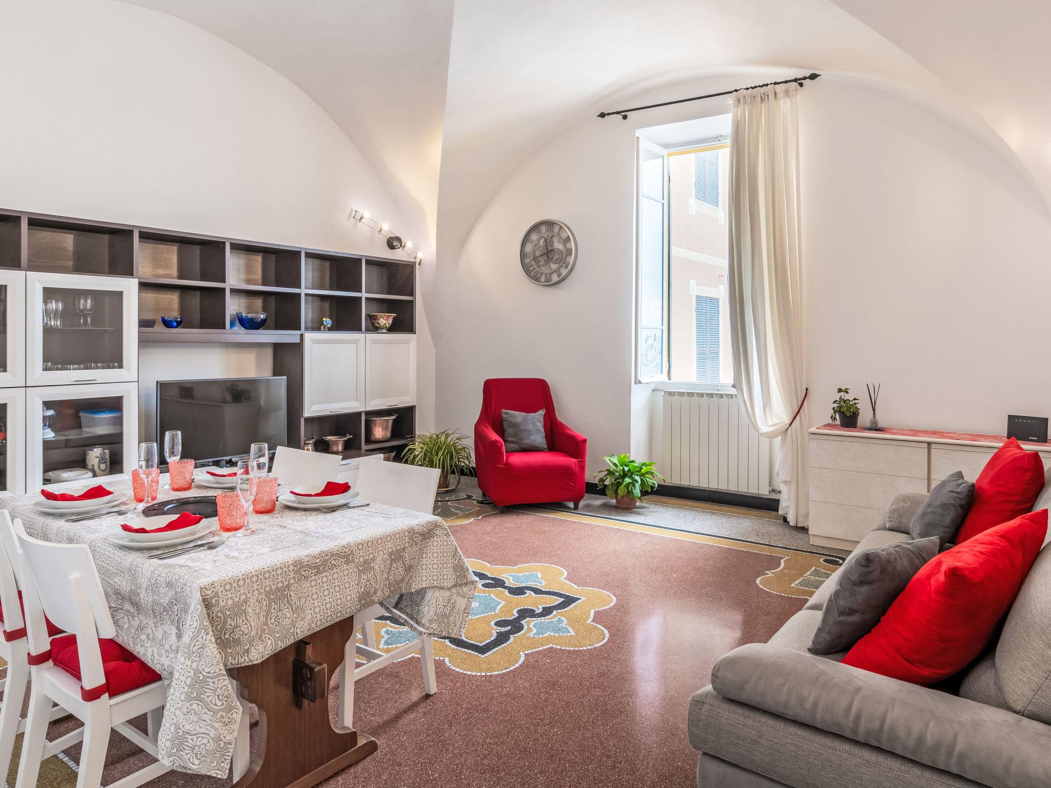 Apartment block. In the centre of Alassio, in a central position, 50 m from the sea, direct access to the beach, in a pedestrian area. Communal covered parking (extra) at 500 m, public parking. Bus stop 200 m, railway station 350 m, sandy beach 50 m.