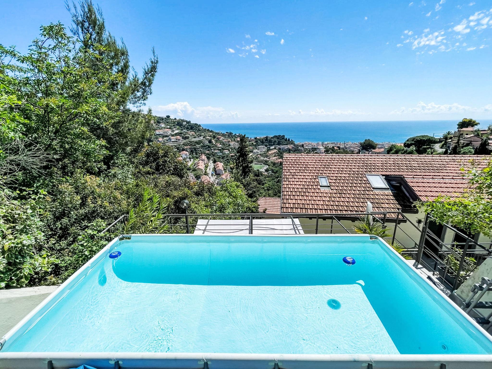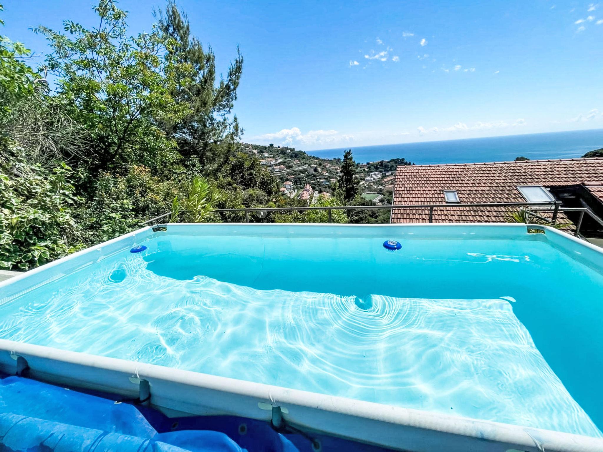 Semi-detached house. 3 km from the centre of Alassio, in the countryside. Private: swimming pool (above ground) (3 x 4 m, depth 100 cm, seasonal availability: 01.May. - 01.Oct.). Parking, single garage at the house. Bus stop 150 m, sandy beach 3.5 km.