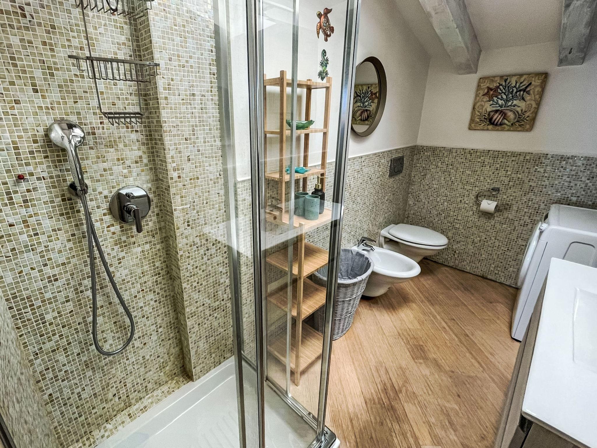 "Belle Vue", 2-room apartment 77 m2. Modern and stylish furnishings: living room with 1 sofabed and TV. 1 room with 1 double bed. Open kitchen (oven, dishwasher, 4 induction hot plates, toaster, kettle, electric coffee machine) with dining table. Shower/bidet/WC. Gas heating, air-conditioning. Balcony 10 m2, terrace 40 m2. Terrace furniture, balcony furniture. Beautiful panoramic view of the sea. Facilities: washing machine, children's high chair, baby cot. Internet (WiFi, free). Please note: non-smokers only. 1 pet/ dog allowed. Smoke alarm, fire extinguisher. IT009001C2FXE7PRGL