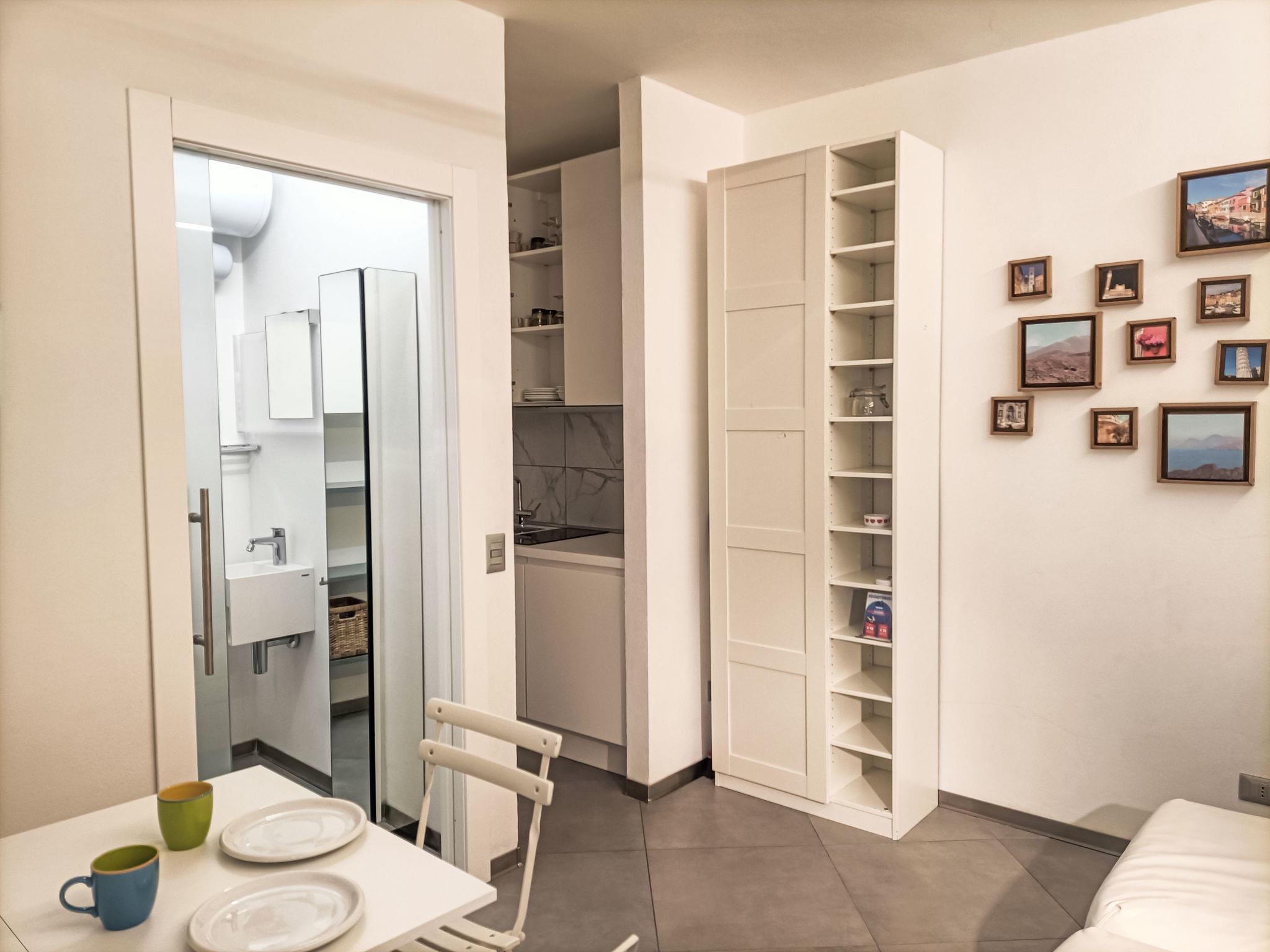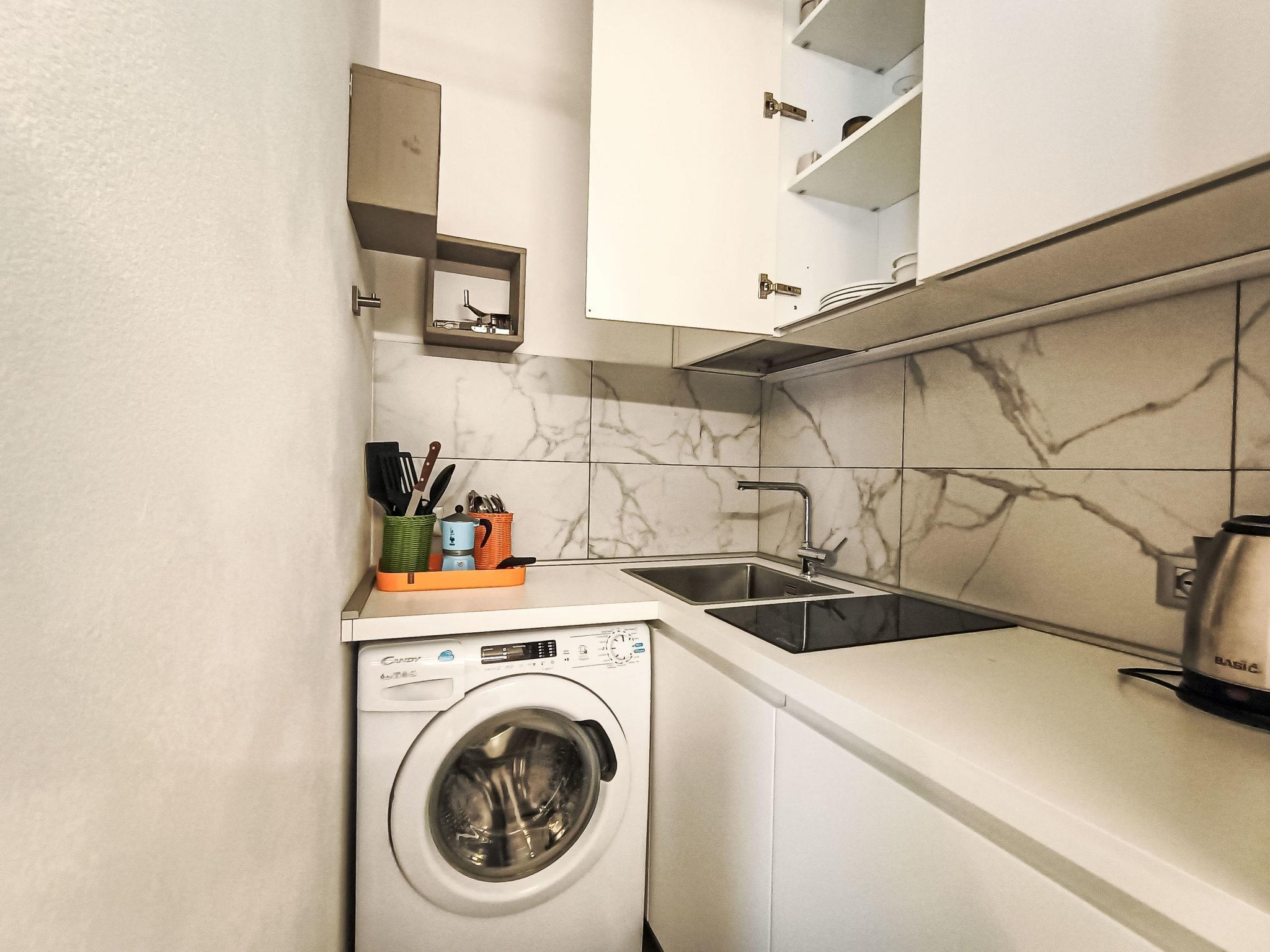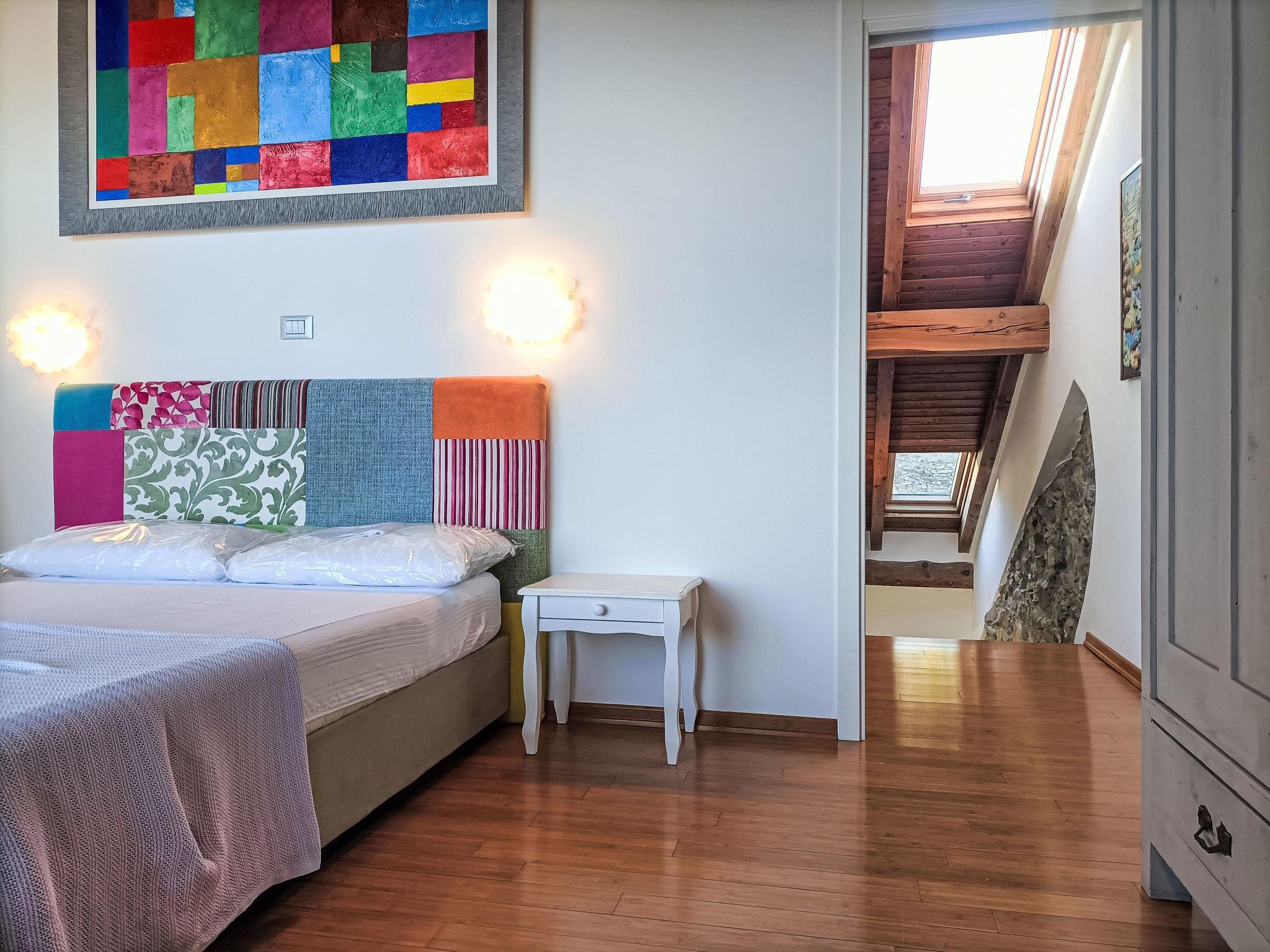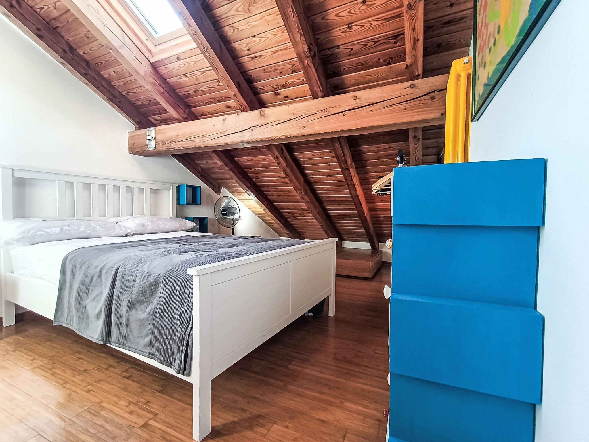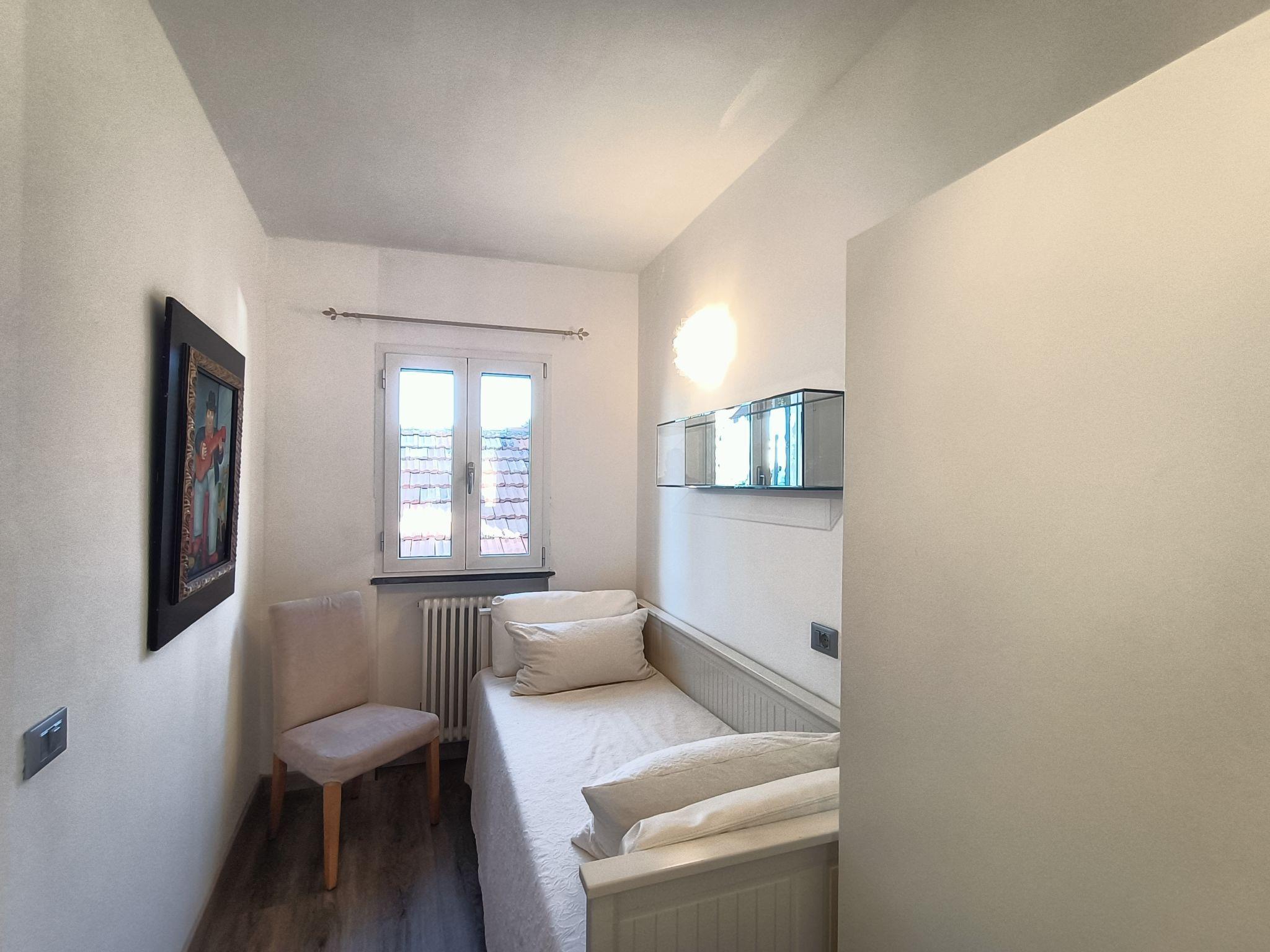 "Terrazza con glicine", 5-room terraced house 143 m2 on 3 levels, on the ground floor. Bright, modern and cosy furnishings: entrance hall. 1 room with 1 double sofabed, dining table, kitchen corner and shower/WC. Upper floor: (open staircase) living/dining room with air conditioning. 1 room with 1 bed (180 cm, length 90 cm), 1 pull-out bed. Open kitchen (Gas stove, 5 gas rings, toaster, kettle, freezer, electric coffee machine). Exit to the terrace. Shower/WC. 2nd upper floor: 1 double bedroom with sloping ceilings with 1 french bed and air conditioning. 1 double bedroom with sloping ceilings with panoramic window with 1 french bed, hand-basin and shower/WC. Exit to the terrace. 2 terraces 10 m2. Terrace furniture. Panoramic view of the sea, the mountains and the city. Facilities: washing machine, dryer, hair dryer. Internet (WiFi, free). Garage at 50 m. Please note: one double bedroom is outside the apartment. Smoke alarm, fire extinguisher, no lift. No internal connecting door between the separated properties. IT009001C2NBR5TUHX