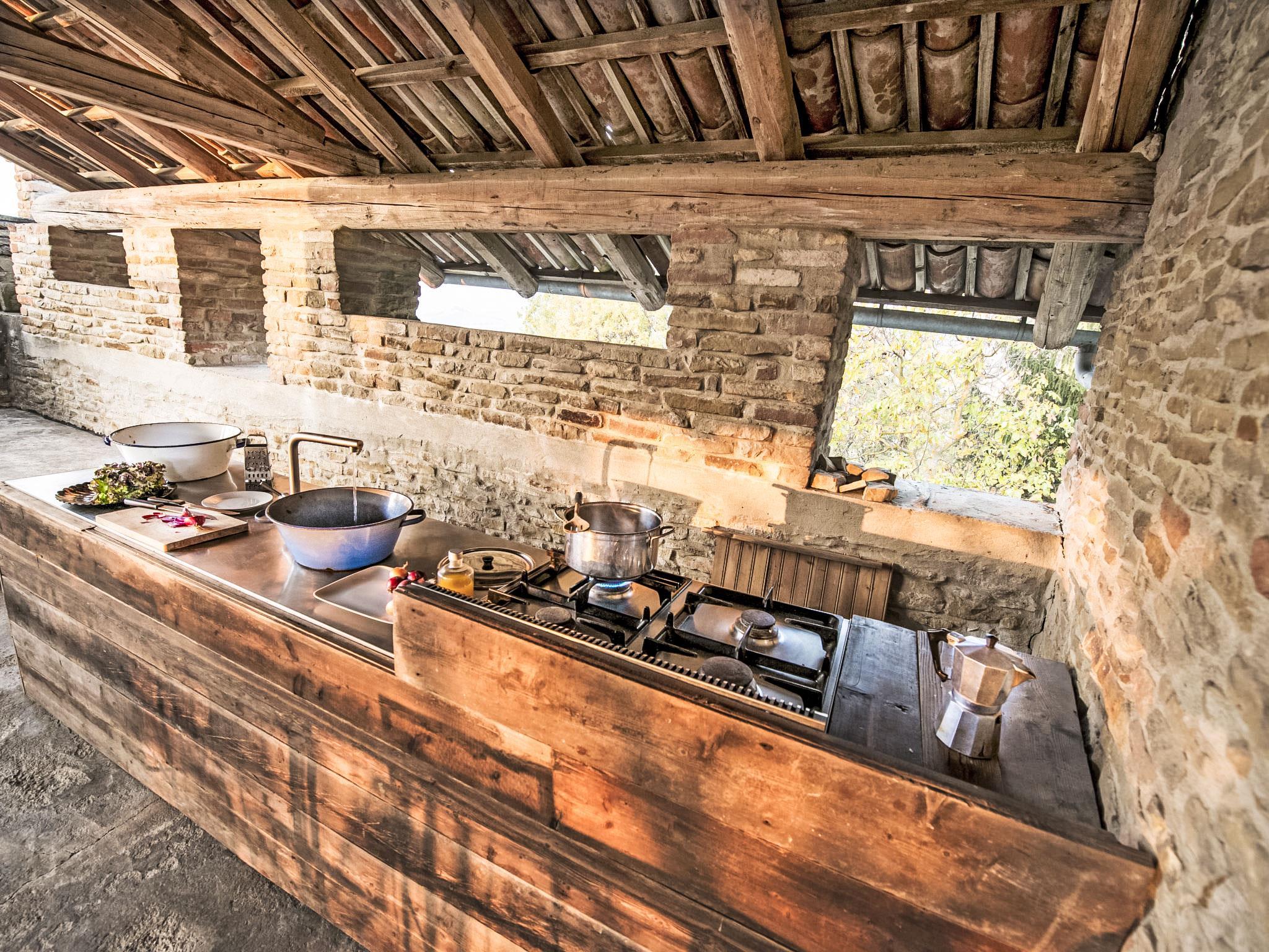 Trezzo Tinella 10 km from Alba: Large, historical manor house "Borgo del Riondino", 550 m a.s.l., from the 15th century, renovated, surrounded by fields and vineyards. 3 houses in the resort. 3 km from the centre of Trezzo Tinella, 8 km from the centre of Neive, 11 km from the centre of Barbaresco, in a secluded, quiet position, 75 km from the sea, in the countryside. Private: park 10 ha with wildlife garden and trees, indoor pool (13 x 4 m, depth 140 cm, seasonal availability: 01.Jun. - 15.Sep.). Shower/WC in the pool area. Heating to be paid on the spot, heating available only from 15.Oct. - 15.Apr.. Parking on the premises. Shop 8 km, supermarket 8 km, restaurant 2.5 km, bus stop 13 km. Nearby attractions: Langhe - Barolo 10 km, Asti 30 km, Bra 30 km, Cuneo 80 km. Please note: car recommended. The owner lives on the same property. The village overlooks an ancient courtyard. Inside the park there is a picnic area and a jogging path.