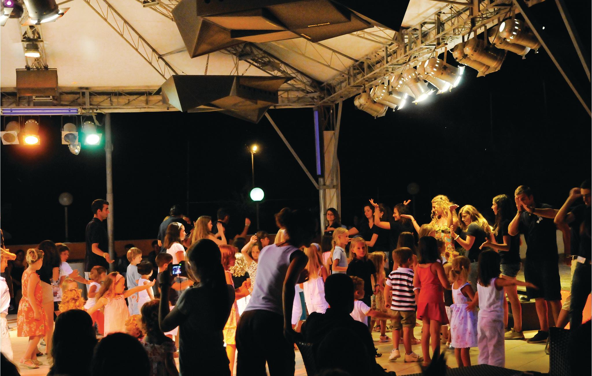 Øen byder også på talrige indkøbsmuligheder til alle behov: Der er indkøbscenter med supermarked, gastronomivarer, bageri, konditori, tøjbutikker, blomsterbutik, aviser og tobaksvarer, herre- og damefrisør, optiker og fotobutik, snackbar, video- og dvd-udlejning, sportsartikler, tasker og sko, parfumeri, typiske kiosker, vaskesalon og pengeautomat. Om sommeren er der sundhedstjeneste og medicinsk assistance samt sygetransporter. Mangfoldigt udbud af restauranter, pizzeriaer, barer, caféer, isboder og ølbar. Musikaftener til happy hours, diskoaftener og forskellige aftenarrangementer i amfiteatret. Øens flersprogede underholdningsteam kan underholde børn, unge og voksne med leg og sportskonkurrencer. Arabella råder over en havn med ca. 450 liggepladser til både på 6 til 25 meter med strøm, vandtilslutning og ildslukningssystem. Mange af tjenesterne er gratis, og andre kan betales billigere med kort, der kan genoptankes.