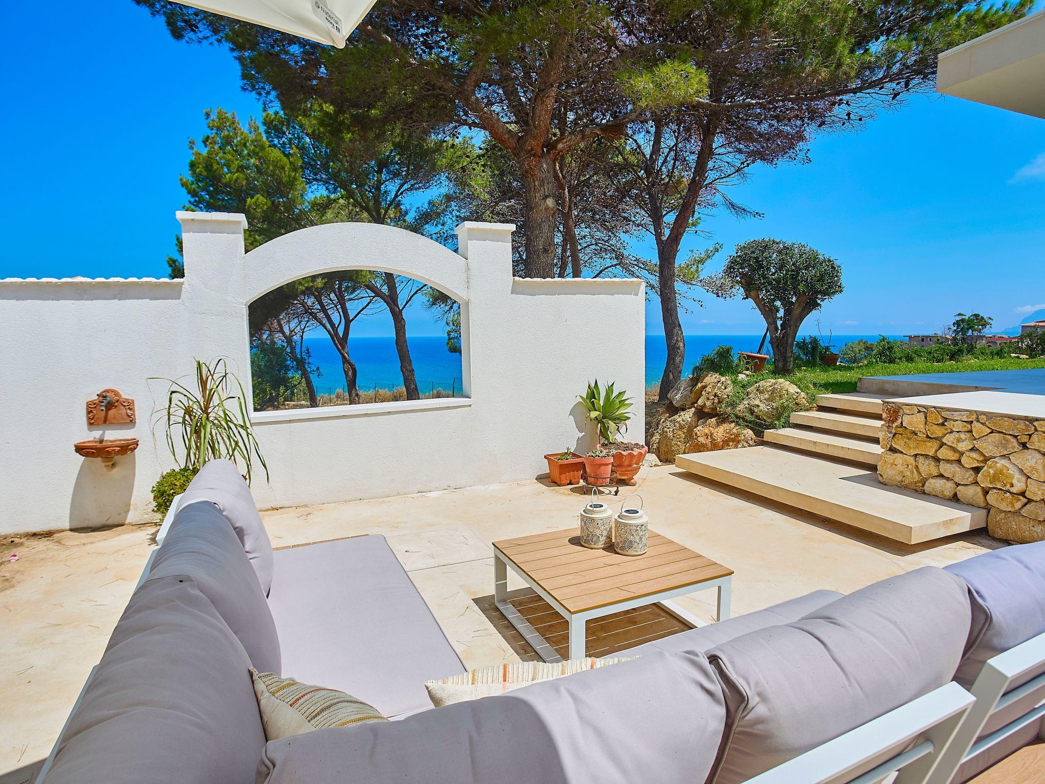 Villa Marinjo is a refined, recently renovated semi-detached villa, immersed in the quietness of the Mediterranean maquis of Alcamo Marina. The property extends over more than 5,000 square metres of land, amidst centuries-old olive trees, maritime pines and authentic Mediterranean scents, offering a wide panoramic view of the sea.