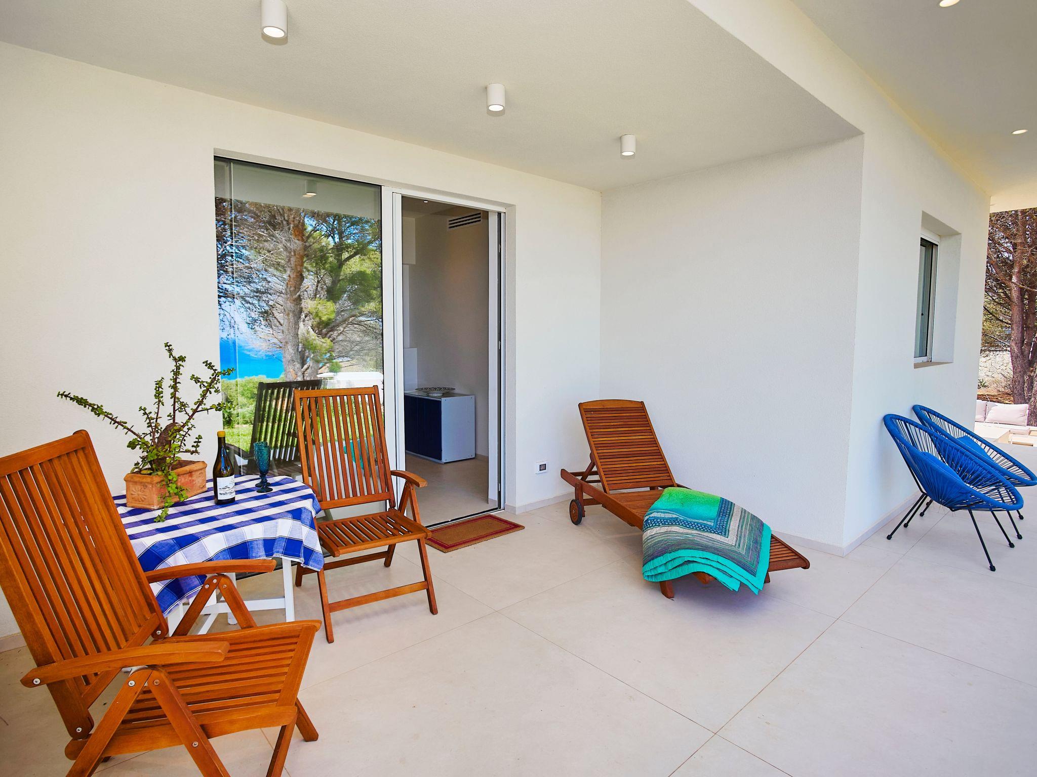 Arranged entirely on one level, the villa welcomes guests with a spacious and bright living area overlooking the sea. The living area includes a modern, fully equipped kitchen with dishwasher, traditional oven, microwave and coffee machine, and a laundry room.