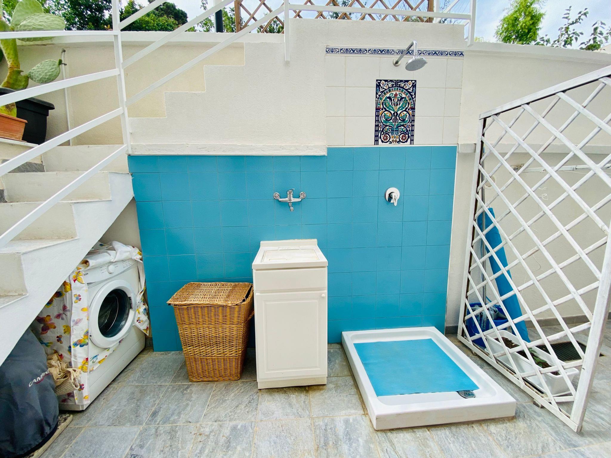 The villa is surrounded by a large private garden, where up to three cars can be comfortably parked. An outdoor fountain provides refreshment when returning from the beach, while at the back there is a courtyard with an outdoor shower with hot and cold water, as well as a practical laundry area.
