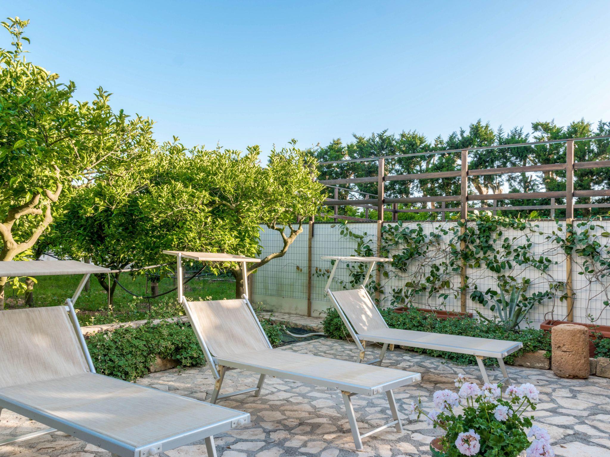 The courtyard outside recounts the sunny afternoons of the controra, when all is silent and you can hear the cicadas accompanying the afternoon hours with their chanting cries. The sun warms and colours the garden flowers, succulents and citrus trees. An ancient world, minimalist and essential as life used to be.