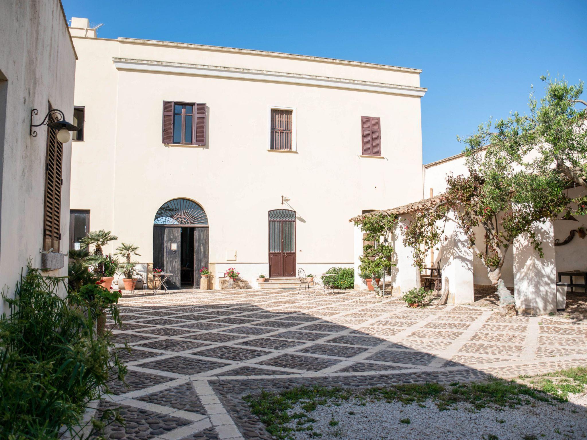 The facility offers the comfort of a modern structure while expertly preserving the distinctive elements of the old Sicilian farmhouse. Breakfast is served in a splendid wine cellar that houses the ancient tools of the grape pressing process, with tufa arches or alternatively under umbrellas in the citrus grove, while on the first floor the Art Nouveau-style library overlooks the swimming pool and has the sea as a backdrop, only a few hundred metres away from the vineyards and citrus groves. Even the rooms are a synthesis of the retro elegance of a period residence and the Spartan simplicity of a country house, all with hand-decorated floors and authentic furniture from the early 20th century, and all with air conditioning.