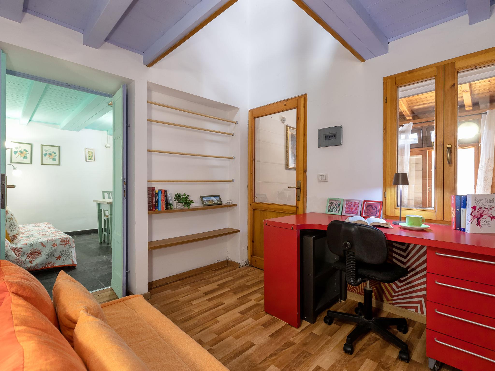 "Il Girasole", 4-room apartment 75 m2 on 2 levels, on the ground floor. Beautiful and cosy furnishings: living/dining room with TV and flat screen. Exit to the balcony. Office, without window. Kitchen (mini-oven, 3 induction hot plates, toaster, kettle, microwave). Shower/bidet/WC. Air-conditioning, boiler. Upper floor: 2 double bedrooms, each room with fan. Balcony furniture. Facilities: washing machine, iron. Parking (extra). Suitable for families. Maximum 1 small pet/ dog allowed. IT090003C2000T9647