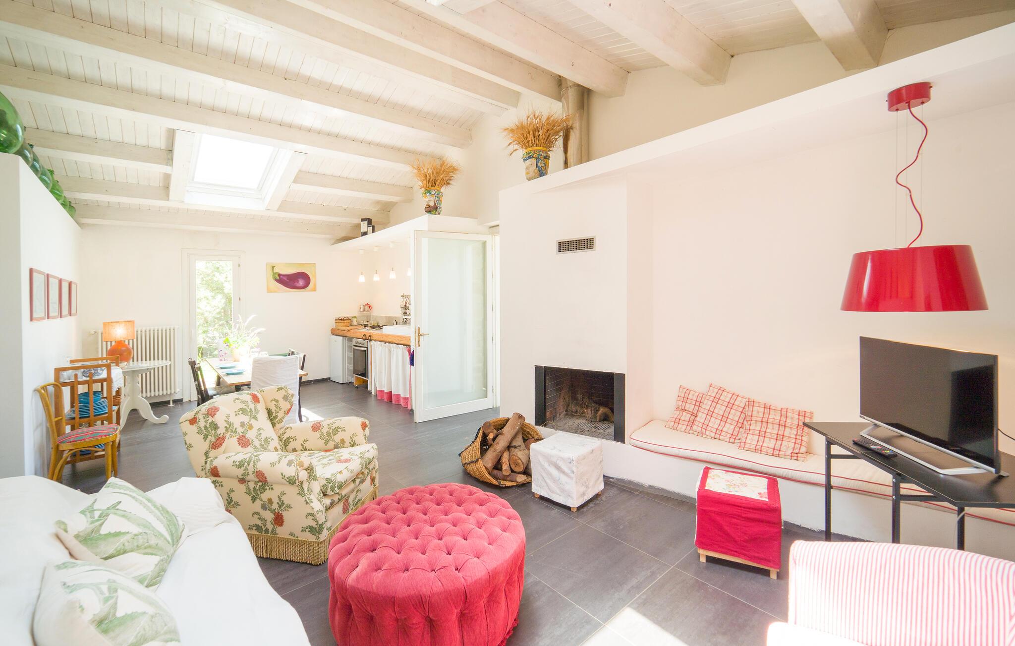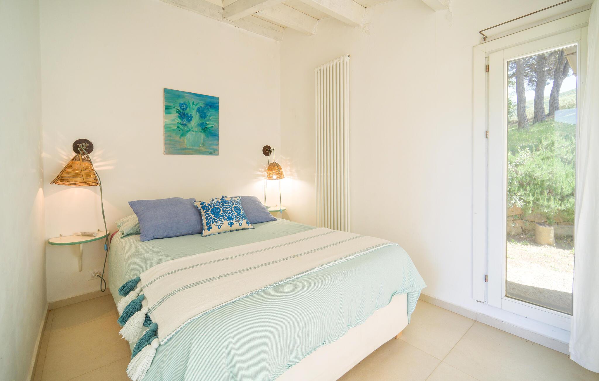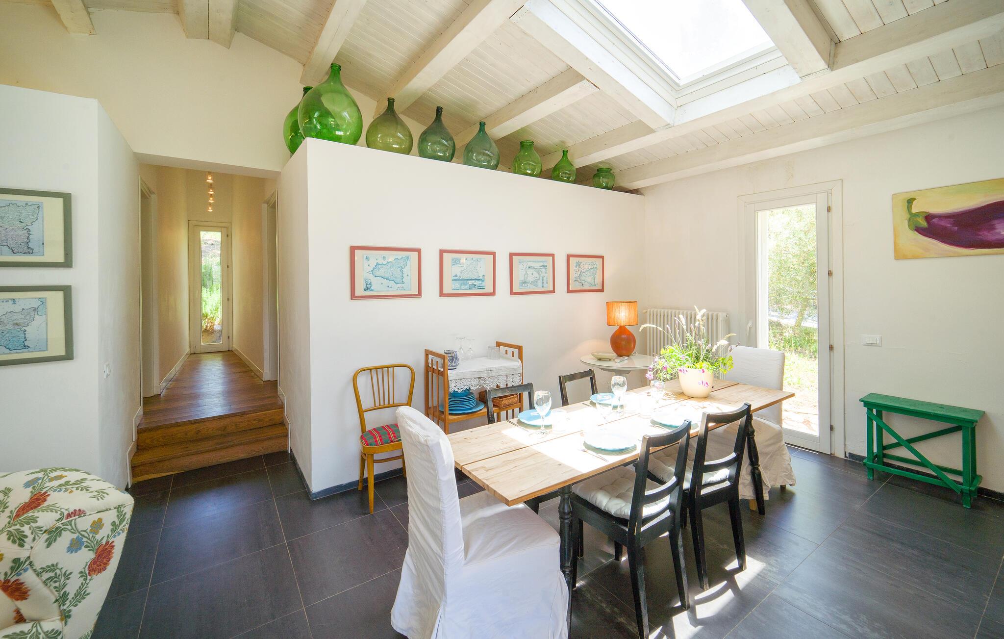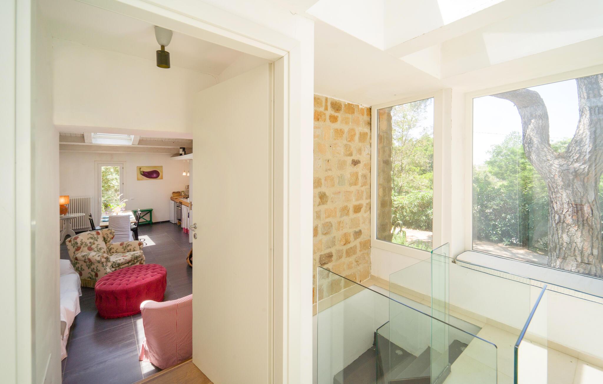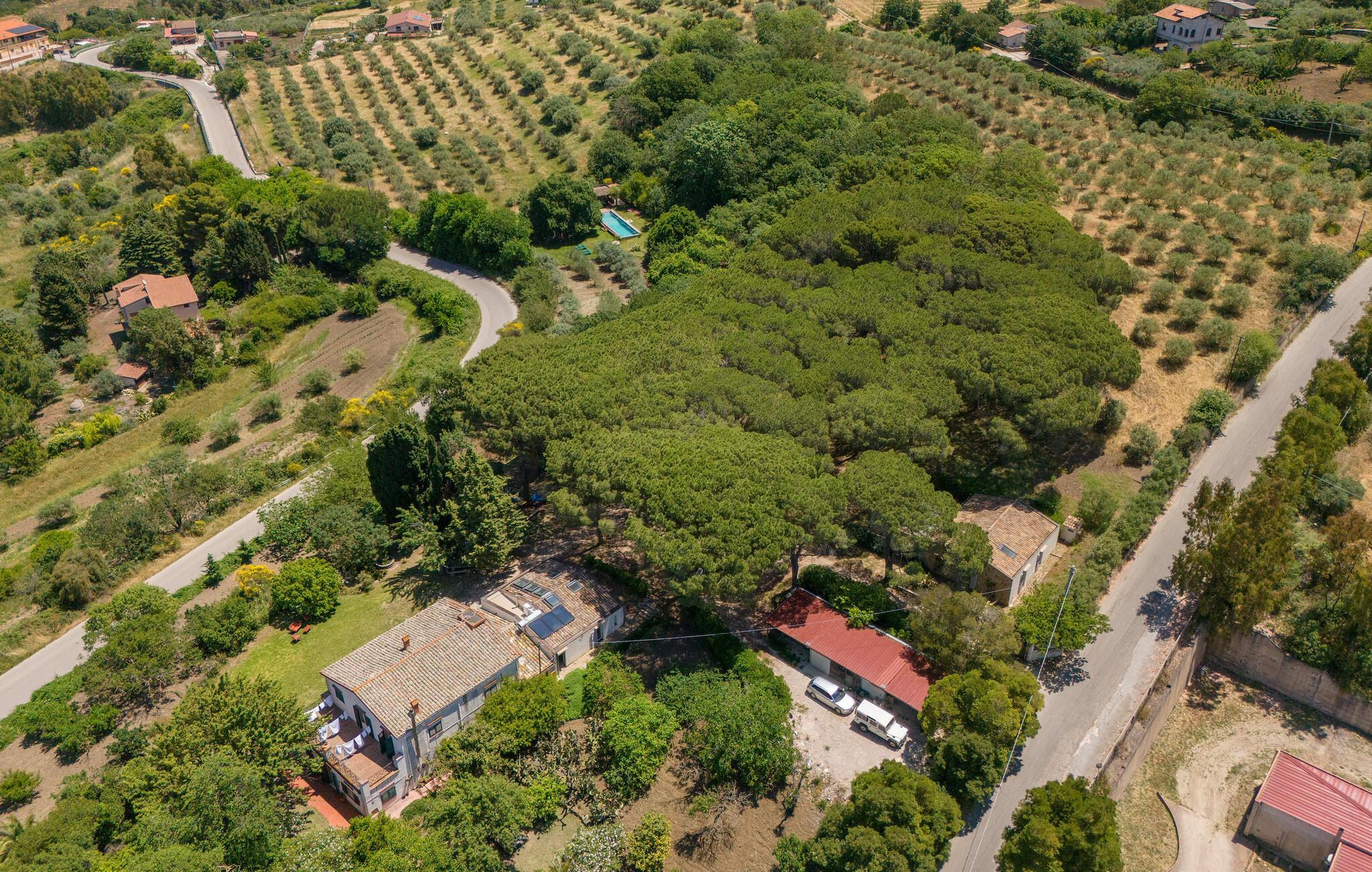 Bo midt på et gods i dette fritliggende og smukt indrettede feriehus, og se hvordan der presses bio-olivenolie og produceres hvedemel på godset. Et perfekt rejsemål hvis I ønsker jer en både aktiv og afslappet ferie. Nyde at hoppe i den fælles udendørs pool og at sidde i den varme sauna. I nærheden er der skønne vandre- og cykelstier. Der er kun otte km til naturbeskyttelsesområderne Bosco di Favara og Bosco Granza. Besøg også historiske byer som Alia og Roccapalumba, eller tag del i en af de mange former for undeholdning i naturen, som ejer arrangerer for både børn og voksne. Huset er i et plan med tre soveværelser, tre badeværelser og er køkken til ialt frem gæster. ISS325 og ISS327 ligger også i anlægget, som I kan leje sammen, hvis I er mange der skal på ferie sammen. 150 m fra huset er der trådløst internet på et fælles område.