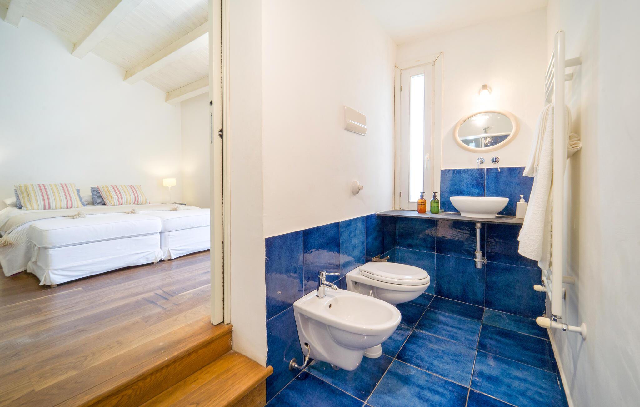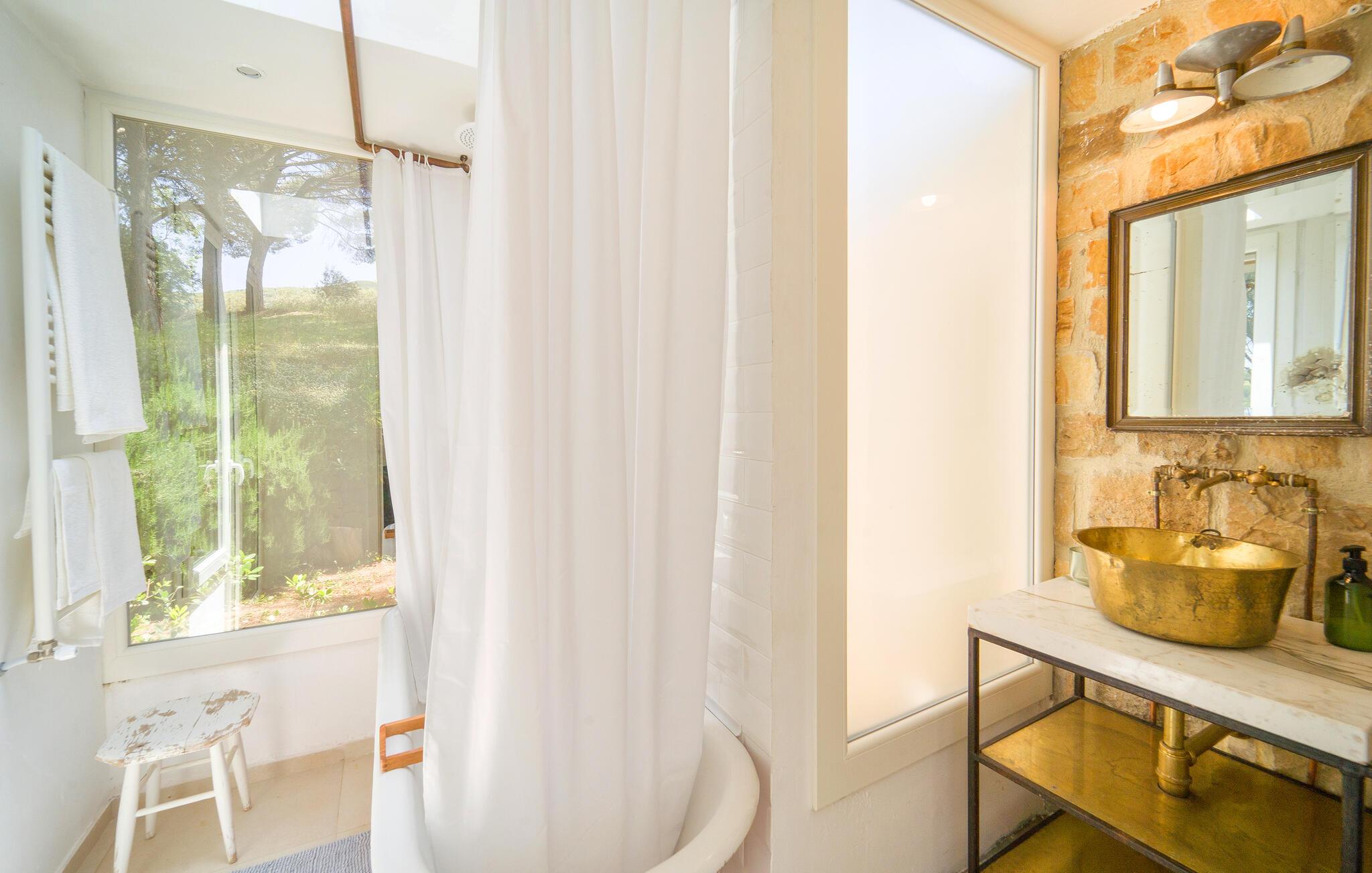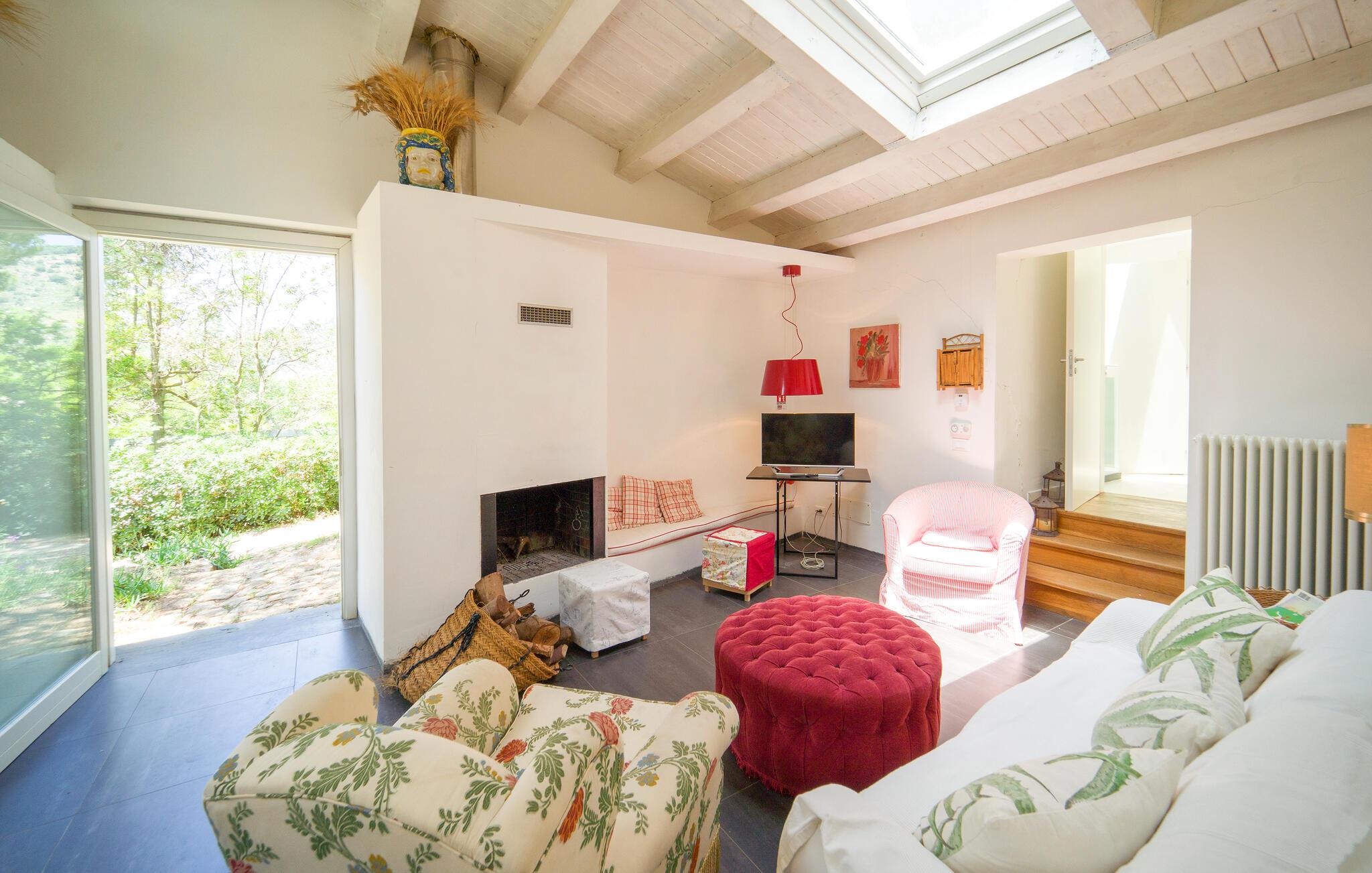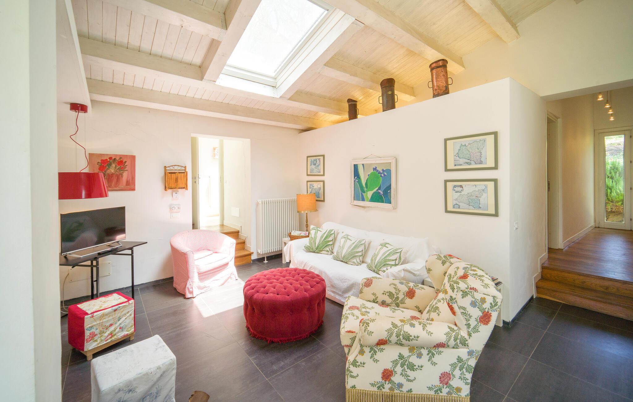 Bo midt på et gods i dette fritliggende og smukt indrettede feriehus, og se hvordan der presses bio-olivenolie og produceres hvedemel på godset. Et perfekt rejsemål hvis I ønsker jer en både aktiv og afslappet ferie. Nyde at hoppe i den fælles udendørs pool og at sidde i den varme sauna. I nærheden er der skønne vandre- og cykelstier. Der er kun otte km til naturbeskyttelsesområderne Bosco di Favara og Bosco Granza. Besøg også historiske byer som Alia og Roccapalumba, eller tag del i en af de mange former for undeholdning i naturen, som ejer arrangerer for både børn og voksne. Huset er i et plan med tre soveværelser, tre badeværelser og er køkken til ialt frem gæster. ISS325 og ISS327 ligger også i anlægget, som I kan leje sammen, hvis I er mange der skal på ferie sammen. 150 m fra huset er der trådløst internet på et fælles område.