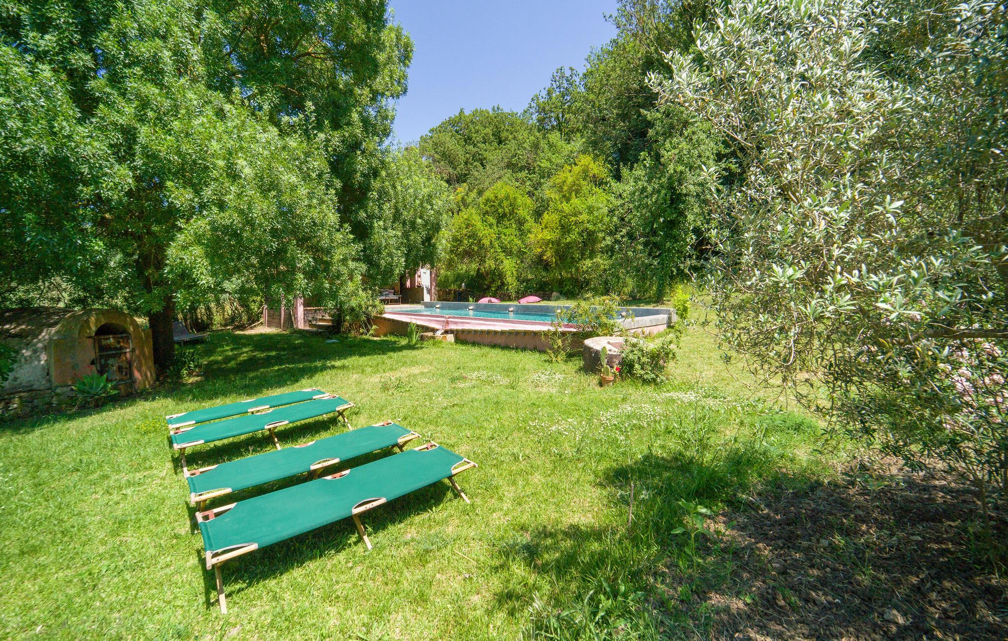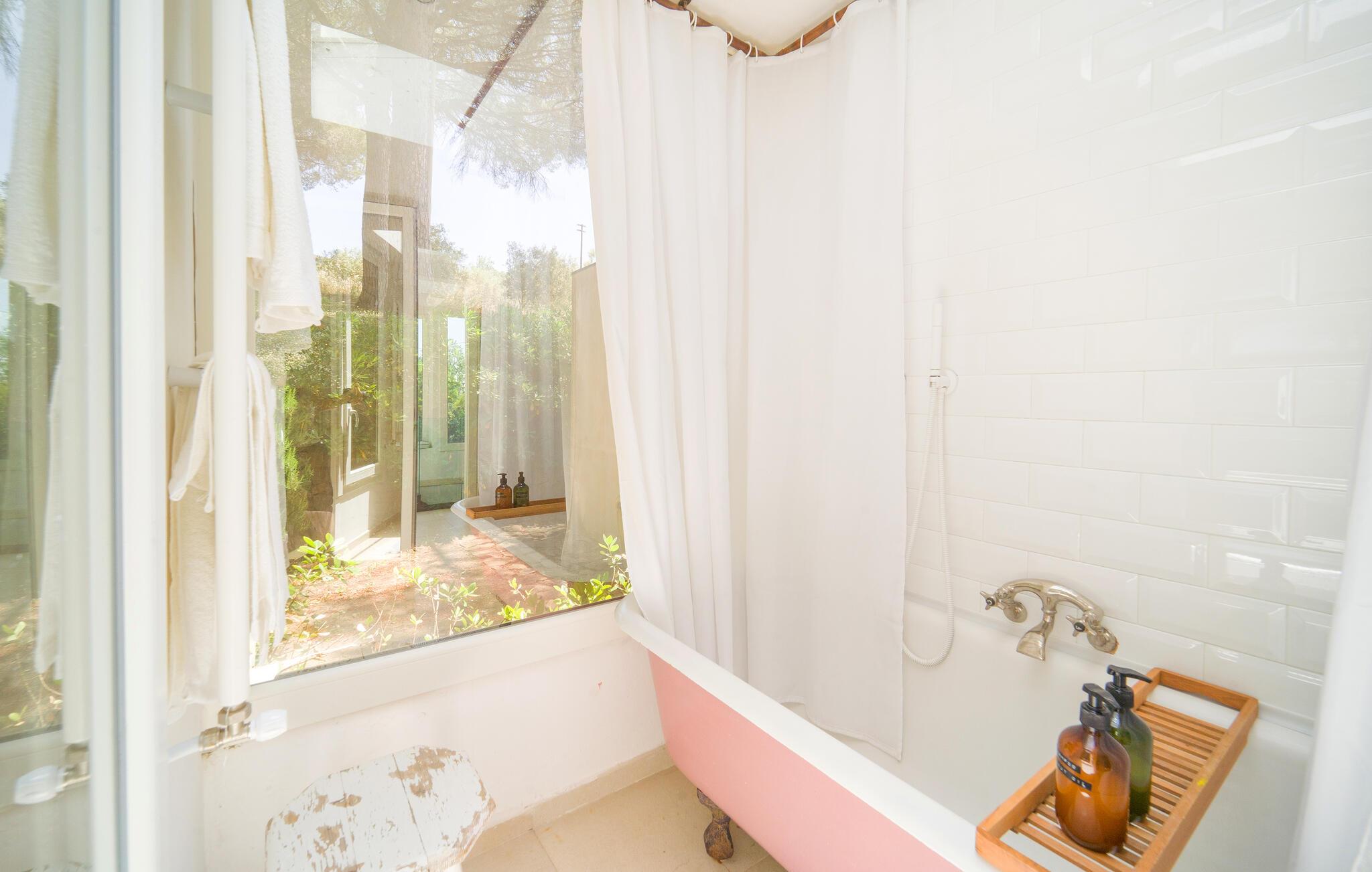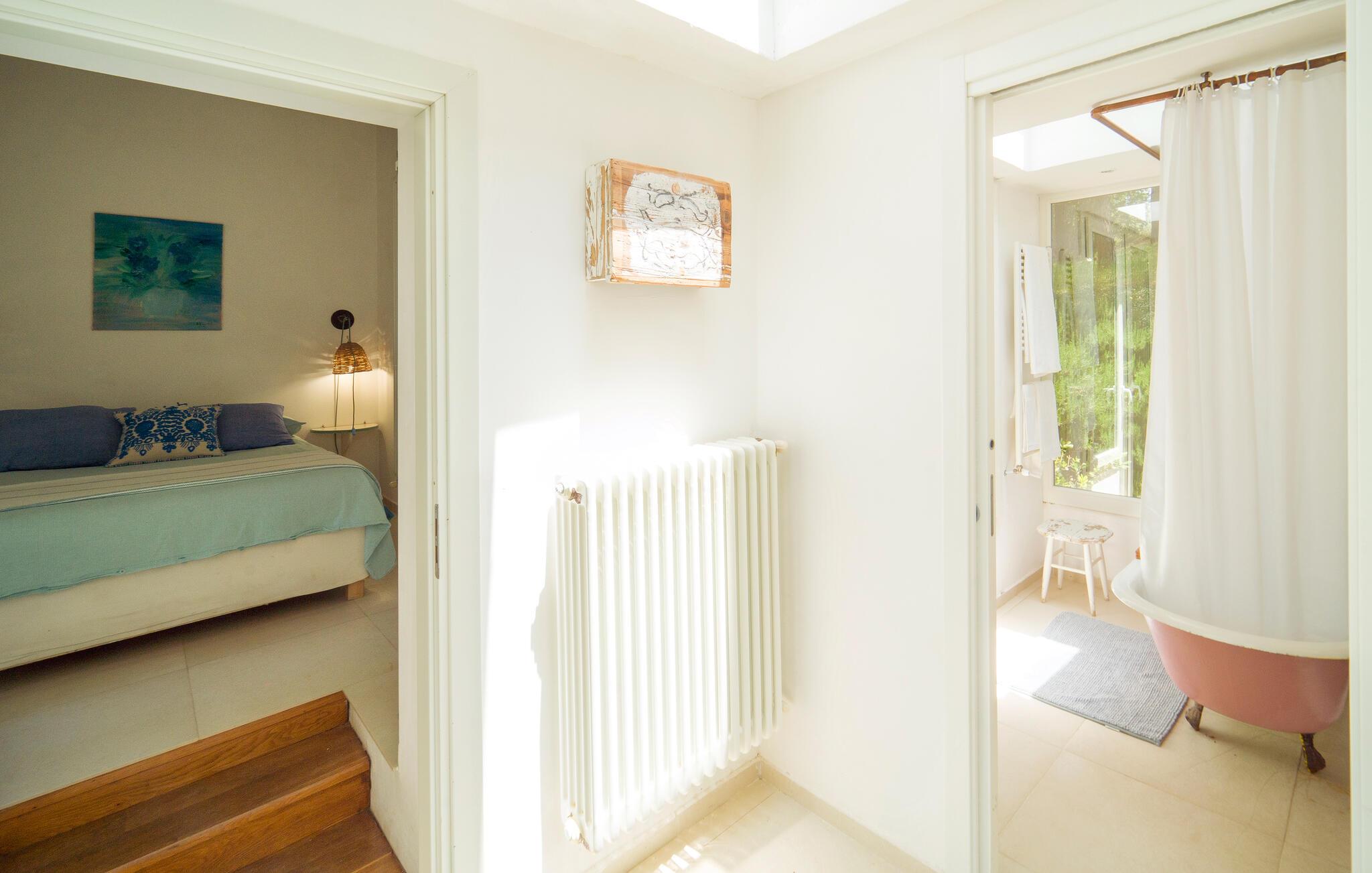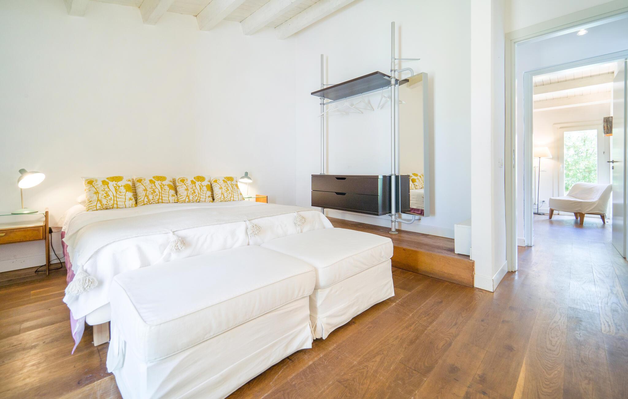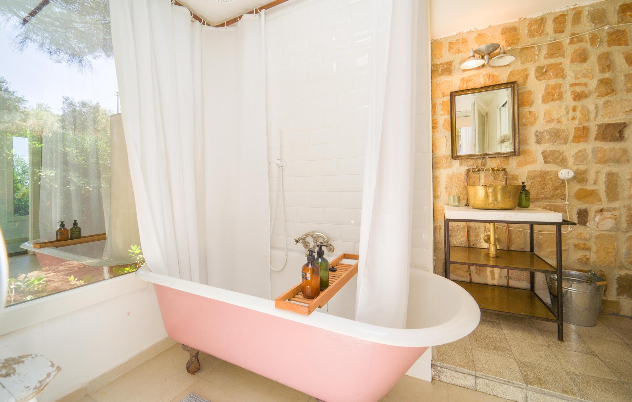 Bo midt på et gods i dette fritliggende og smukt indrettede feriehus, og se hvordan der presses bio-olivenolie og produceres hvedemel på godset. Et perfekt rejsemål hvis I ønsker jer en både aktiv og afslappet ferie. Nyde at hoppe i den fælles udendørs pool og at sidde i den varme sauna. I nærheden er der skønne vandre- og cykelstier. Der er kun otte km til naturbeskyttelsesområderne Bosco di Favara og Bosco Granza. Besøg også historiske byer som Alia og Roccapalumba, eller tag del i en af de mange former for undeholdning i naturen, som ejer arrangerer for både børn og voksne. Huset er i et plan med tre soveværelser, tre badeværelser og er køkken til ialt frem gæster. ISS325 og ISS327 ligger også i anlægget, som I kan leje sammen, hvis I er mange der skal på ferie sammen. 150 m fra huset er der trådløst internet på et fælles område.