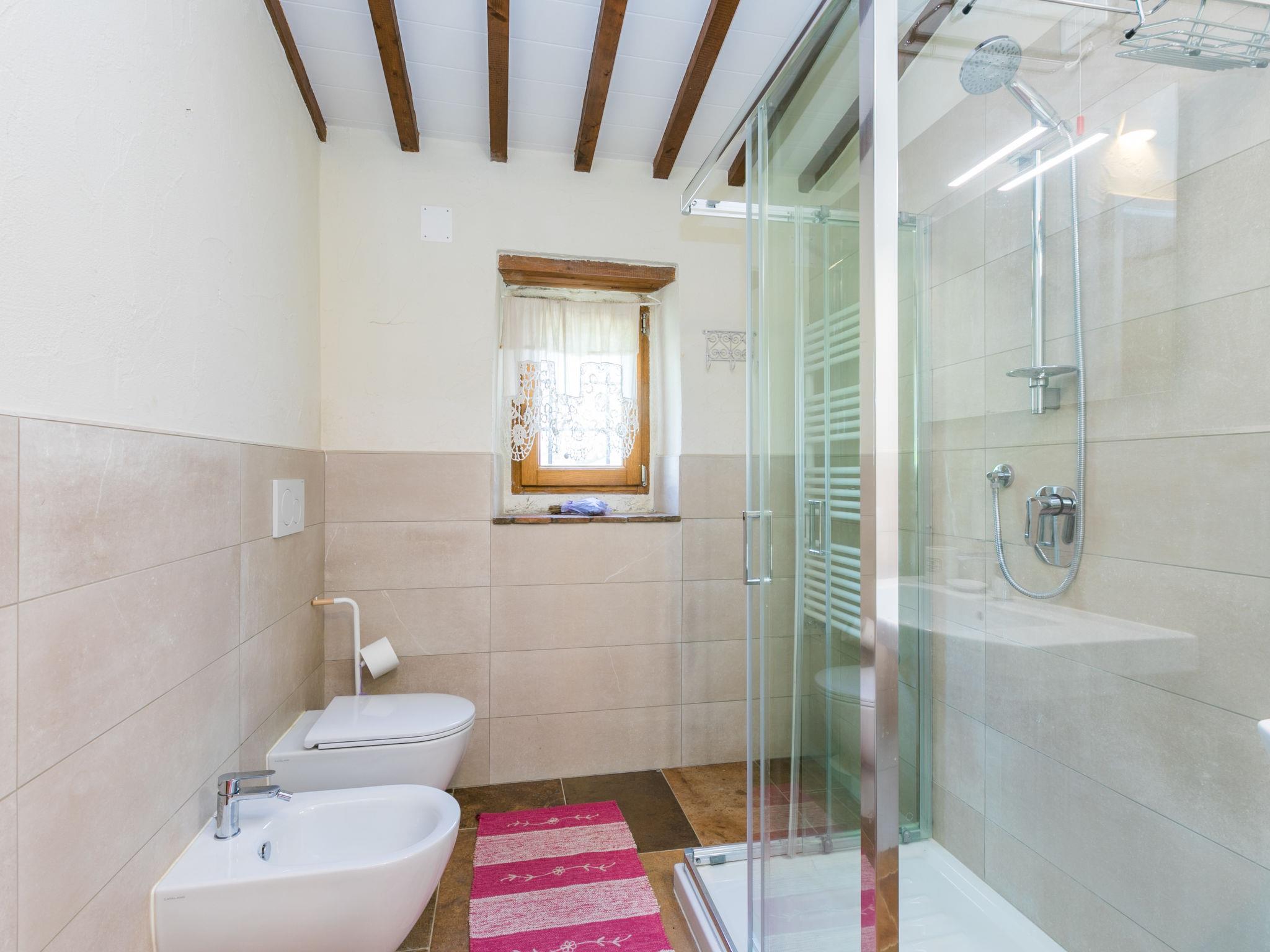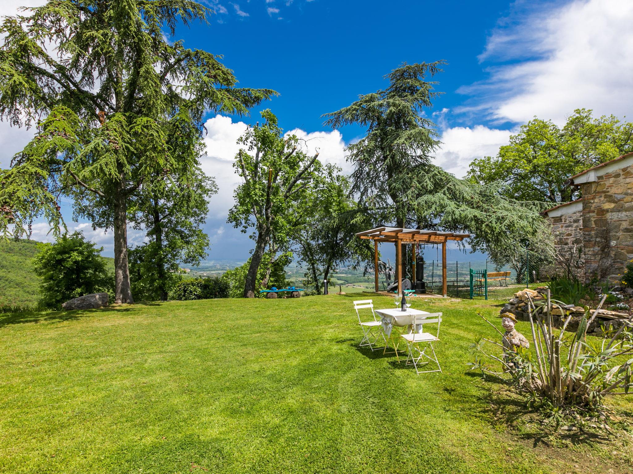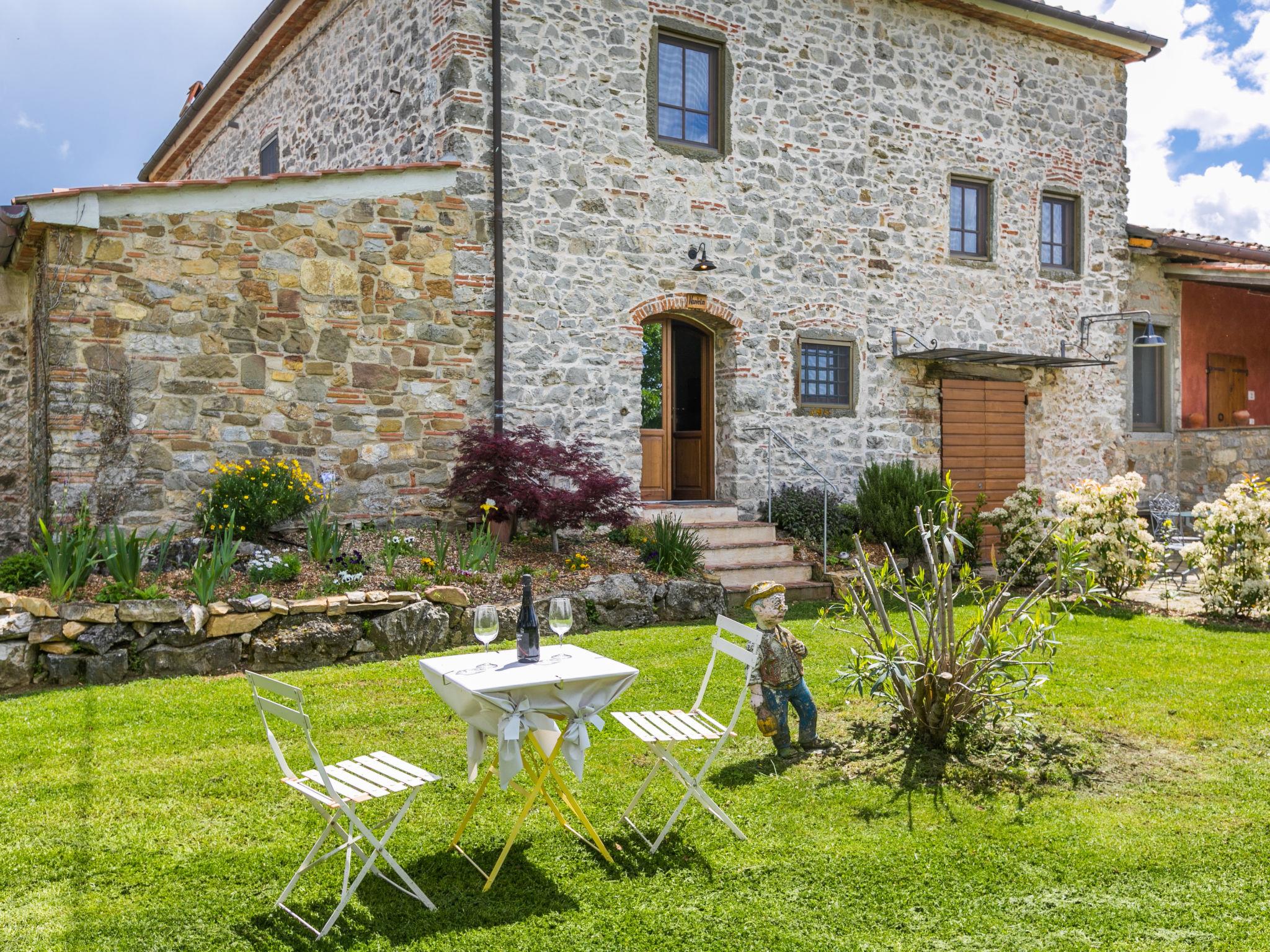 Very beautiful country house "Casa di Life", 450 m a.s.l., from the 16th century, renovated in 2012. In the hamlet Cennina 3.5 km from the centre of Ambra, 6 km from the centre of Bucine, in a sunny, elevated position on top of a hill, 300 m from the edge of the forest, in the countryside. For shared use: property 10'000 m2 (fenced), beautiful, well-kept terraced garden with trees, meadow, orchard, swimming pool (10 x 5 m, depth 150 cm, seasonal availability: 01.May. - 30.Sep.). Outdoor shower, terrace, garden furniture, pool maintenance by the owner/gardener. In the house: washing machine. Motor access (100 m via unmade road). Parking on the premises. E-charging station. Shop 3.5 km, grocery 3.5 km, supermarket 6 km, restaurant 3.5 km, bus stop 3.5 km, railway station "Bucine" 6 km, thermal baths "Rapolano Terme" 23 km. Nearby attractions: Siena 40 km, Arezzo 34 km, Cortona 55 km, Florence 62 km. Hiking paths: Corbezzoli (13 km) 100 m. Please note: car recommended. Baby equipment (included). Residence with electric gates. The owner lives in the same residence. The owner has a dog. All houses/apartments are individually designed/furnished. Outdoor dog pen.