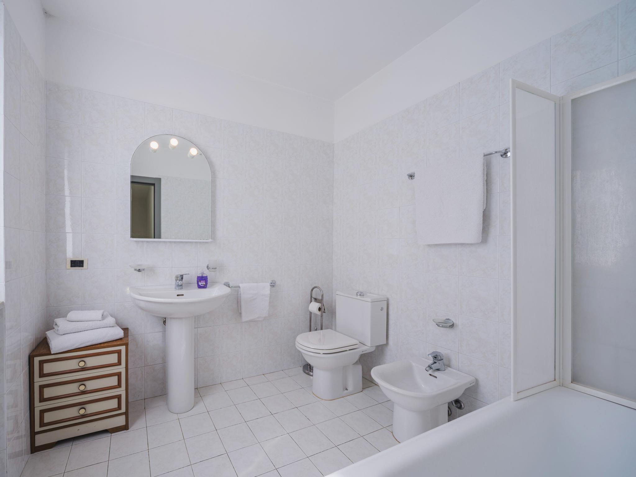 3-room terraced house 95 m2 on 2 levels. Living room with TV and DVD. Exit to the garden. Open kitchen (4 hot plates, oven, dishwasher, toaster, freezer). Sep. WC. Upper floor: 1 room with 2 beds. 1 room with 1 bed and 1 x 2 bunk beds. Exit to the balcony. Bath/bidet/WC. Heating. Heating available only from 01.11. to 31.03. Terrace roofed, garden. Terrace furniture. Facilities: washing machine, hair dryer. Internet (WiFi). Parking (fenced 1 car). Please note: non-smoking house. Maximum 1 pet/ dog allowed. Smoke alarm, fire extinguisher. IT011001C2NBLPPTDH