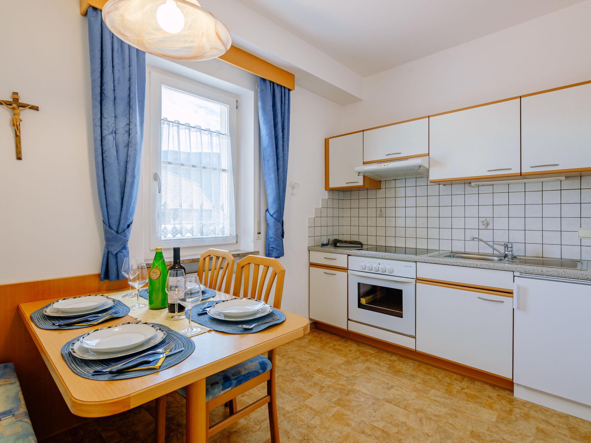 "Neuhaus", 2-room apartment 32 m2 on 2nd floor, east facing position. Bright, practical and cosy furnishings: 1 room with 1 double bed and 1 pull-out bed (1 pers.), shower/WC and satellite TV. Exit to the balcony. Kitchen-/living room (oven, 4 ceramic glass hob hotplates, toaster, kettle, freezer, electric coffee machine) with dining table. Gas heating. Balcony, east facing position. Balcony furniture. Marvellous panoramic view of the mountains and the valley. Facilities: safe, children's high chair, baby cot. Internet (WiFi, free). Please note: non-smokers only. No mandatory extra charges to be paid on-site except for local tax. Bedlinen, final cleaning and all energy costs are included. IT021002B5V7TF92FR