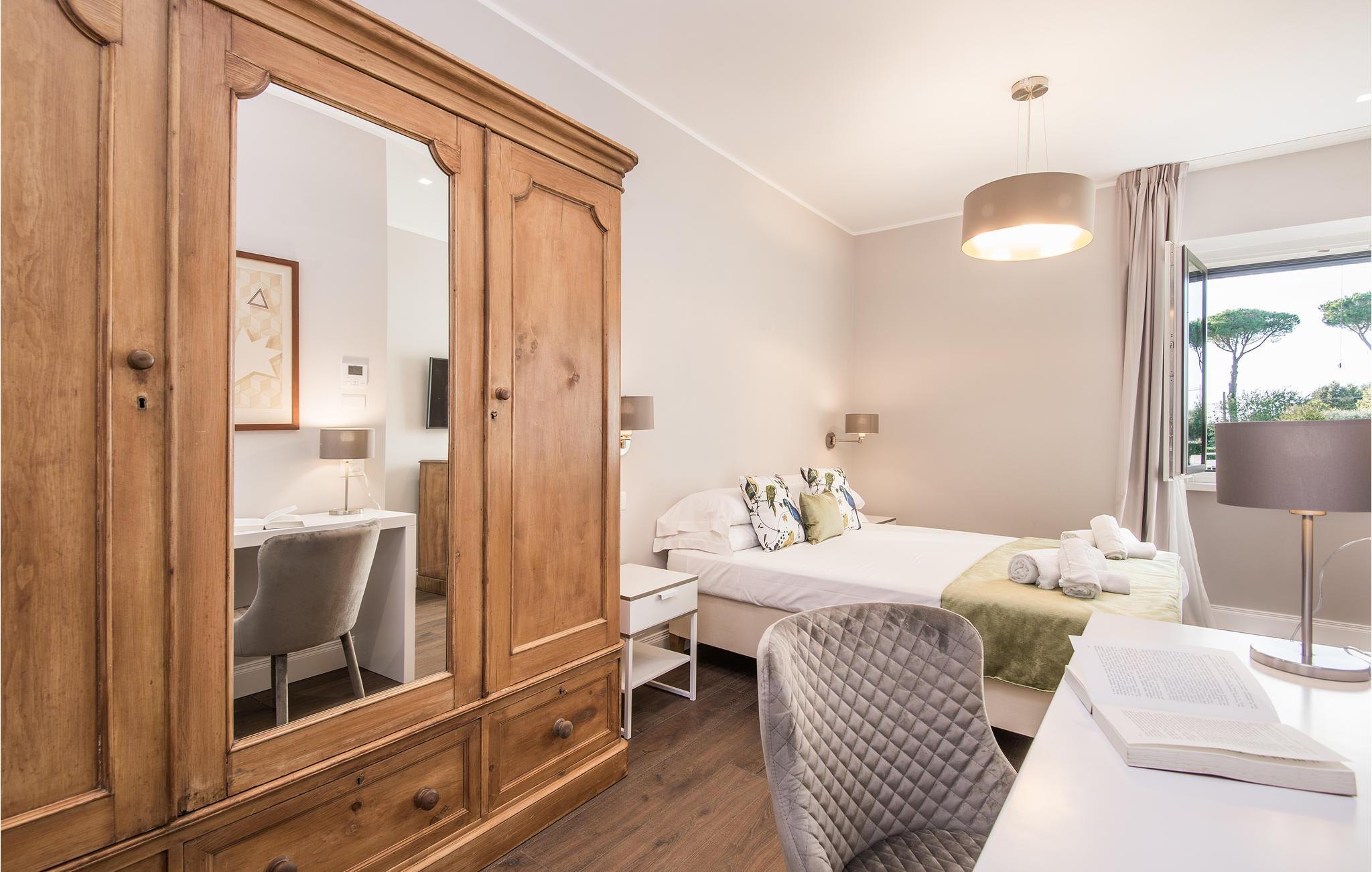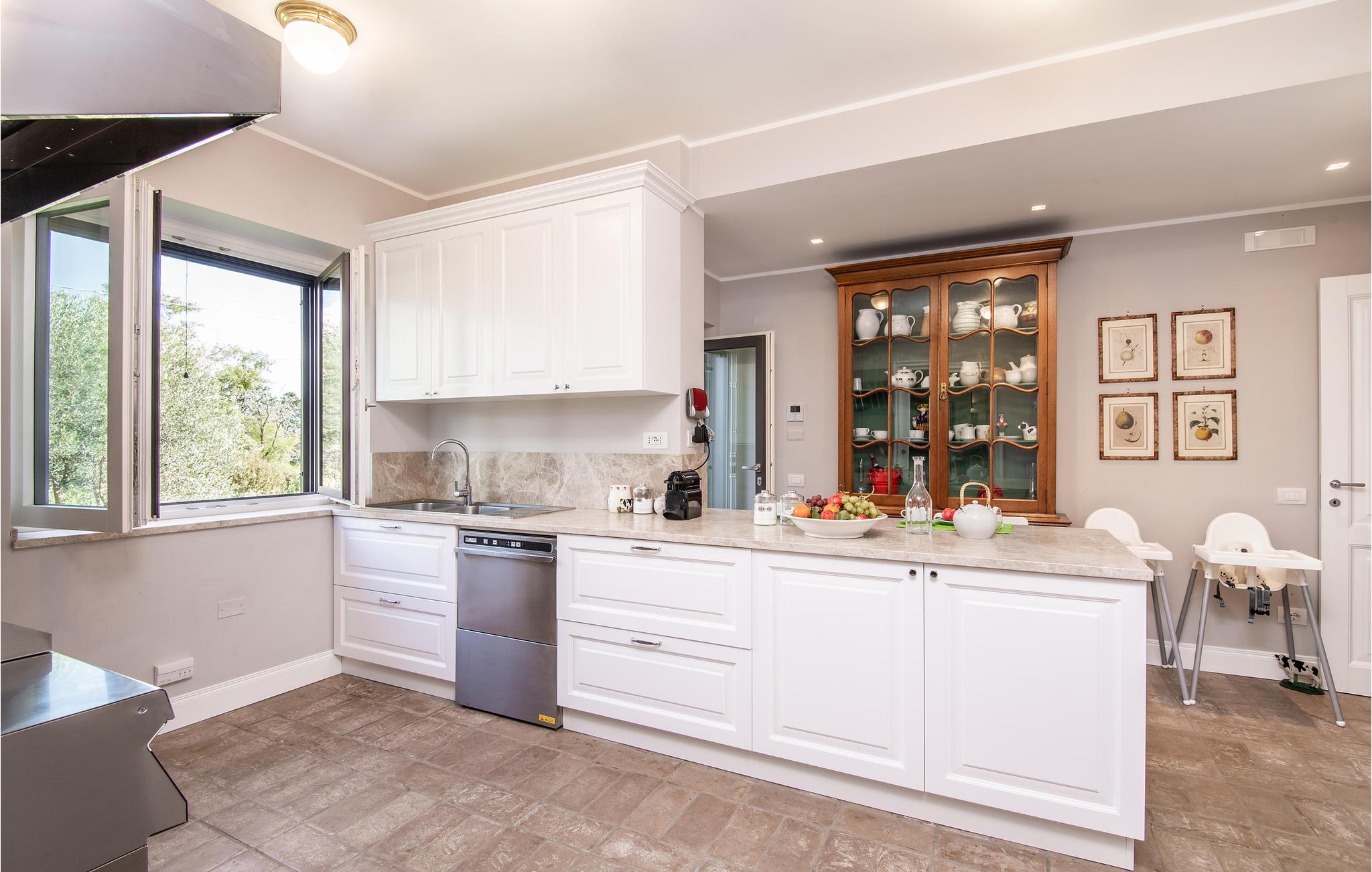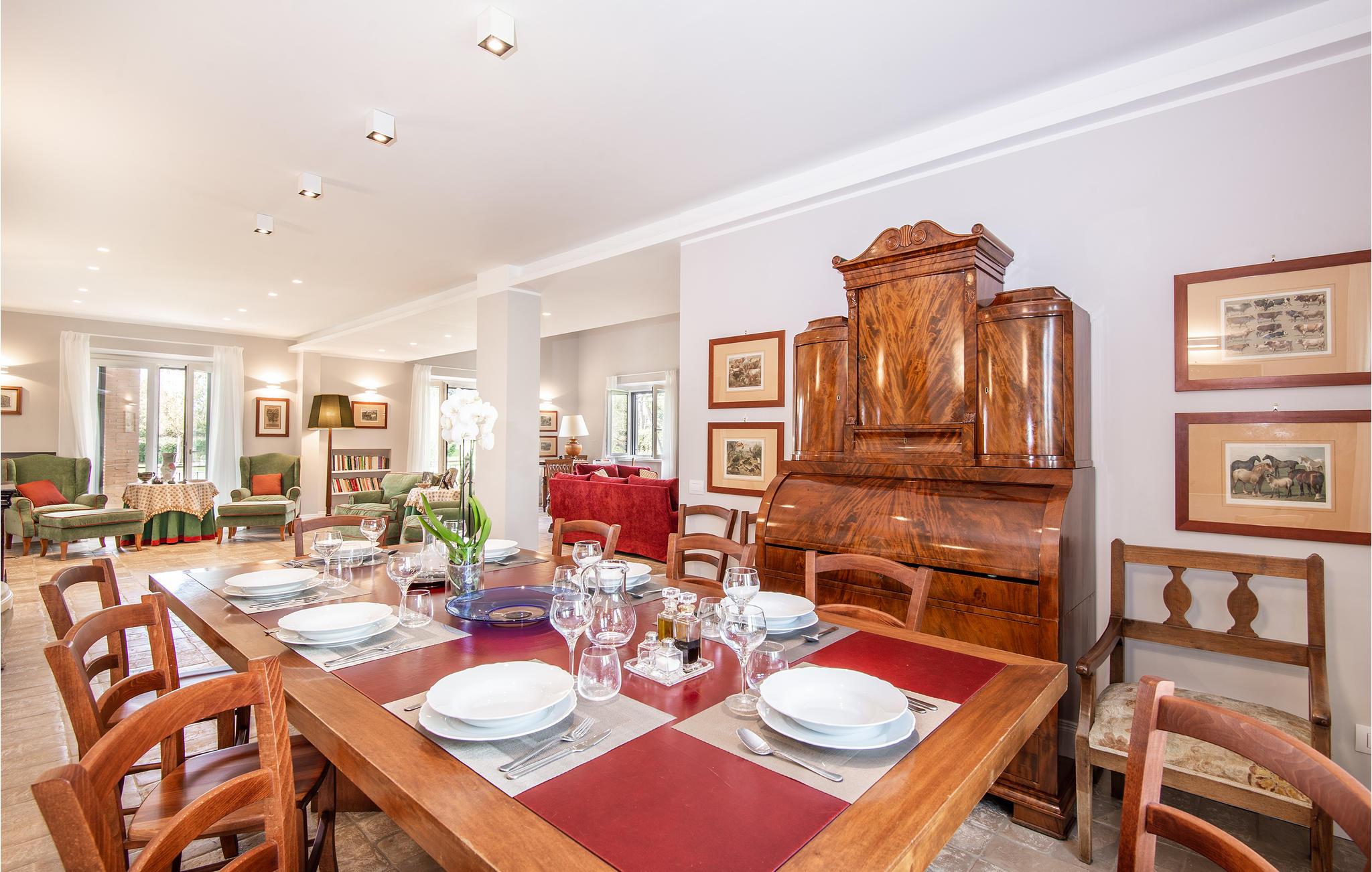 Rummelig og luksuriøs villa der ligger 8 km fra Bracciano-søen og 20 km fra Ladispolis sandstrande. I den private indhegnede park er der en saltvandspool, en multisportsbane (fodbold / tennisbane), en legeplads, bordtennis, en stor veranda med pejs og grill. Det elegante indre inkluderer et afslapningsrum med pejs, en lounge med smart-tv, et 6-personers whirlpool og fitness-hjørne og et professionelt køkken. I alle soveværelser er der smart-tv og adgang til eget badeværelse, og der er myggenet for alle vinduer. Ideel til en ferie med venner eller familie, og til jer der elsker havet eller søer. En 18-hullers golfbane 18 km, og Roms centrum 39 km. På grunden, omkring 200 m fra villaen (med separat indgang), ligger viceværtens hus, som sørger for ugentligt skift af linned (inkluderet i prisen).
