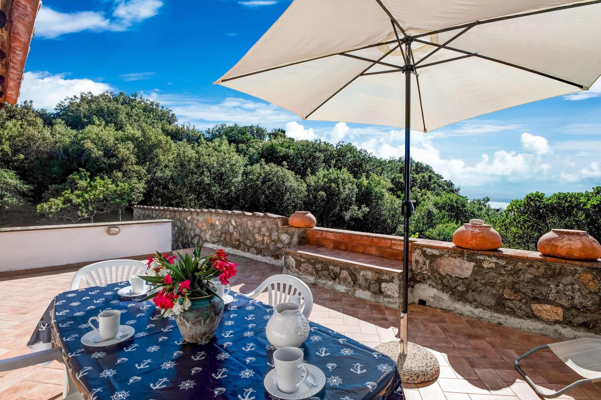 Denne fritliggende villa ligger i det fortryllende forbjerg Ansedonia, overfor Mount Argentario. Det er fuldt udstyret og ideelt til en afslappende familieferie Huset ligger på Toscanas sydkyst, kun 400 m fra havet. Fra villaen kan du gå til det smukke arkæologiske område Cosa med et lille museum. Der ligger talrige restauranter i en radius af 15 km, og det nærmeste supermarked ligger 8 km derfra. Tagliata Etrusca og Spacco della Regina er et besøg værd.Nyd det totale privatliv og den smukke havudsigt fra terrassen. Villaen er fordelt på 2 etager og udstyret med komfortable værelser, der er indrettet med omhu og smag. Aircondition giver køling på øverste etage og den hyggelige have er indrettet med flotte møbler.