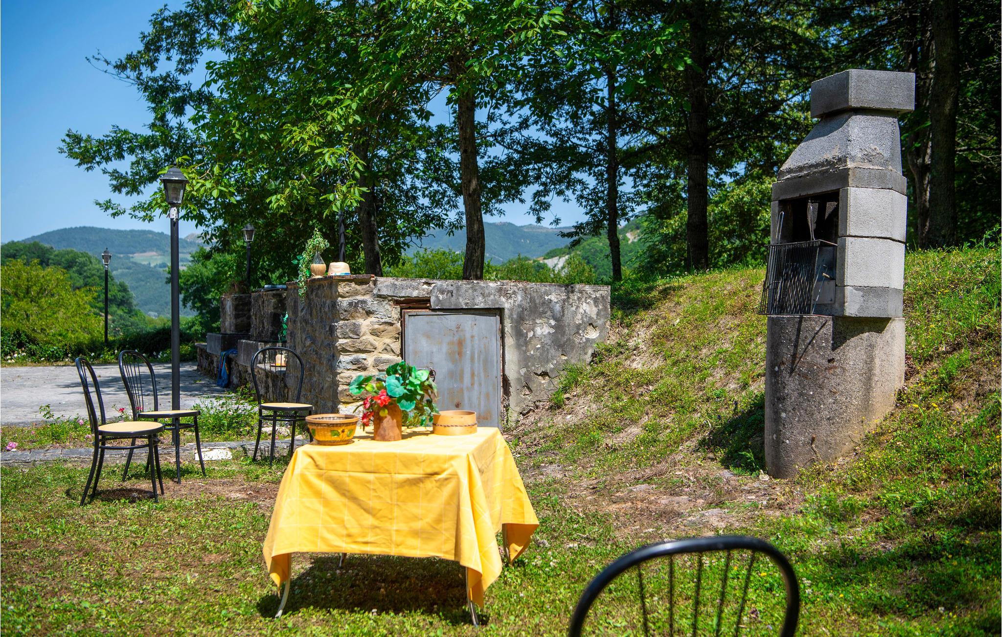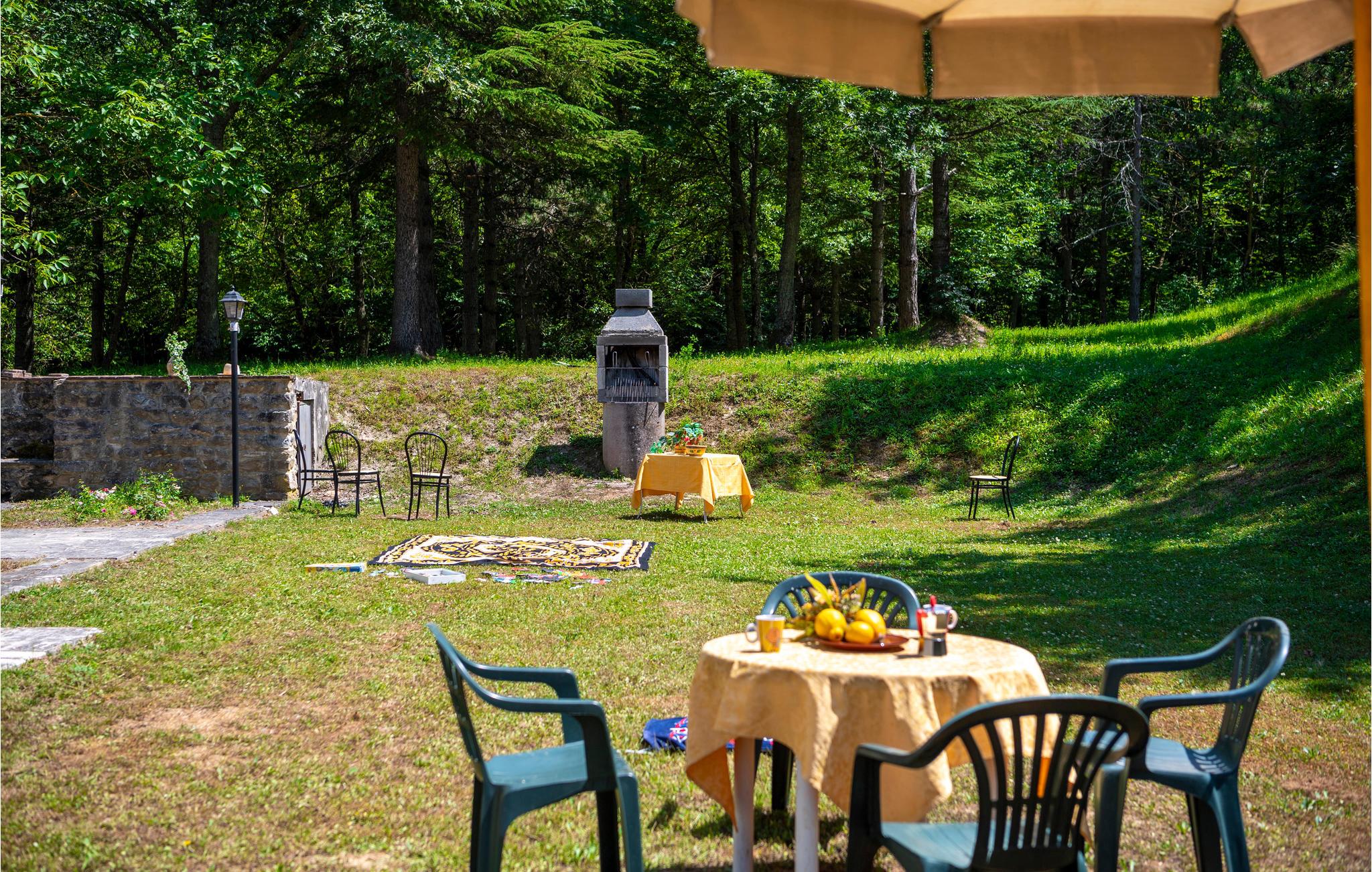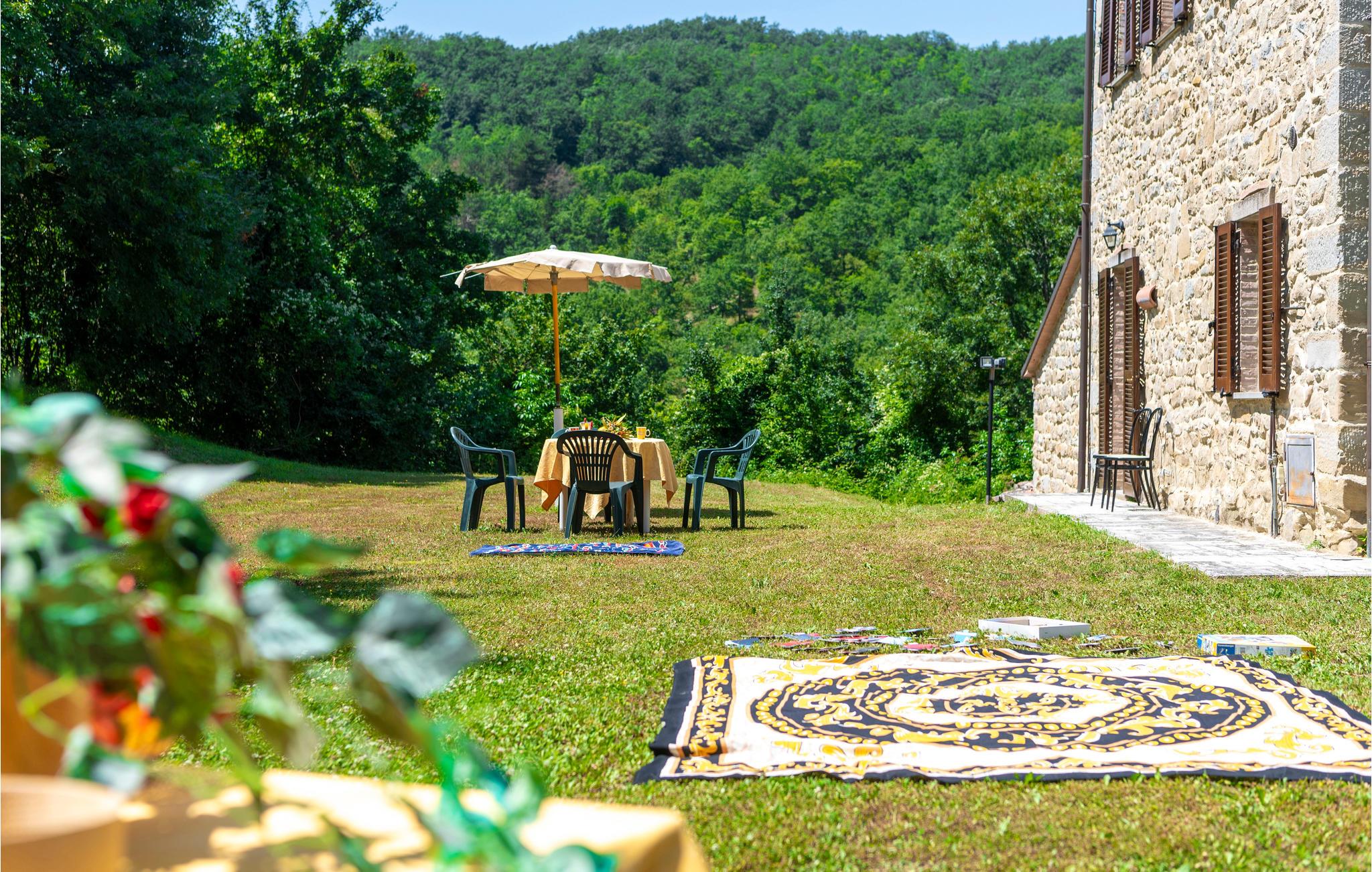 Denne ferielejlighed ligger på ejendommen Valguerriera, ca. 4 km fra Piobbico, i en dal i Apennin, det ideelle rejsemål til jer, hvis I ønsker jer en afslappende ferie i uberørt natur. Ejendommen består af herskabshuset og tre landhuse, de generøse udendørsområder og den dejlige, fælles pool på 17 x 10 m med undervandsmassage. I landhusene er der i alt 11 indbydende indrettede ferielejligheder. Lejligheden byder på en uafhængig indgang i eget udendørsområde med bord, stole og parasol, hvor I kan slappe af og spise jeres måltider i det fri. Grill og vaskemaskine til fælles brug. Parkering på grunden. En barneseng er til rådighed. Her bor I i Marche, ved grænsen til regionerne Toscana og Umbrien, i nærheden af Piobbico (Pesaro og Urbino), i en rolig dal ved navn Candigliano, en af de dejligste og mest oprindelige dale i baglandet af Pesaro, der byder på mildt klima og hvorfra I nyder en vidunderlig udsigt til Apennin. I omgivelserne venter der kunst- og renæssancebyer som Urbino, UNESCO-verdenskulturarv, fortryllende middelalderlandsbyer som Piobbico, Apecchio, Sant’Angelo in Vado og Acqualagna, kendt for trøflerne, samt Urbania, Cagli, San Marino, Gradara og San Leo. Ejendommens beliggenhed er også fordelagtig til lidt længere dagsture som til Gubbio, Assisi, Perugia, Città di Castello, Arezzo, San Sepolcro, Loreto, Florenz og Siena, der alle rummer stort kunsthistorisk relevans, eller til San Marino, til borgen af Gradara, grotterne af Frasassi eller til Furlopasset. Afstande: 4 km Piobbico (dagligvarer og andre indkøb, bank, apotek, læge), 30 km Urbino, 55 km Fano og strandene langs Adriaterhavet, som I når på omkring en times kørsel. 6 km til wellnesscenter og 10 km til ridebane. Mulighed for guidede ture.