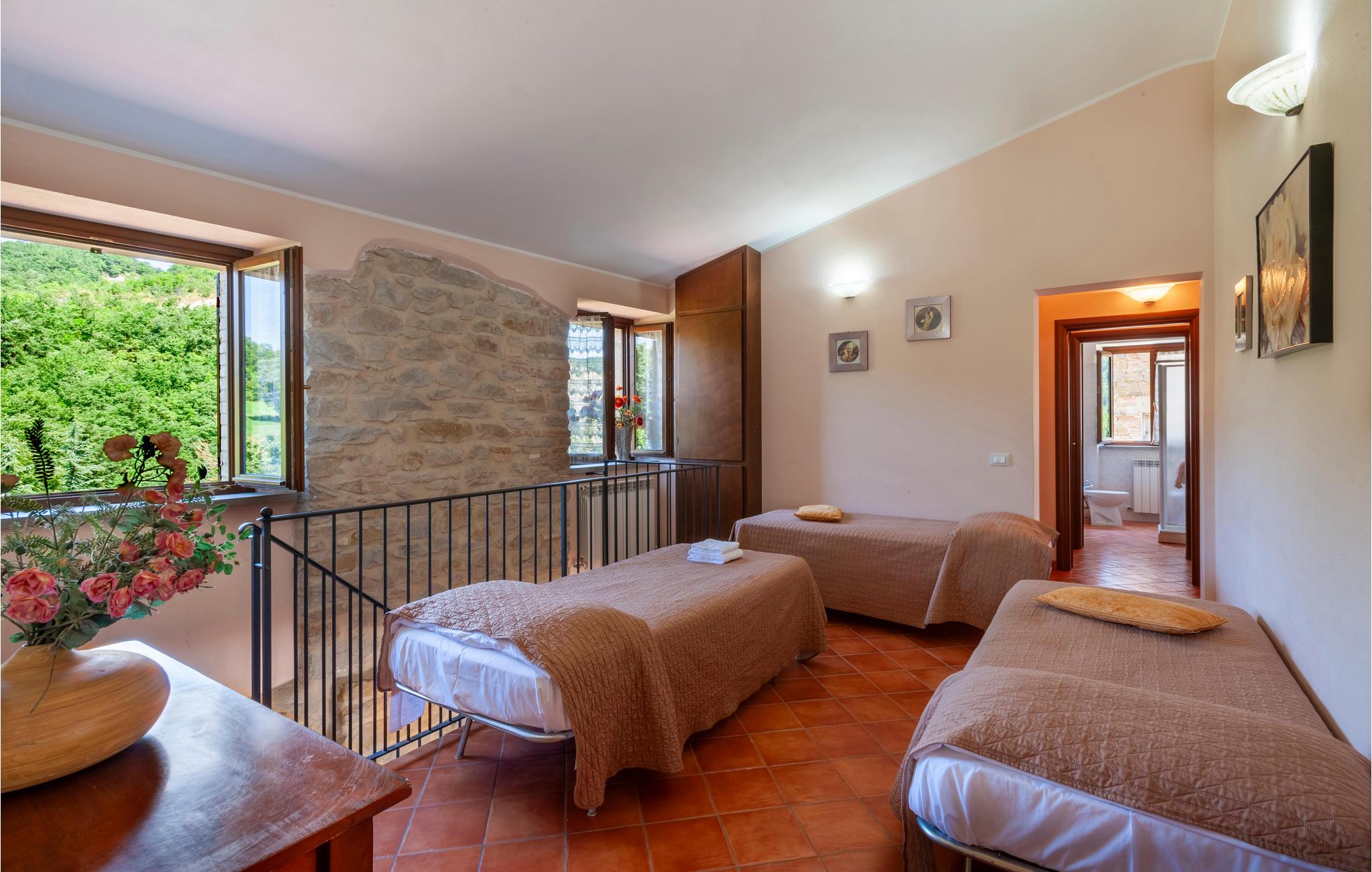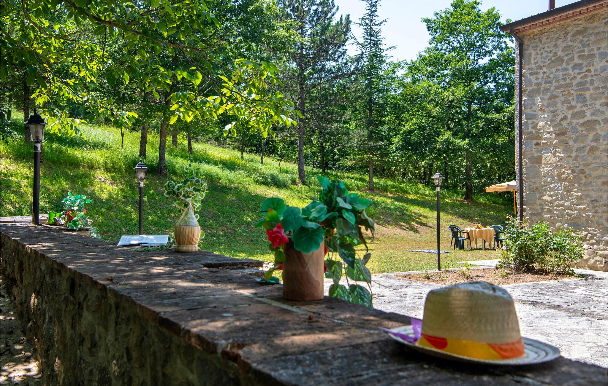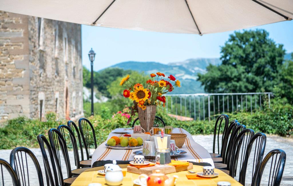 Denne ferielejlighed ligger på ejendommen Valguerriera, ca. 4 km fra Piobbico, i en dal i Apennin, det ideelle rejsemål til jer, hvis I ønsker jer en afslappende ferie i uberørt natur. Ejendommen består af herskabshuset og tre landhuse, de generøse udendørsområder og den dejlige, fælles pool på 17 x 10 m med undervandsmassage. I landhusene er der i alt 11 indbydende indrettede ferielejligheder. Lejligheden byder på en uafhængig indgang i eget udendørsområde med bord, stole og parasol, hvor I kan slappe af og spise jeres måltider i det fri. Grill og vaskemaskine til fælles brug. Parkering på grunden. En barneseng er til rådighed. Her bor I i Marche, ved grænsen til regionerne Toscana og Umbrien, i nærheden af Piobbico (Pesaro og Urbino), i en rolig dal ved navn Candigliano, en af de dejligste og mest oprindelige dale i baglandet af Pesaro, der byder på mildt klima og hvorfra I nyder en vidunderlig udsigt til Apennin. I omgivelserne venter der kunst- og renæssancebyer som Urbino, UNESCO-verdenskulturarv, fortryllende middelalderlandsbyer som Piobbico, Apecchio, Sant’Angelo in Vado og Acqualagna, kendt for trøflerne, samt Urbania, Cagli, San Marino, Gradara og San Leo. Ejendommens beliggenhed er også fordelagtig til lidt længere dagsture som til Gubbio, Assisi, Perugia, Città di Castello, Arezzo, San Sepolcro, Loreto, Florenz og Siena, der alle rummer stort kunsthistorisk relevans, eller til San Marino, til borgen af Gradara, grotterne af Frasassi eller til Furlopasset. Afstande: 4 km Piobbico (dagligvarer og andre indkøb, bank, apotek, læge), 30 km Urbino, 55 km Fano og strandene langs Adriaterhavet, som I når på omkring en times kørsel. 6 km til wellnesscenter og 10 km til ridebane. Mulighed for guidede ture.