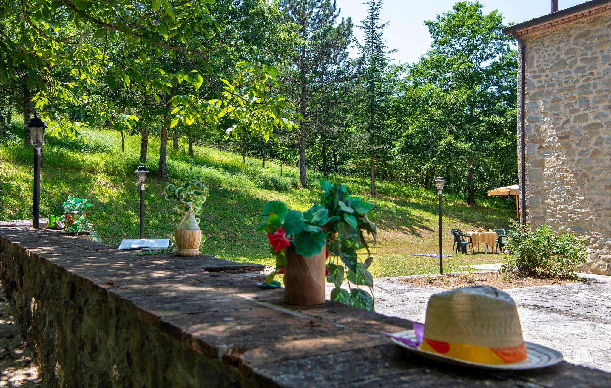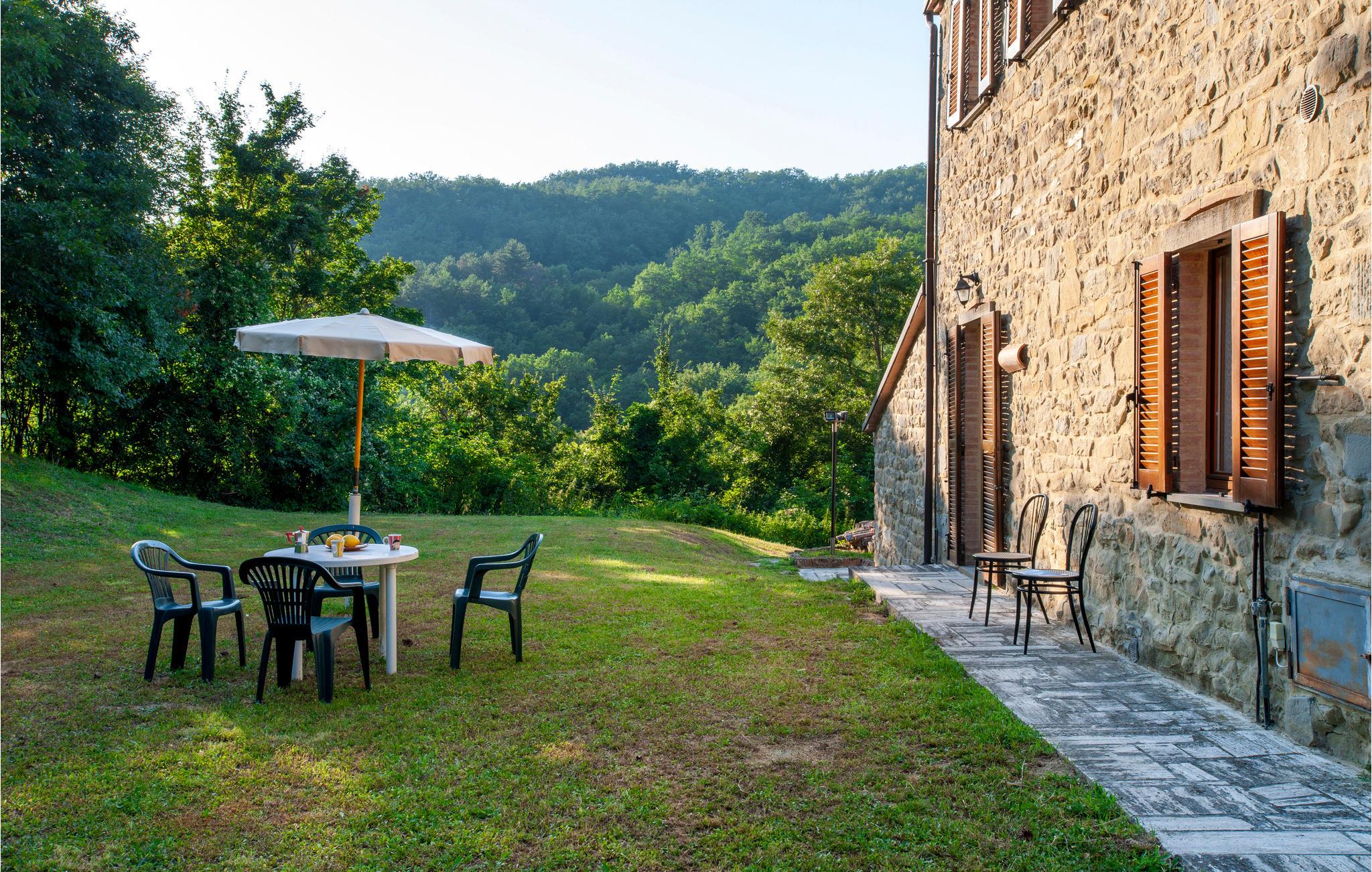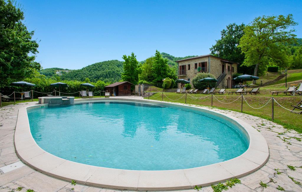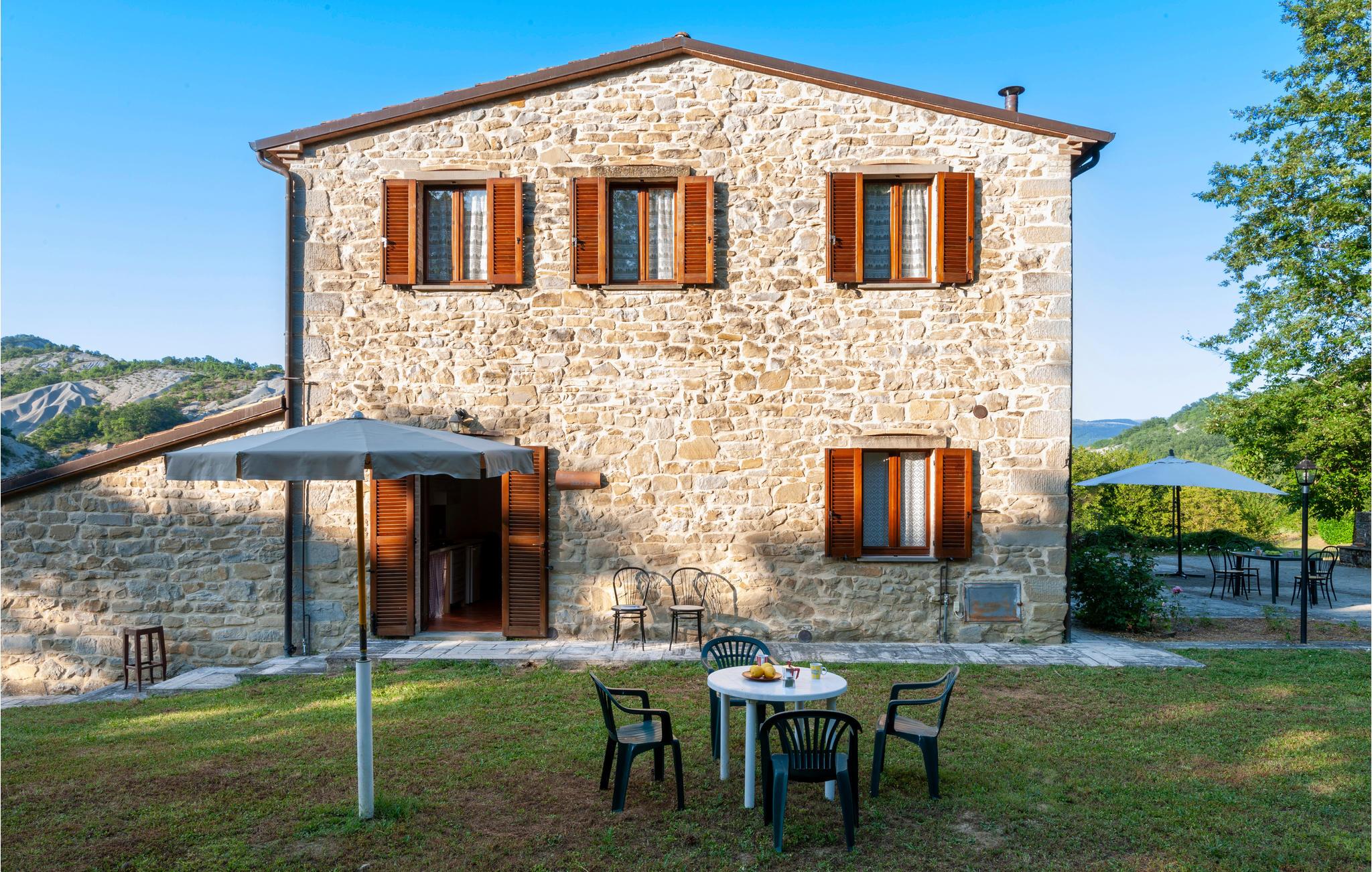 Denne ferielejlighed ligger på ejendommen Valguerriera, ca. 4 km fra Piobbico, i en dal i Apennin, det ideelle rejsemål til jer, hvis I ønsker jer en afslappende ferie i uberørt natur. Ejendommen består af herskabshuset og tre landhuse, de generøse udendørsområder og den dejlige, fælles pool på 17 x 10 m med undervandsmassage. I landhusene er der i alt 11 indbydende indrettede ferielejligheder. Lejligheden byder på en uafhængig indgang i eget udendørsområde med bord, stole og parasol, hvor I kan slappe af og spise jeres måltider i det fri. Grill og vaskemaskine til fælles brug. Parkering på grunden. En barneseng er til rådighed. Her bor I i Marche, ved grænsen til regionerne Toscana og Umbrien, i nærheden af Piobbico (Pesaro og Urbino), i en rolig dal ved navn Candigliano, en af de dejligste og mest oprindelige dale i baglandet af Pesaro, der byder på mildt klima og hvorfra I nyder en vidunderlig udsigt til Apennin. I omgivelserne venter der kunst- og renæssancebyer som Urbino, UNESCO-verdenskulturarv, fortryllende middelalderlandsbyer som Piobbico, Apecchio, Sant’Angelo in Vado og Acqualagna, kendt for trøflerne, samt Urbania, Cagli, San Marino, Gradara og San Leo. Ejendommens beliggenhed er også fordelagtig til lidt længere dagsture som til Gubbio, Assisi, Perugia, Città di Castello, Arezzo, San Sepolcro, Loreto, Florenz og Siena, der alle rummer stort kunsthistorisk relevans, eller til San Marino, til borgen af Gradara, grotterne af Frasassi eller til Furlopasset. Afstande: 4 km Piobbico (dagligvarer og andre indkøb, bank, apotek, læge), 30 km Urbino, 55 km Fano og strandene langs Adriaterhavet, som I når på omkring en times kørsel. 6 km til wellnesscenter og 10 km til ridebane. Mulighed for guidede ture.