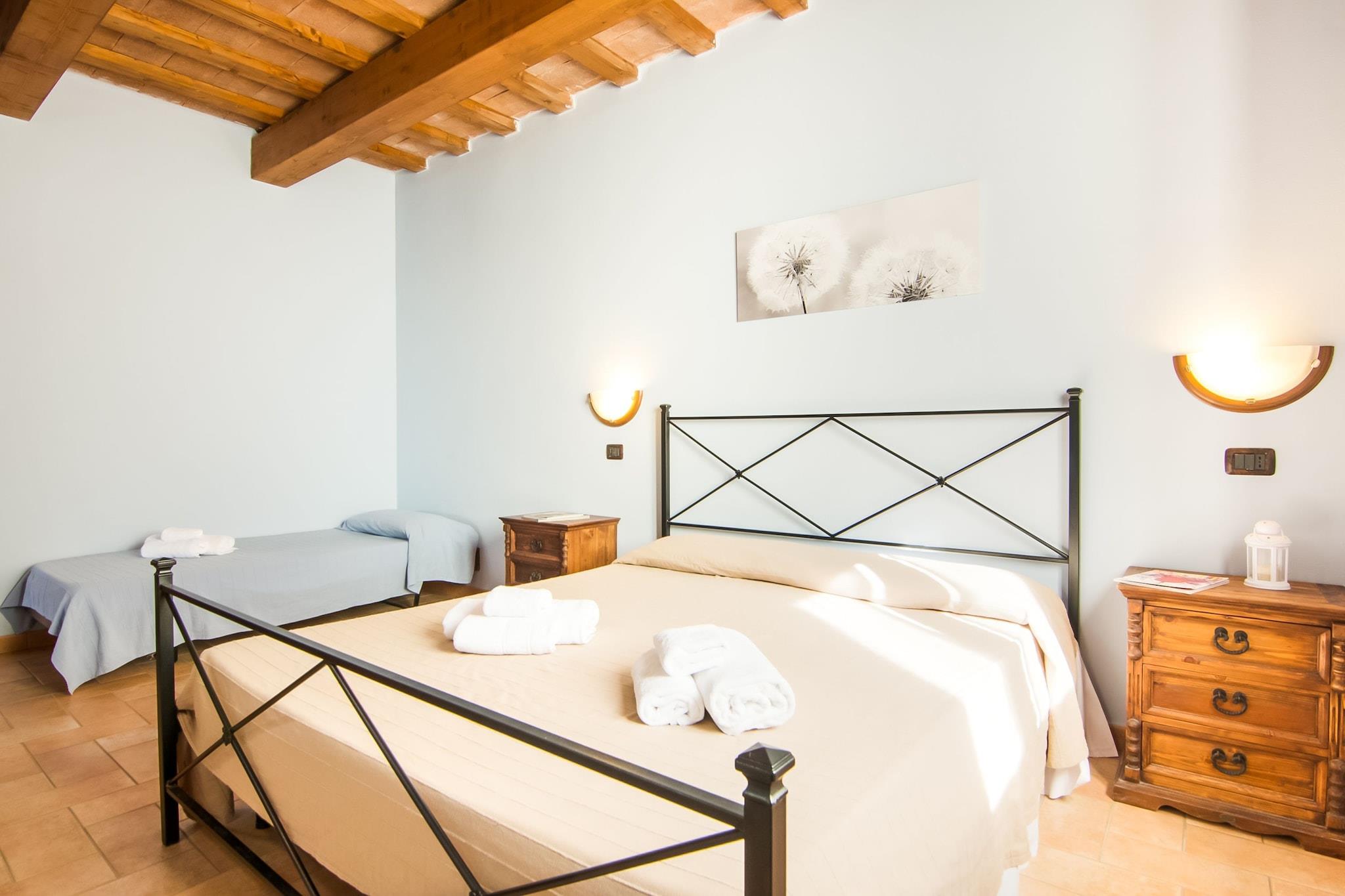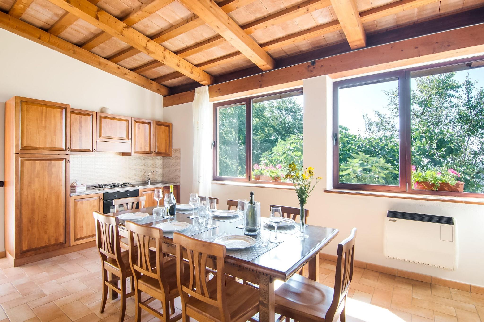 Denne landlige agriturismo med pool og jacuzzi er 880 meter over havets overflade i Appenninerne nær Monte Nerone og Catria. Der er i alt 6 lejligheder med rustik og landlig indretning. Fra den levende køkken i Tartufo lejlighed har du en smuk udsigt over omgivelserne. Swimmingpoolen kan dækkes om forår og efterår, så det er også ideelt at tage en dukkert i swimmingpoolen i maj og september. På grund af beliggenheden er temperaturen meget behagelig i de varme sommermåneder. Der er en fælles grill til grillning af kød og grøntsager og på terrassen kan du nyde aftensmad med et glas lokal vin. Mountainbikes er tilgængelige for gæster i agriturismo . Området er meget velegnet, og der er mange grusveje til et eventyr cykeltur. Det omkringliggende område består af skove, enger og bjerge. Fra agriturismo kan du besøge forskellige byer, herunder Urbino, Gubbio og Città di Castello, men også en fridag fra havet.