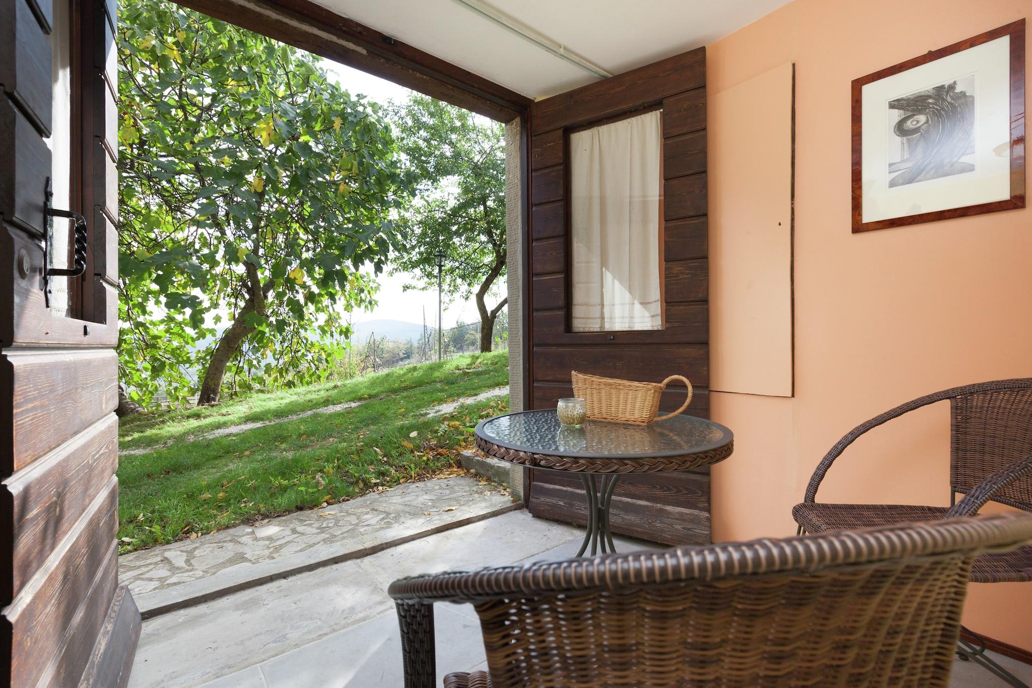 Denne dejlige bondegård har plads til 4 gæster komfortabelt. Beliggende i Apecchio, det kommer med 1 soveværelse og en fælles swimmingpool og privat have, hvor du kan nyde og slappe af i fulde drag. Den nærmeste restaurant ligger kun 100 m fra opholdet, hvis du ønsker at spise ude engang. Det lokale supermarked ligger 5 km fra stuehuset, hvis du løber tør for dine nødvendige varer. Byens centrum ligger også 5 km væk. En privat terrasse er på plads, så du kan nyde en sydende tallerken grill sammen med dine nærmeste. Der er legeredskaber, som børnene kan nyde. Bordtennisbordet kan nydes med kære. Du må gerne medbringe 3 kæledyr for at tilføje flere minder til din behagelige ferie. Varme kan lejes efter behov. Strukturen giver også mulighed for at få massage og SPA-behandlinger på forespørgsel, såsom en fuld kropsde-tensioning pranic massage med aromaterapi, fod/hånd/øre zoneterapi, total-detox massage med aromaterapi.