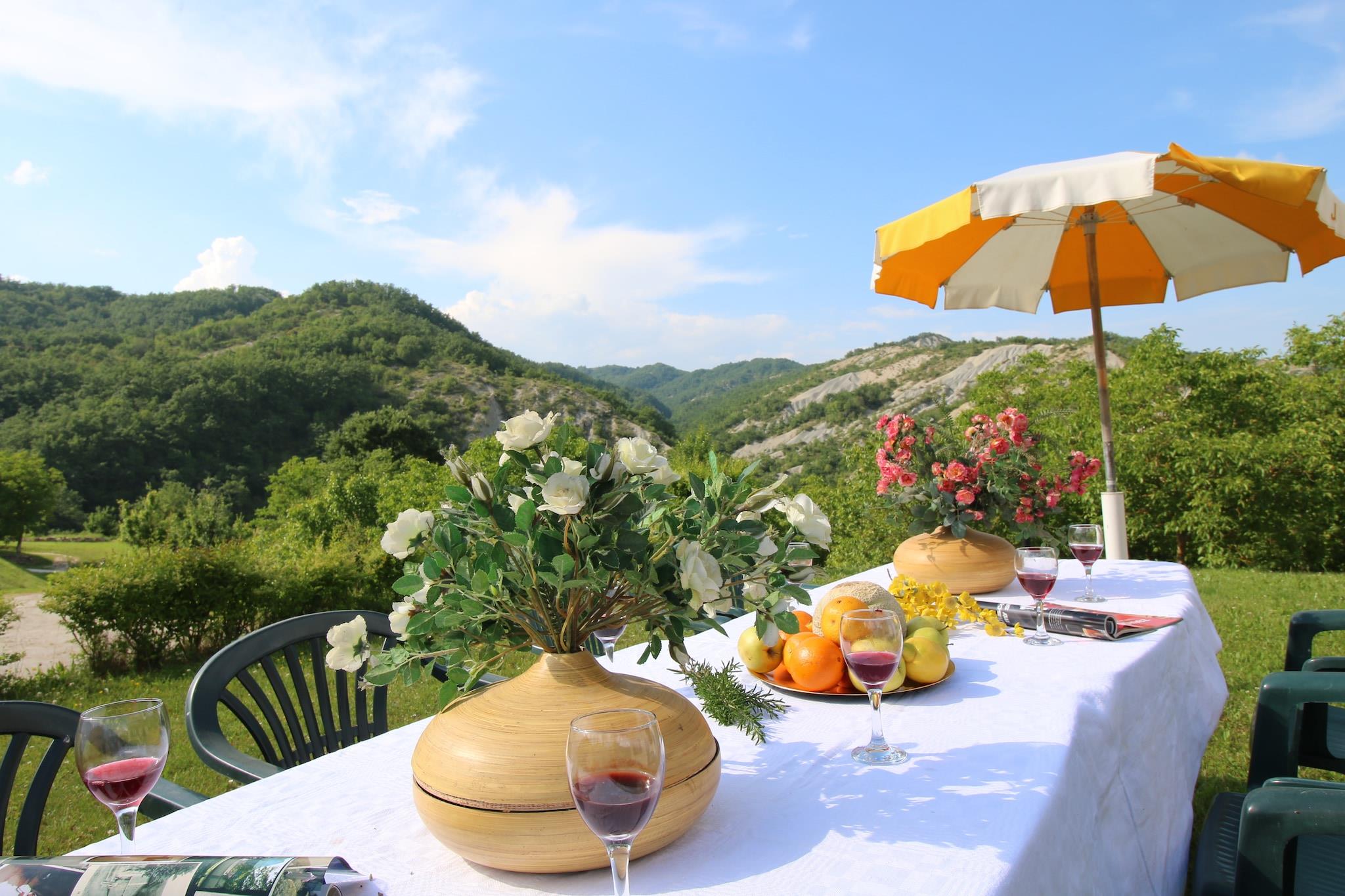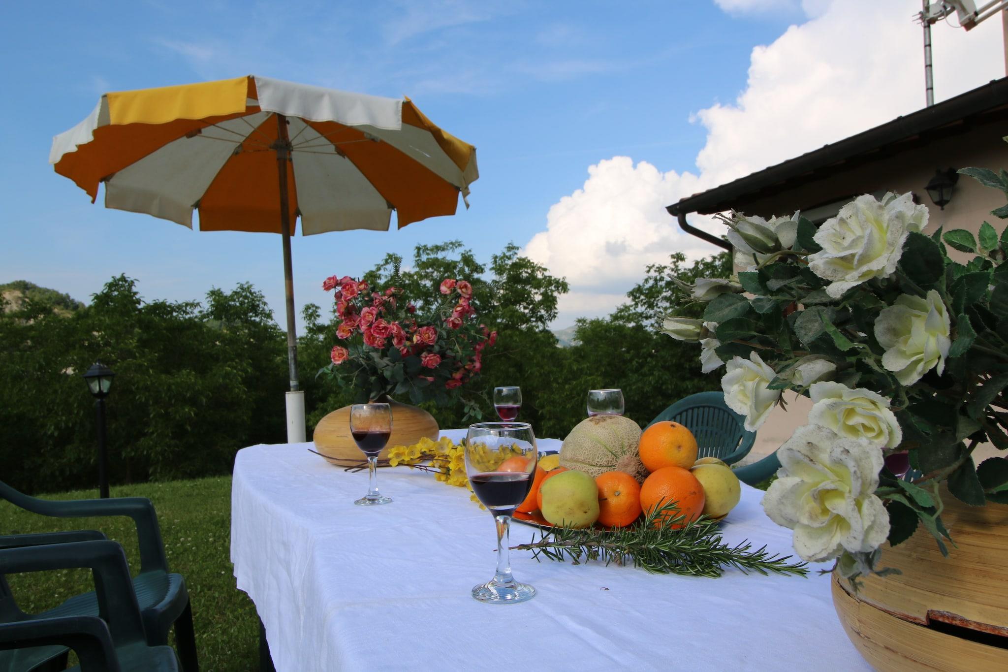 På grænsen mellem Umbrien og Le Marche er en smuk ejendom i Candigliano-dalen, mellem byerne Piobbico, Apecchio, Urbania og Sant'Angelo i Vado. Ejendommen er tilgængelig via en velholdt grusvej på ca. 4 km. På ejendom er en dejlig hovedbygning, hvor vinsmagninger er organiseret om sommeren Der er 3 rustikke, renoverede huse med 11 lejligheder. Lejlighederne er stilfuldt indrettede, og hver lejlighed har en privat terrasse med havemøbler. De rustikke huse ligger et par hundrede meter fra hinanden, og derfor er der masser af privatlivets fred .... Haven Rosa Gialla ligger i det rustikke hus ved siden af den smukke hovedbygning omkring 100 meter fra swimmingpoolen. Lejlighederne er velegnet til gæster, der ønsker at kombinere en aktiv ferie med masser af hvile og afslapning som swimmingpoolen med hydromassage. Fra ejendommen er der mange ture muligt som at besøge byerne Urbino, Gubbio, Assisi og Perugi en. Du kan også mountainbike eller gå på vandreture i bakker og bjerge i området. Ved ankomst vil du modtage en flaske vin og en gratis vinsmagning arrangeres ugentligt.