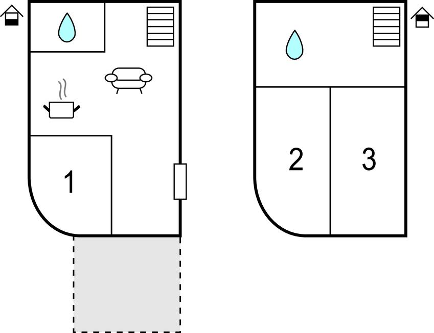 Soveværelse (nr. 1) - 1 Soveplads. (Enkeltseng(e)). 2 Sovepladser. (Dobbeltseng(e)).