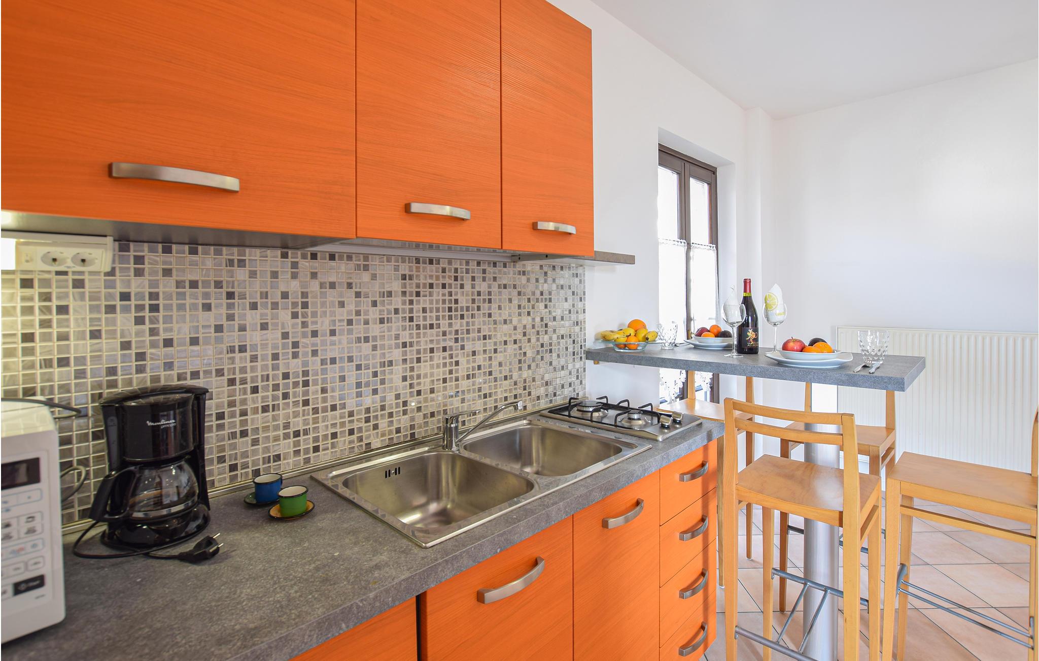 Her finder I en åben stue med et veludstyret køkken og plads nok til at nyde en vidunderlig ferie for to. Sæt jer til rette med morgenmaden på altanen eller nyd et glas vin i aftenlyset her, mens I beundrer landskabet og den særlige gade med de karakteristiske huse.