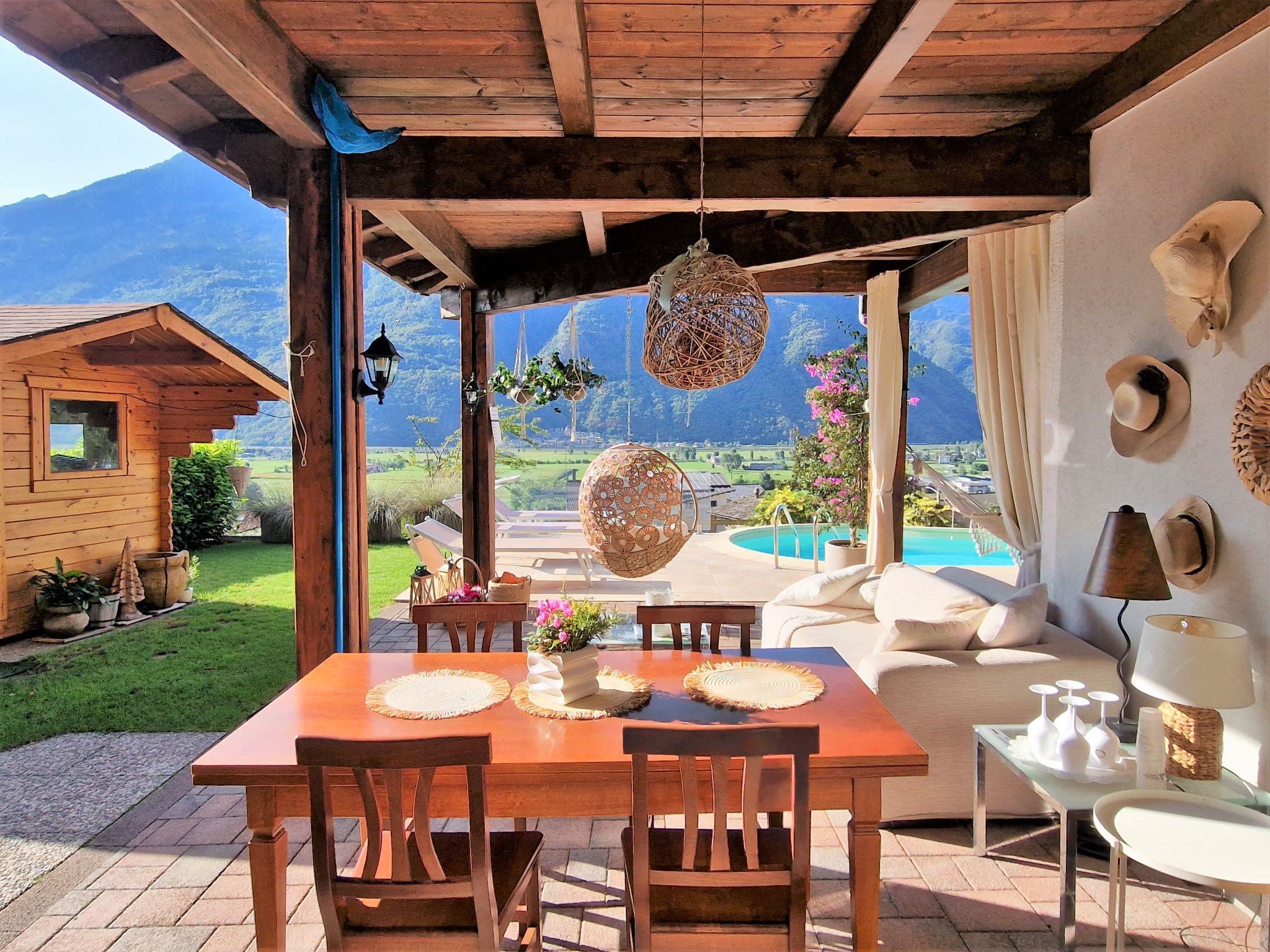 Small, beautiful apartment house "Valley View Pool Apartment", 266 m a.s.l., 3 storeys. 1 km from the centre of Ardenno, in a quiet, sunny position residential area (villas), south facing position. For shared use: large terraced garden (fenced), swimming pool kidney-shaped (depth 135 - 135 cm, seasonal availability: 15.Apr. - 15.Oct.). Terrace, garden furniture, barbecue, pool maintenance by the owner/gardener. In the house: storage room for bicycles, sun terrace, storage room for skis. Parking at the house. Supermarket 1 km, restaurant 100 m, bar, thermal baths "Terme di Bormio" 82 km. Nearby attractions: Morbegno 13 km, Ponte Tibetano Ponte nel Cielo 16 km, Val di Mello 18 km, Fly Emotion (Zipline) 20 km, Sondrio 20 km, Train Bernina Express: Tirano-St Moritz 45 km. Well-known ski regions can easily be reached: Madesimo 66 km, Bormio 82 km. Well-known lakes can easily be reached: Lago di Como 25 km. Hiking paths: Bagni di Masino, Lago San Martino, Lago di Scermendone, Monte Belinghera, Sentiero Valtellina. Please note: car recommended. Residence with electric gates. The owner lives on the same property. The owner has a dog.
